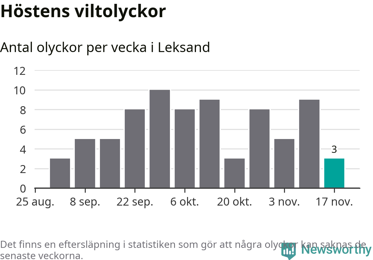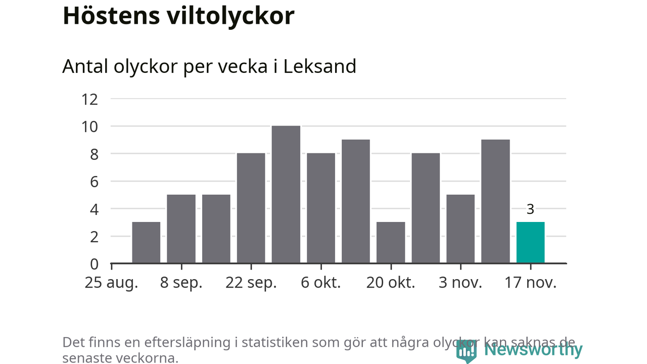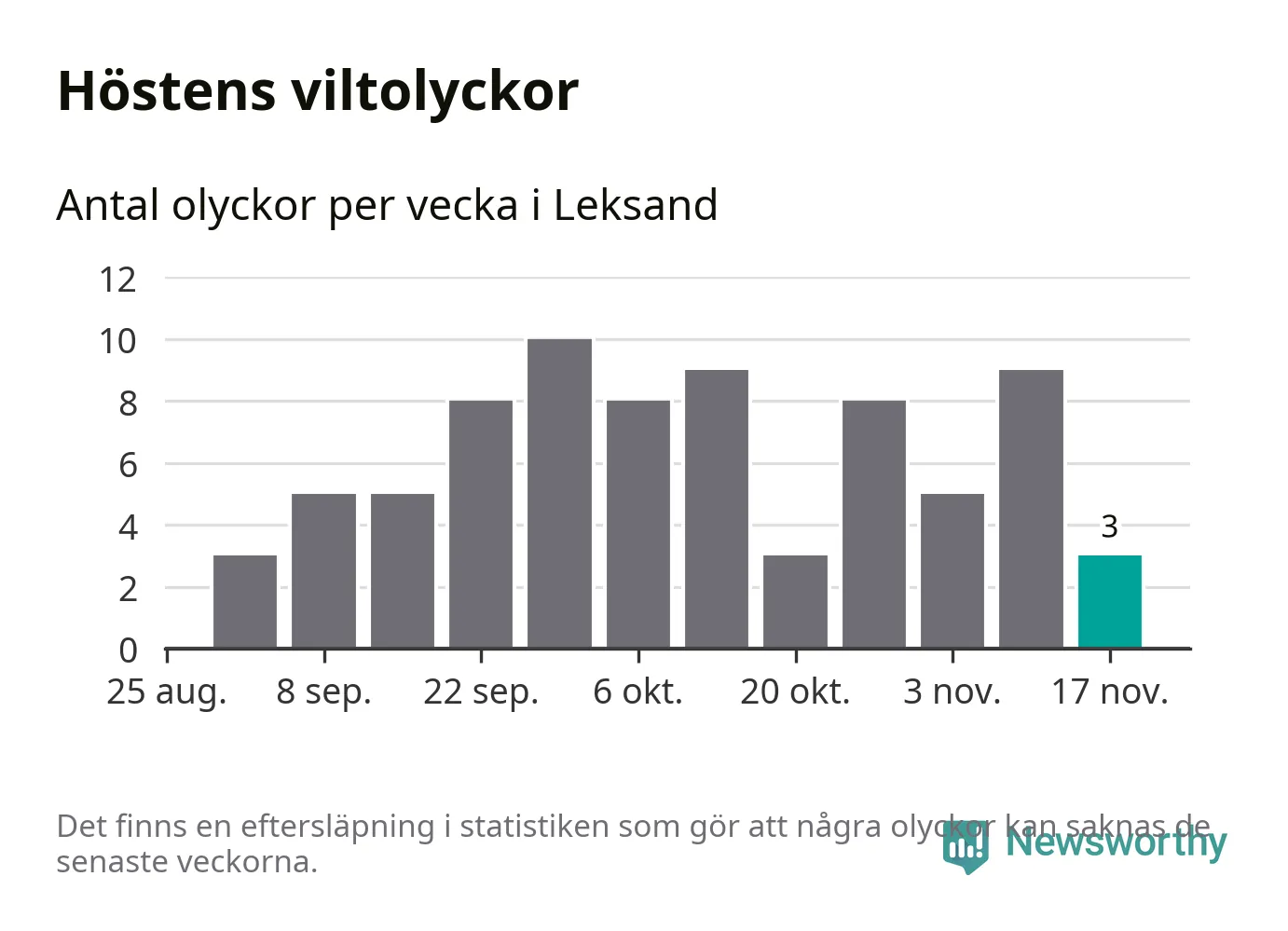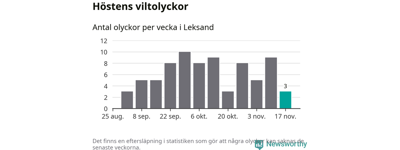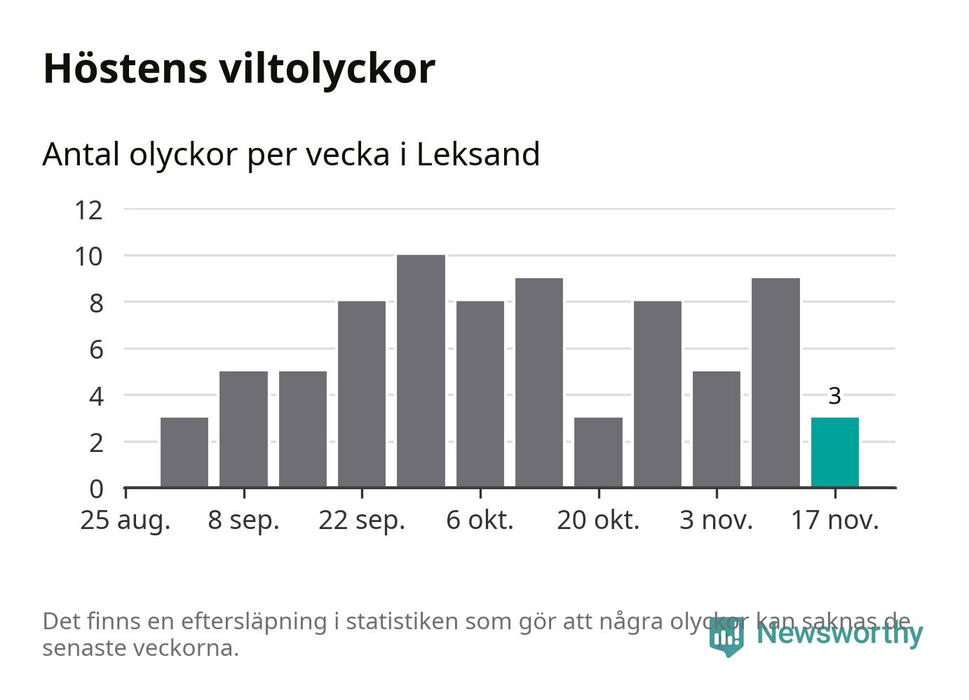 Hittills har tre viltolyckor rapporterats in i Leksands kommun från vecka 47. Se listan här.
