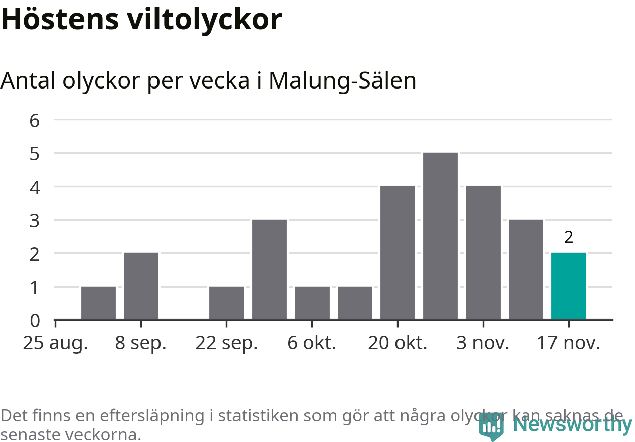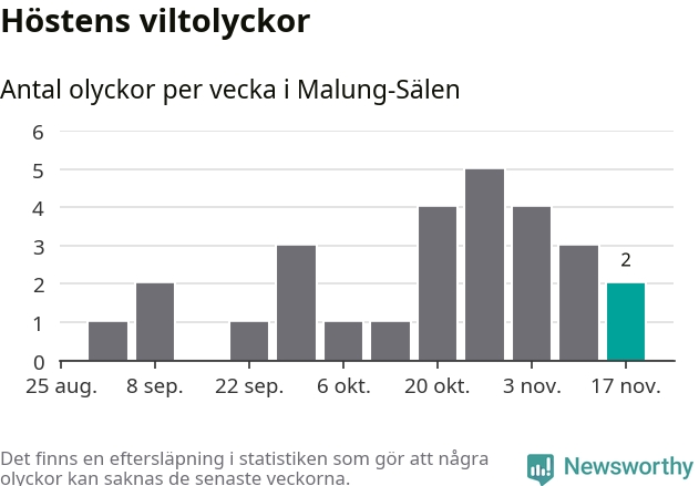 Hittills har två viltolyckor rapporterats in i Malung-Sälens kommun från vecka 47. Se listan här.