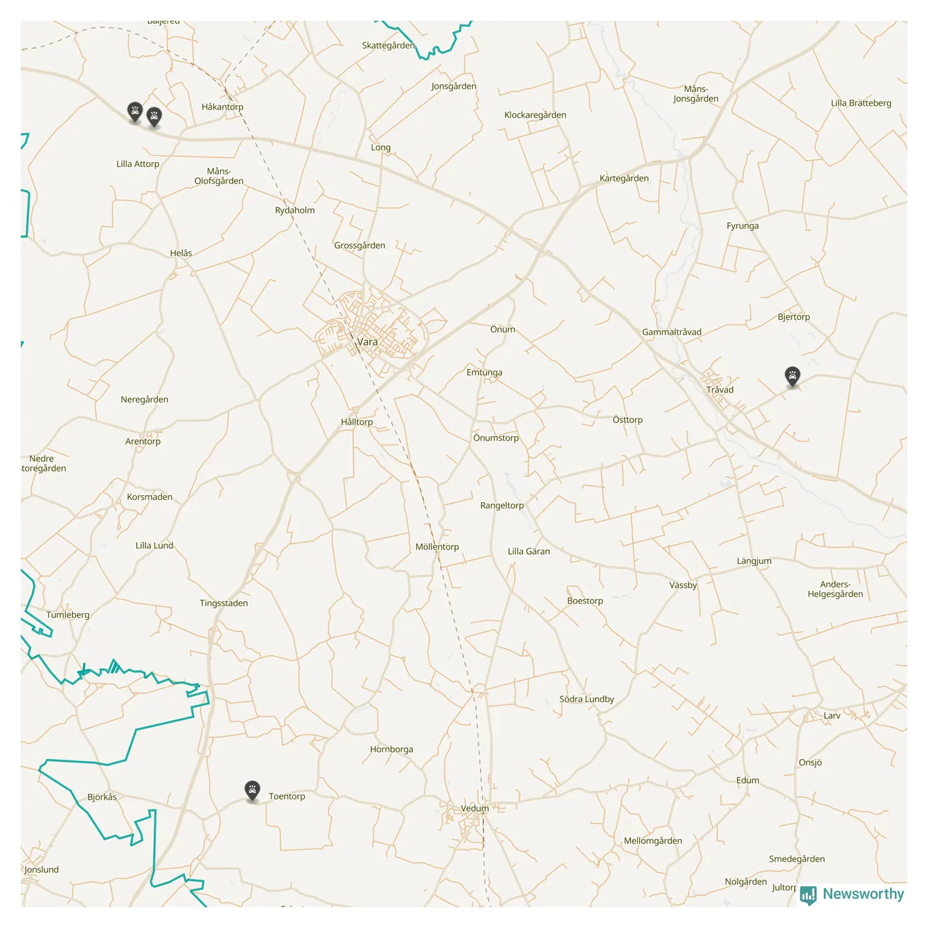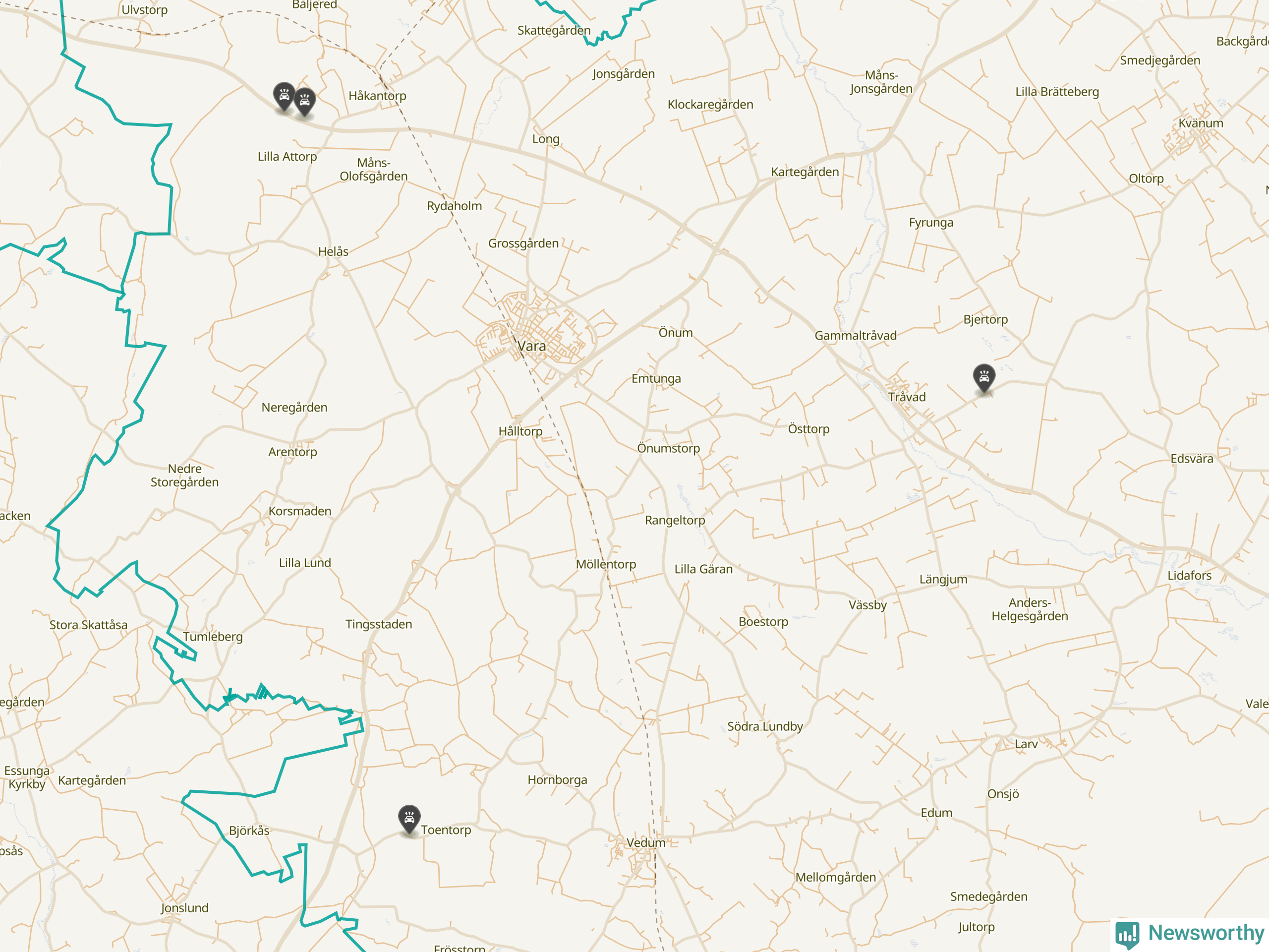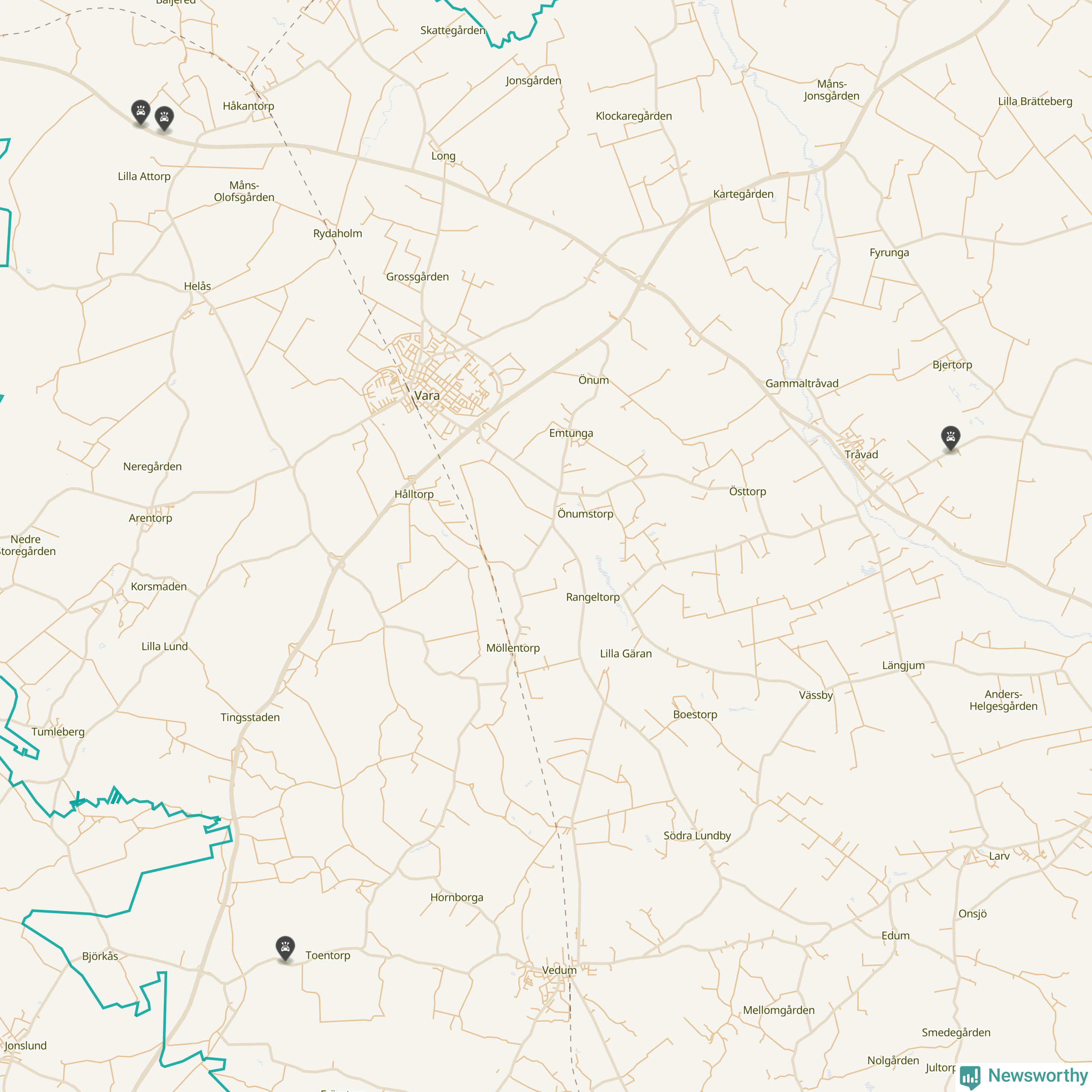 Här inträffade viltolyckorna i Vara förra veckan
