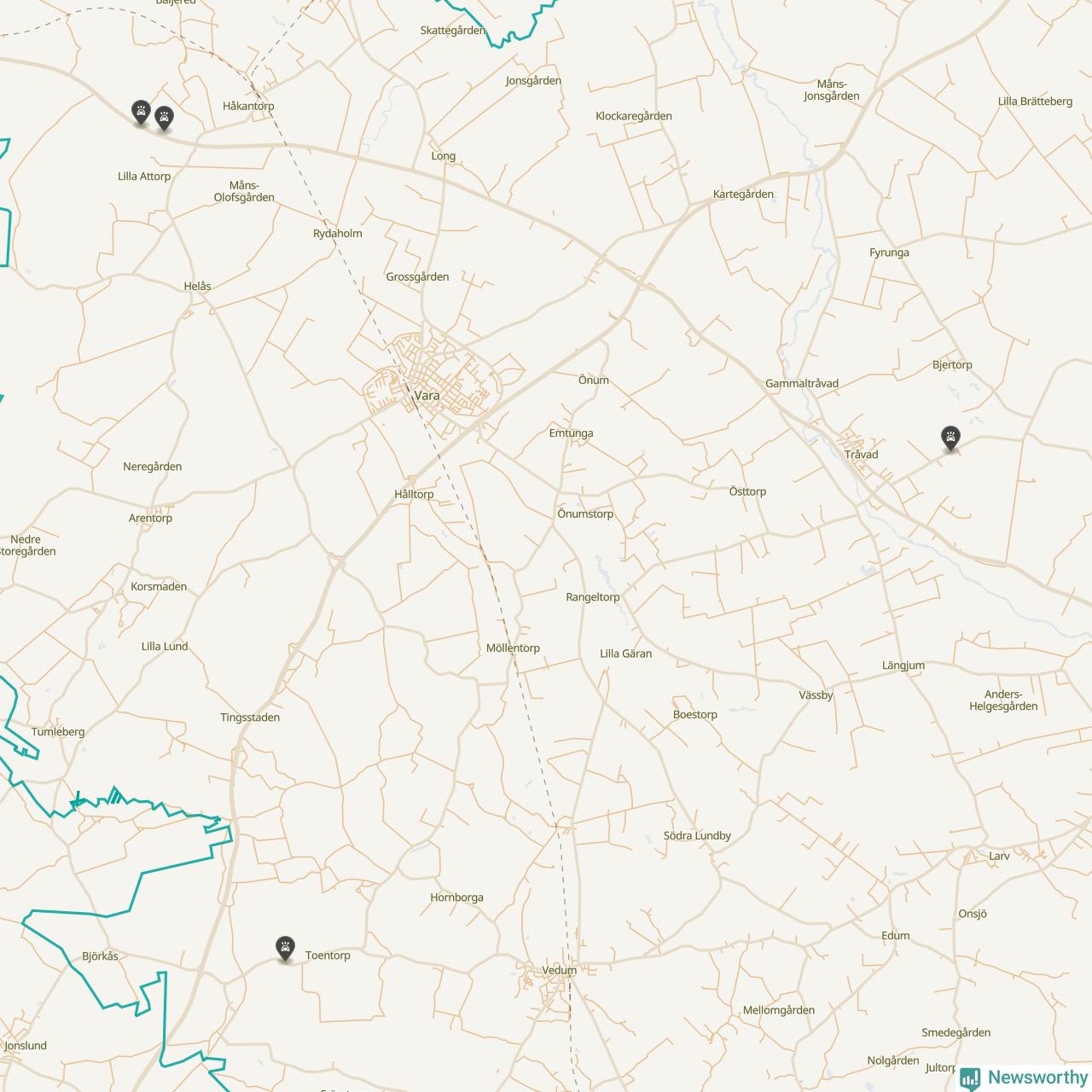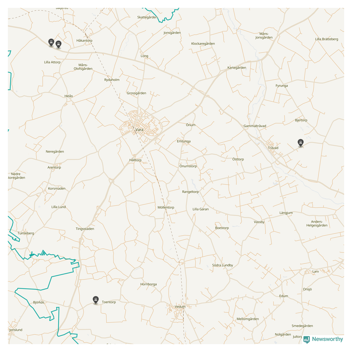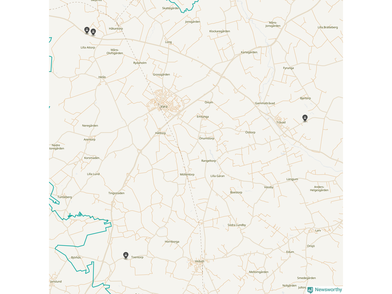 Här inträffade viltolyckorna i Vara förra veckan