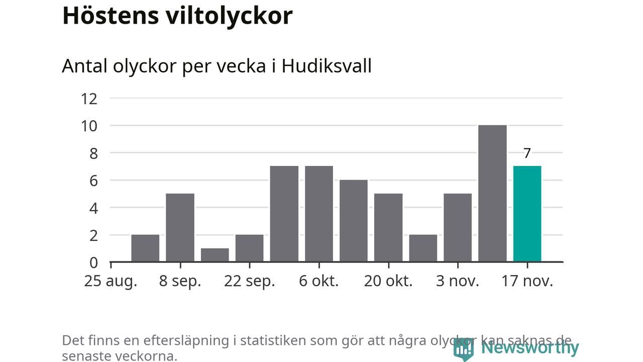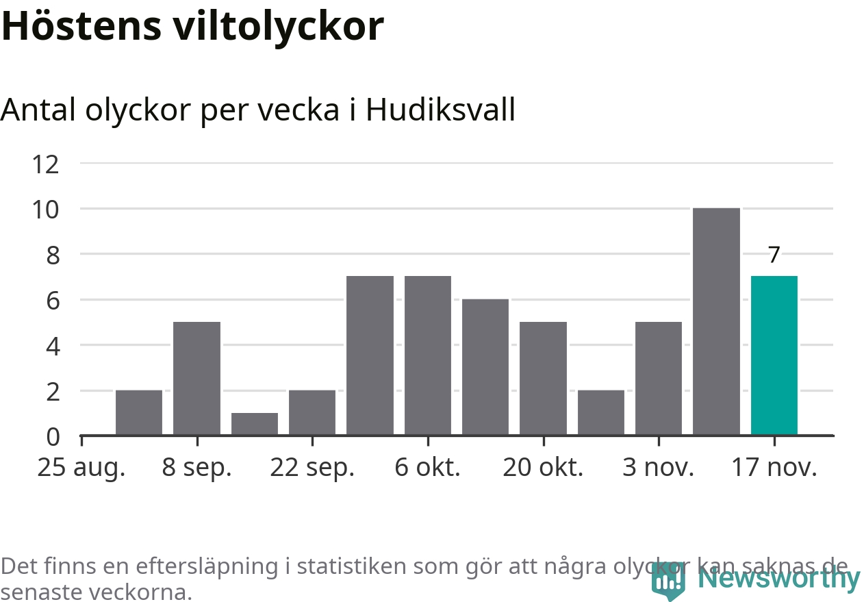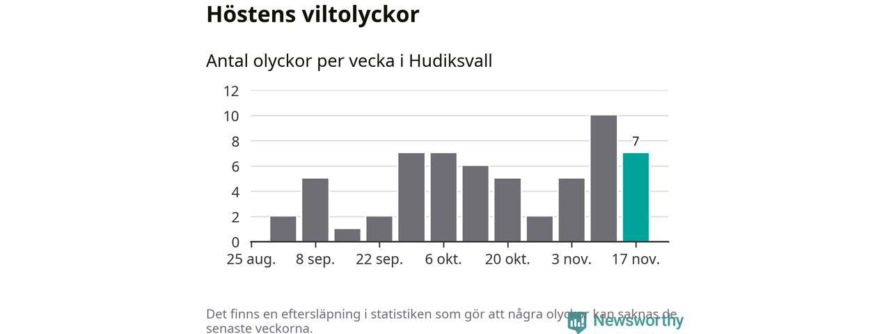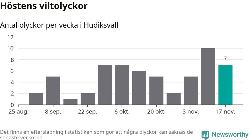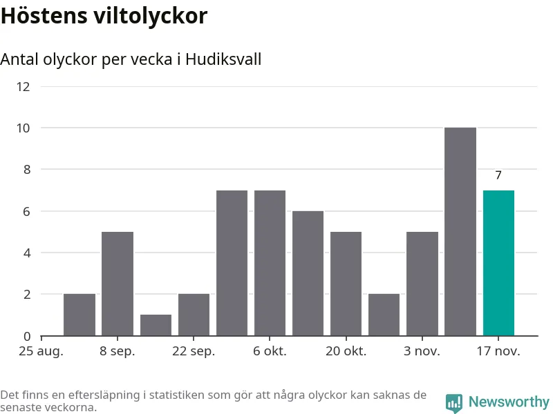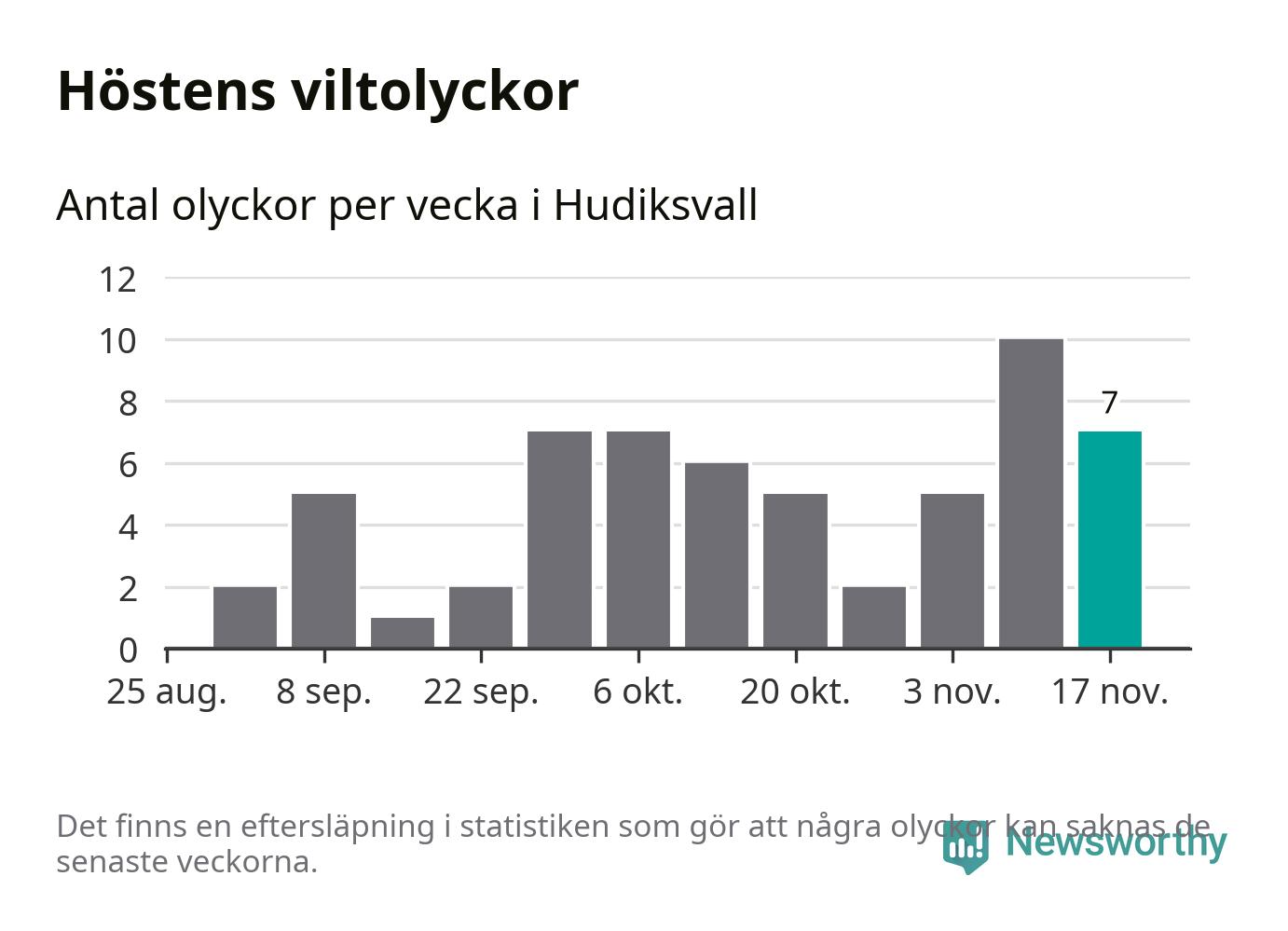 Hittills har sju viltolyckor rapporterats in i Hudiksvalls kommun från vecka 47. Se listan här.