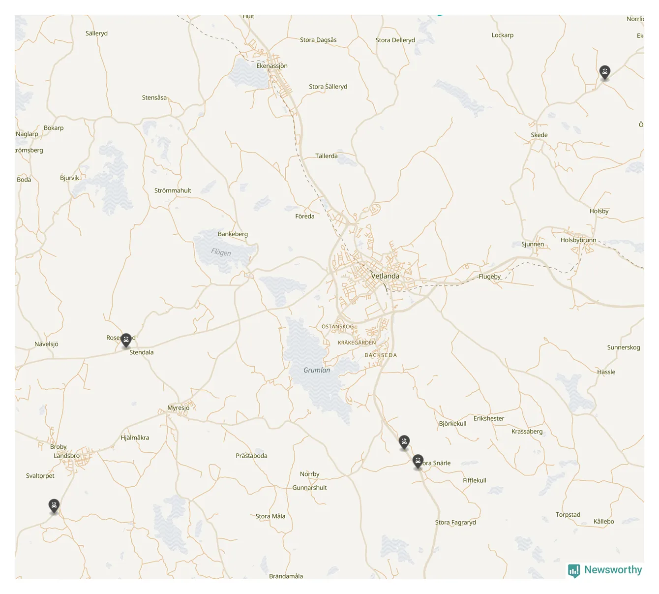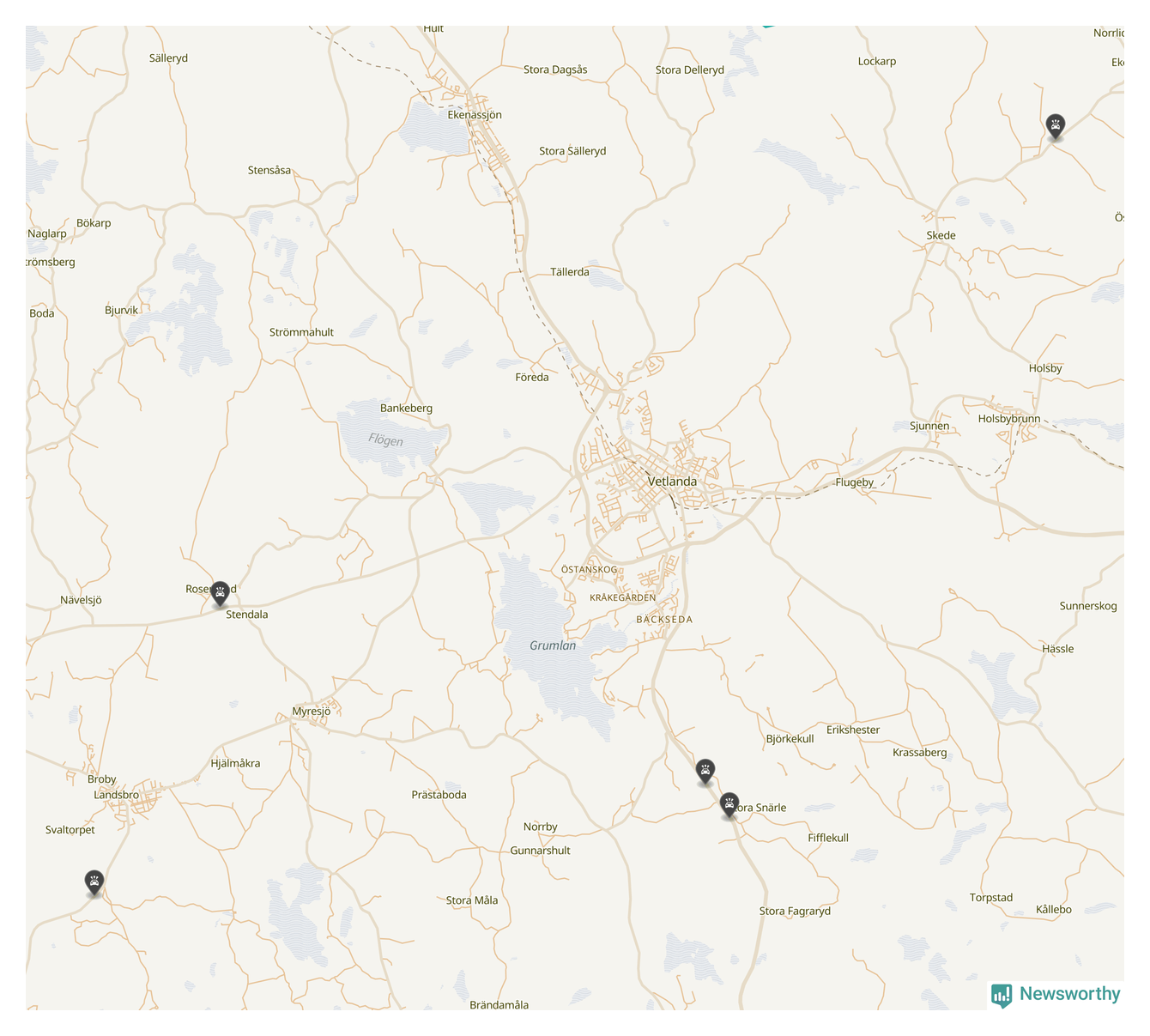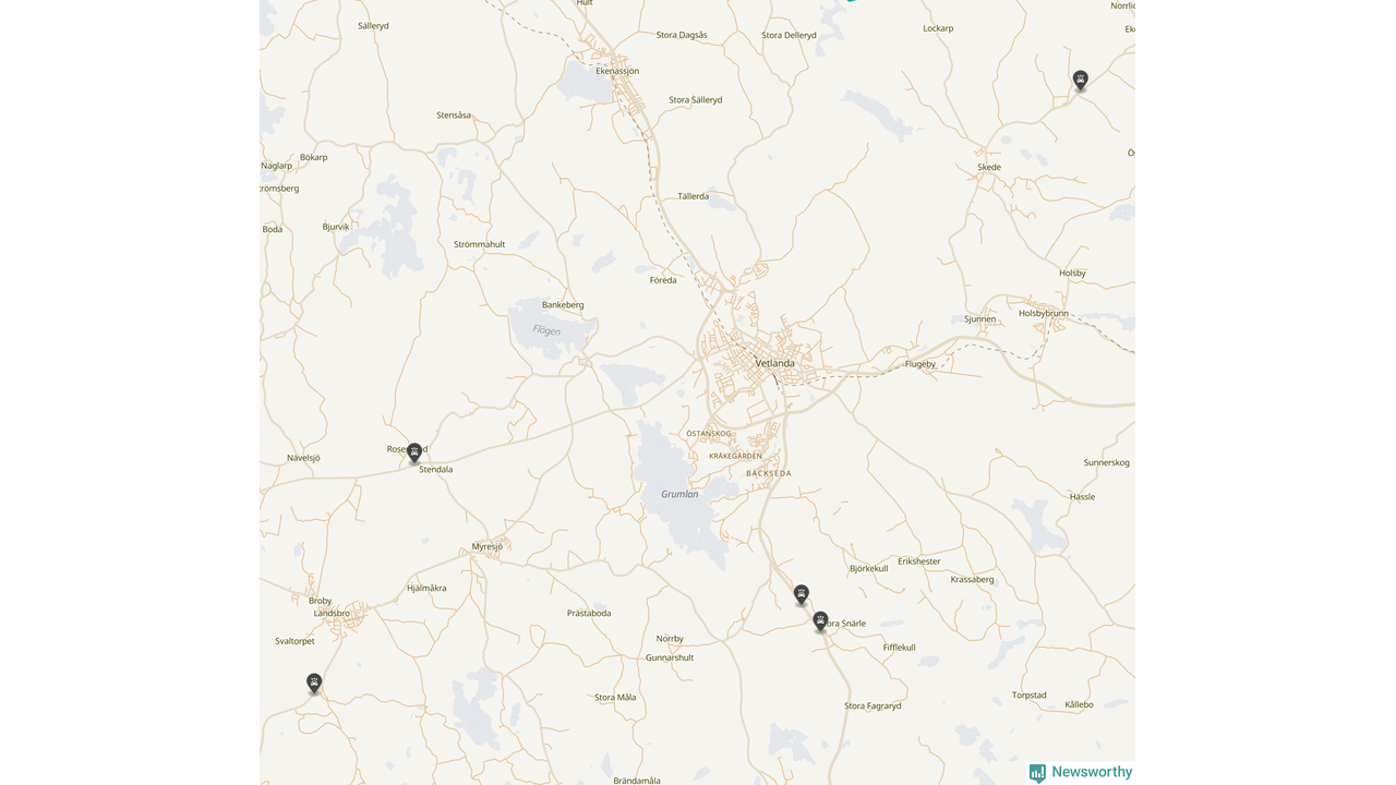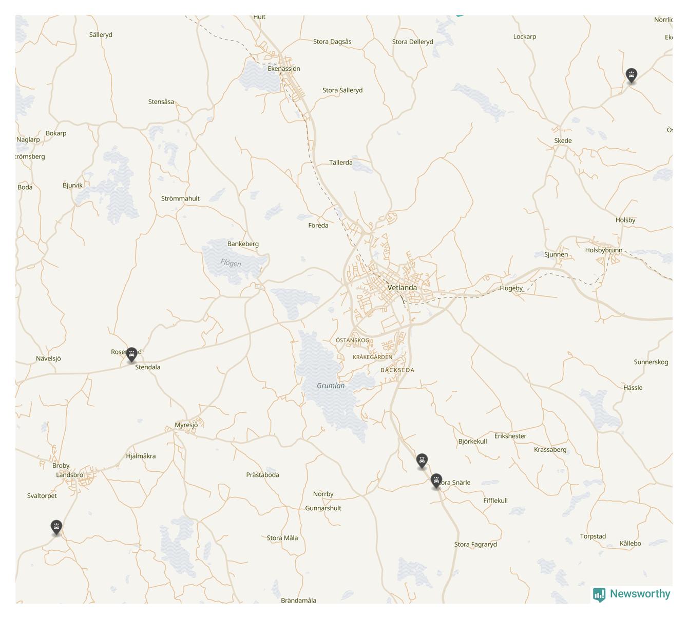 Här inträffade viltolyckorna i Vetlanda förra veckan