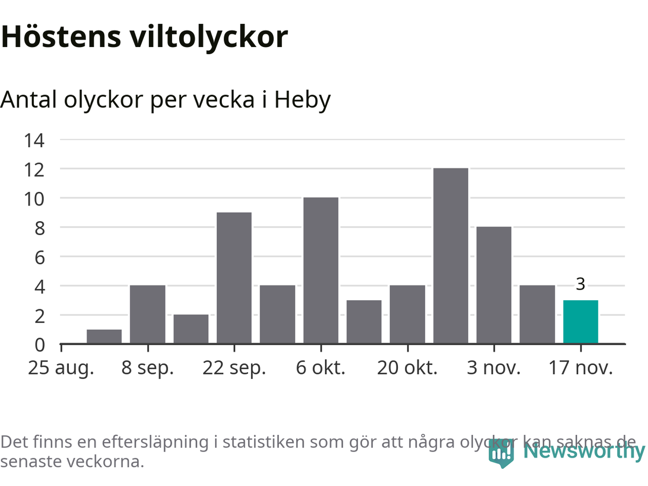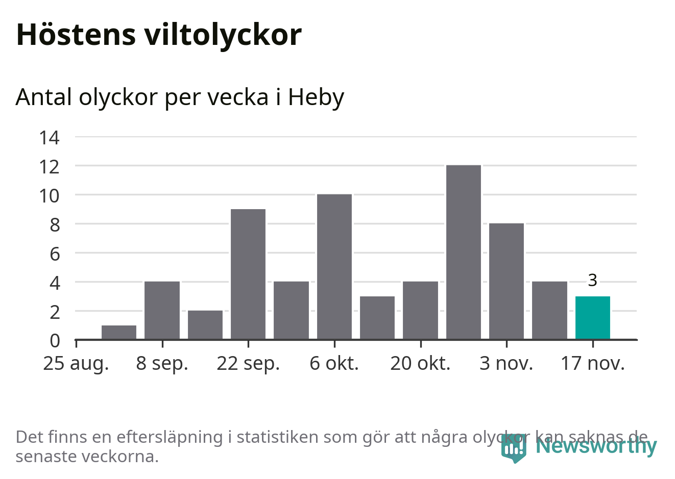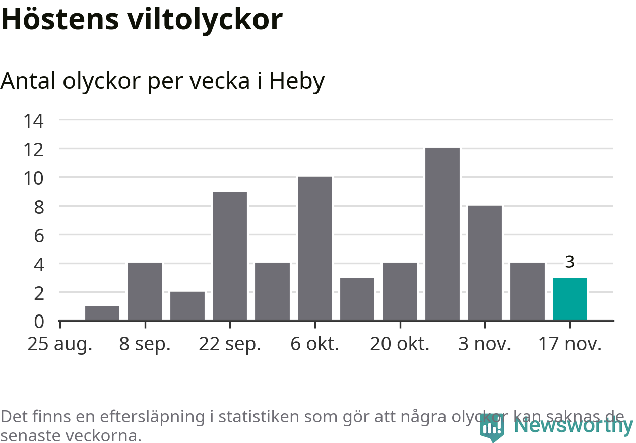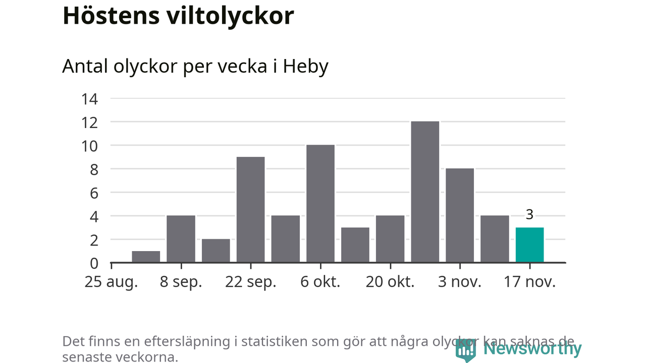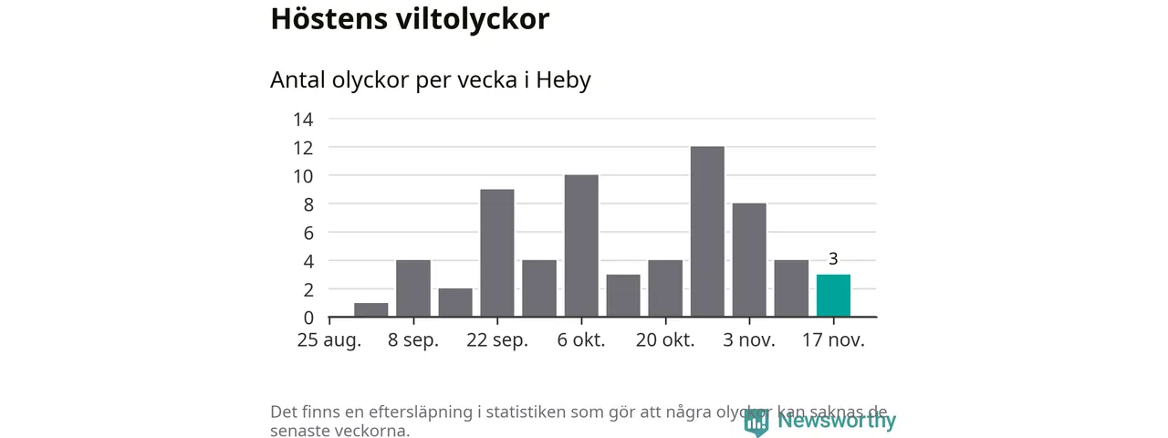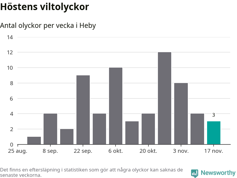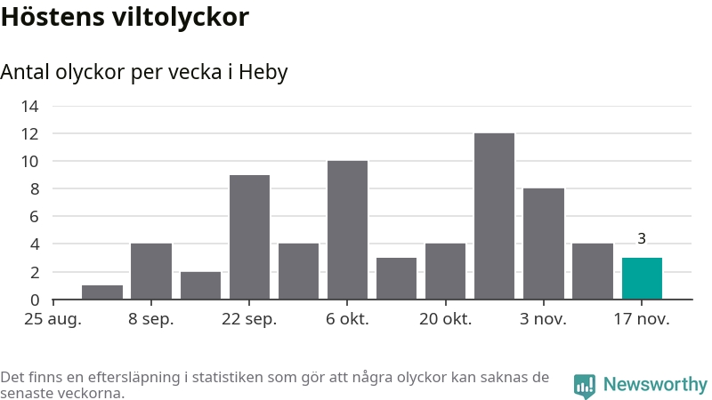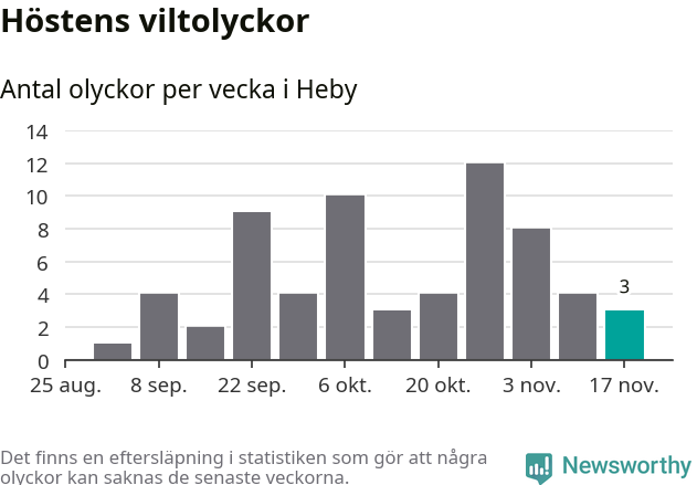 Hittills har tre viltolyckor rapporterats in i Heby kommun från vecka 47. Se listan här.