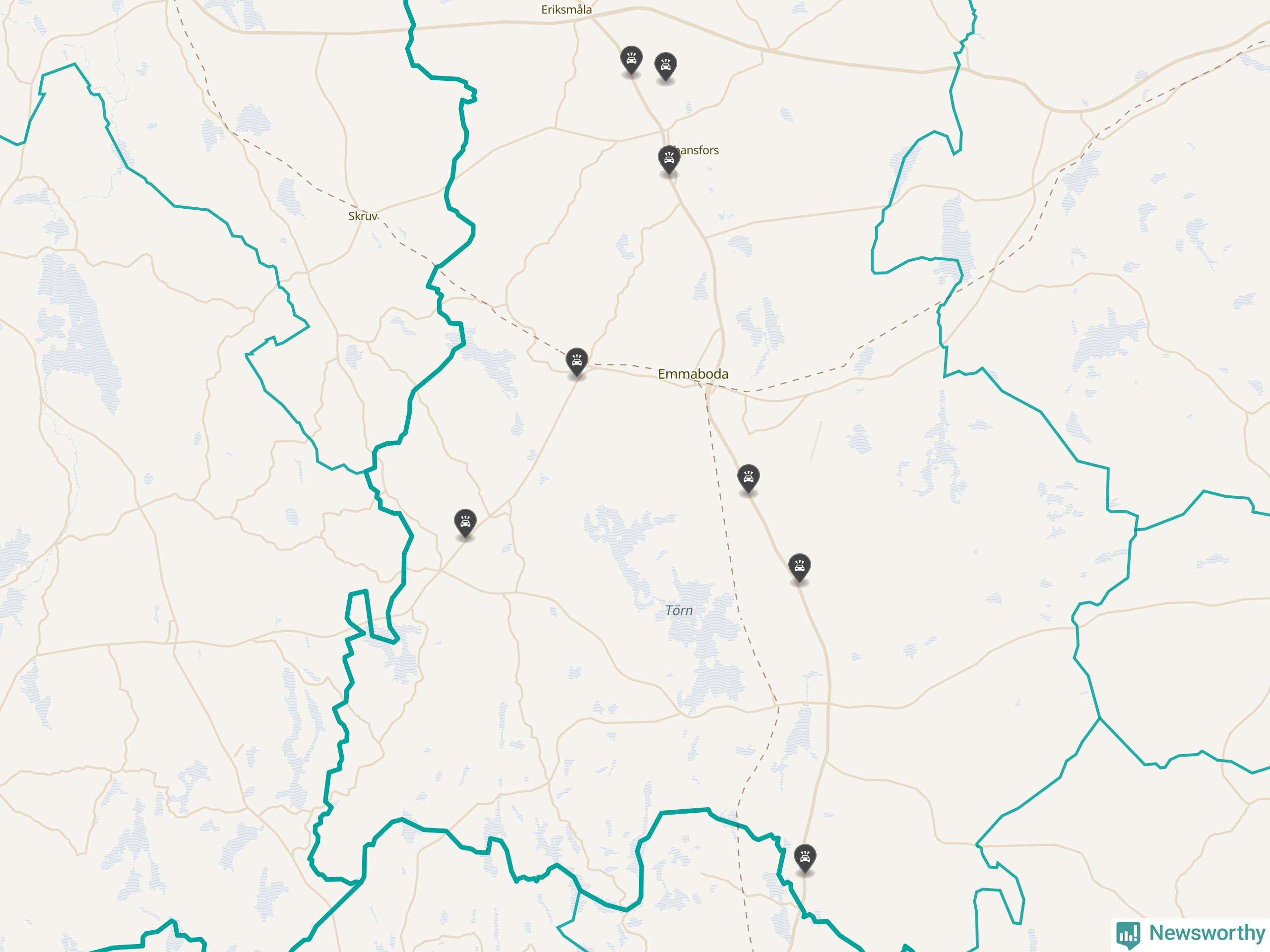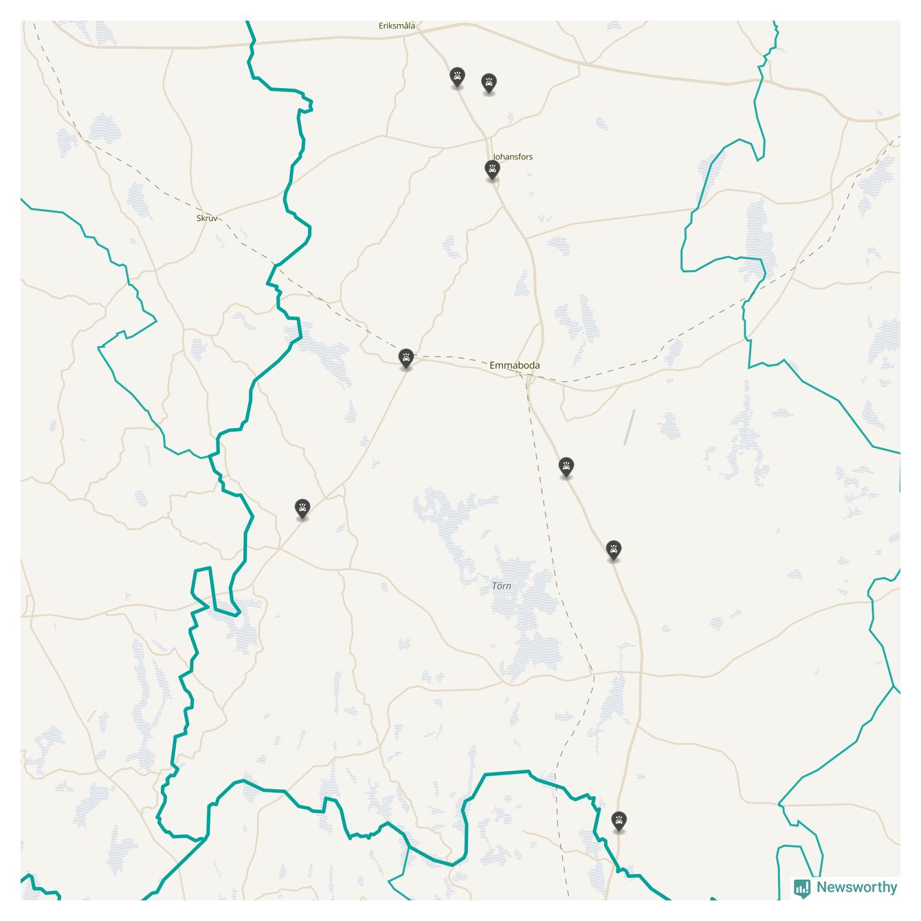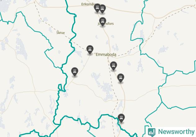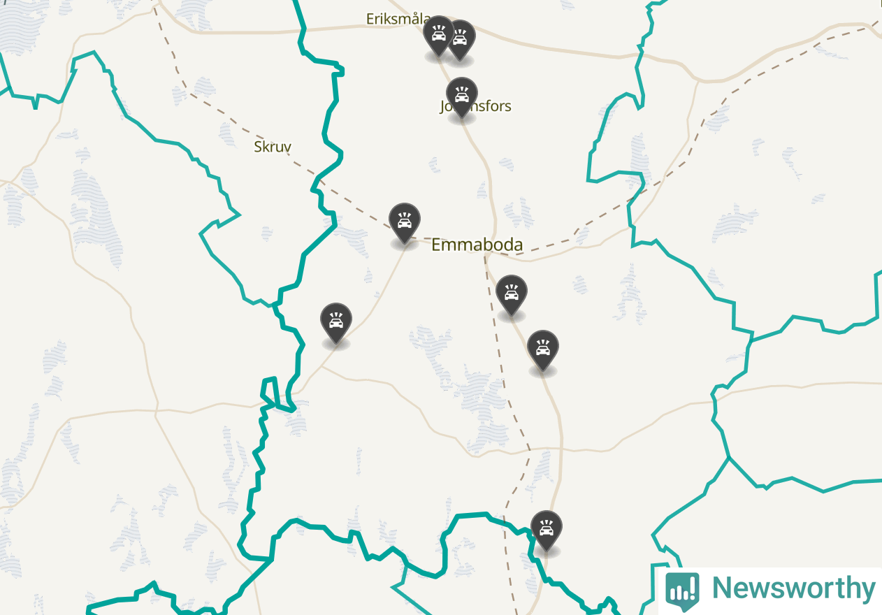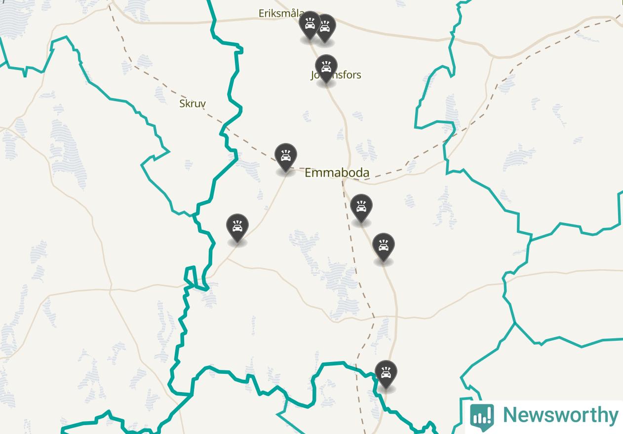 Karta över viltolyckor i Emmaboda kommun