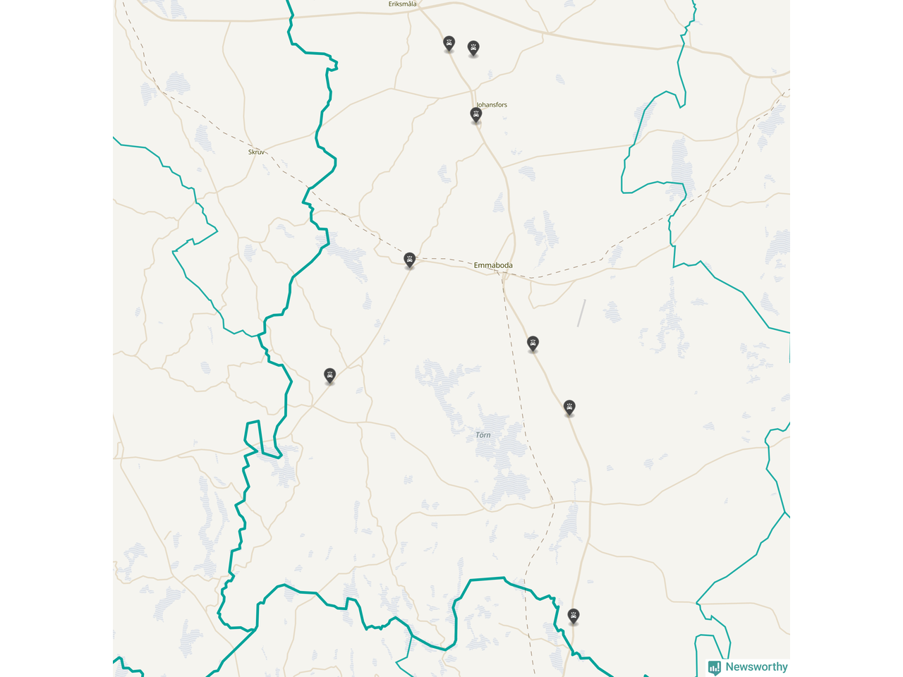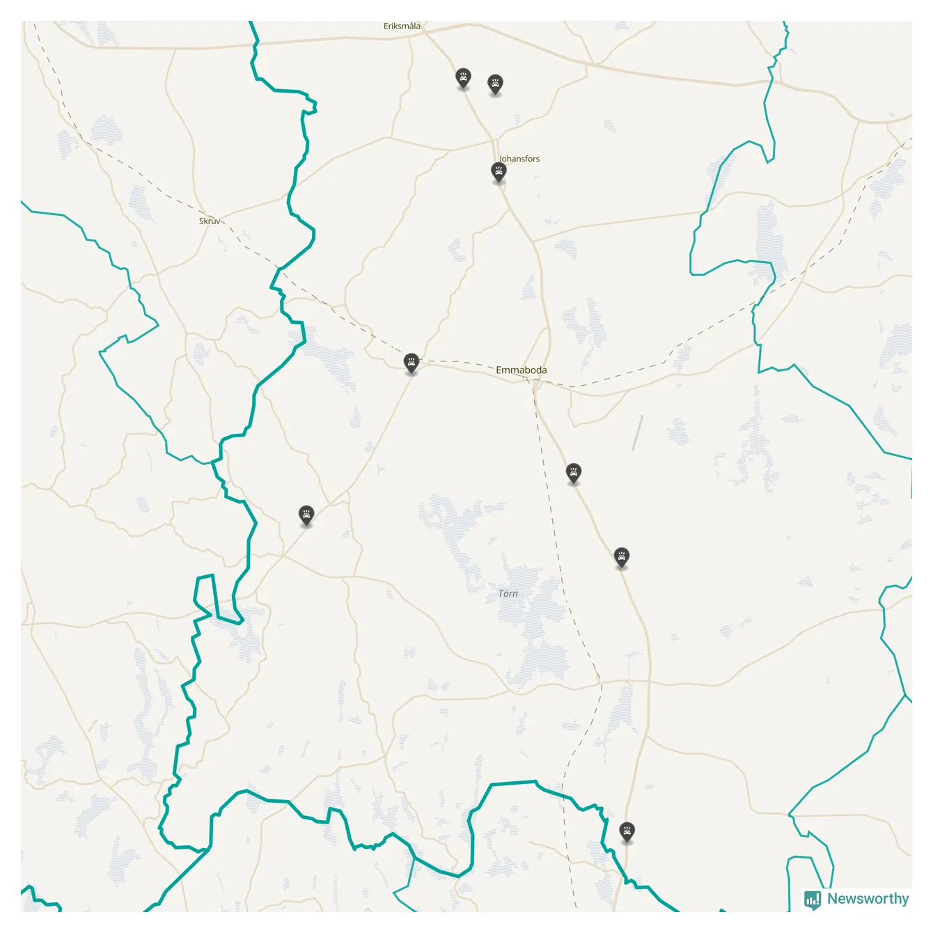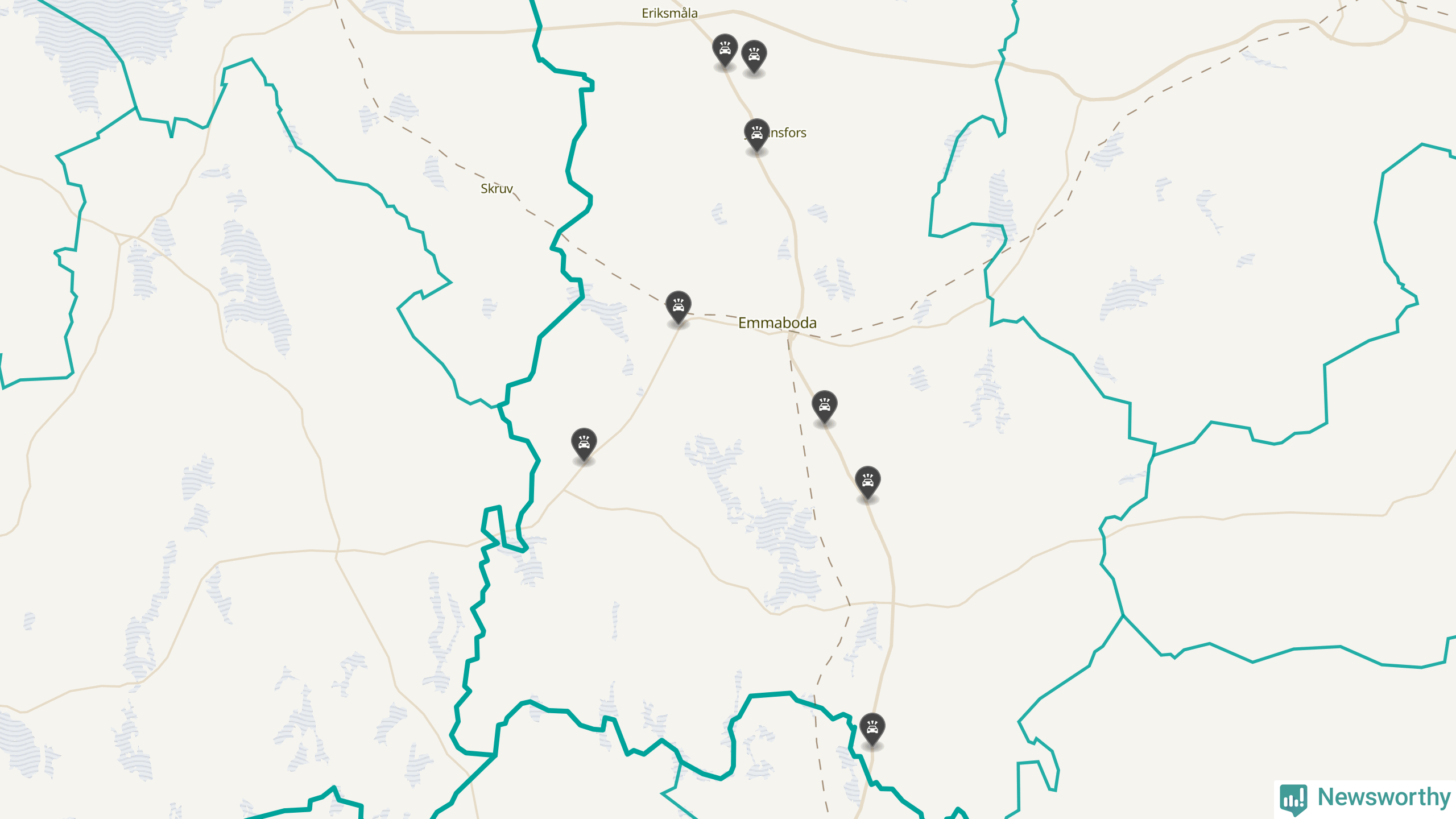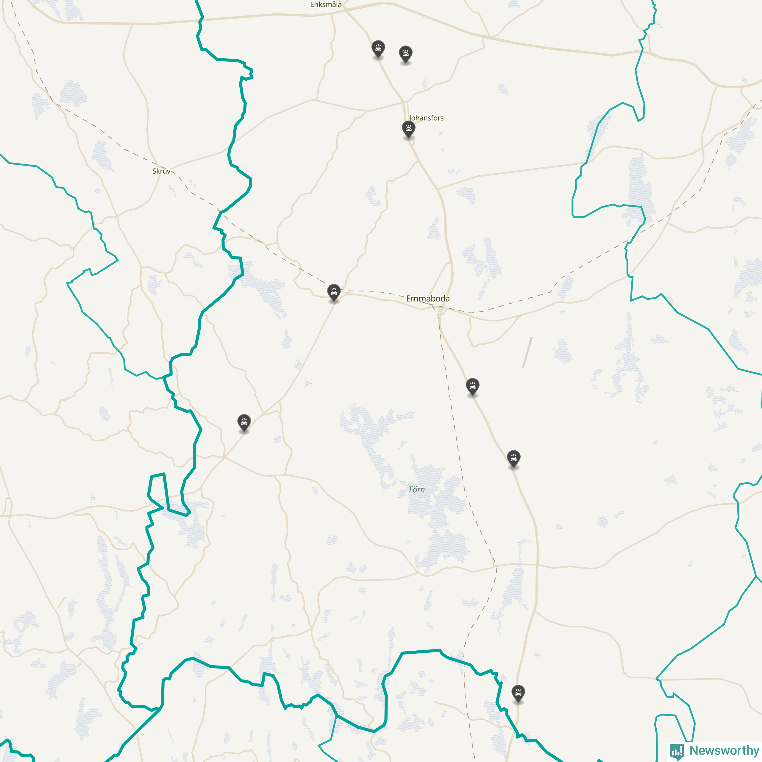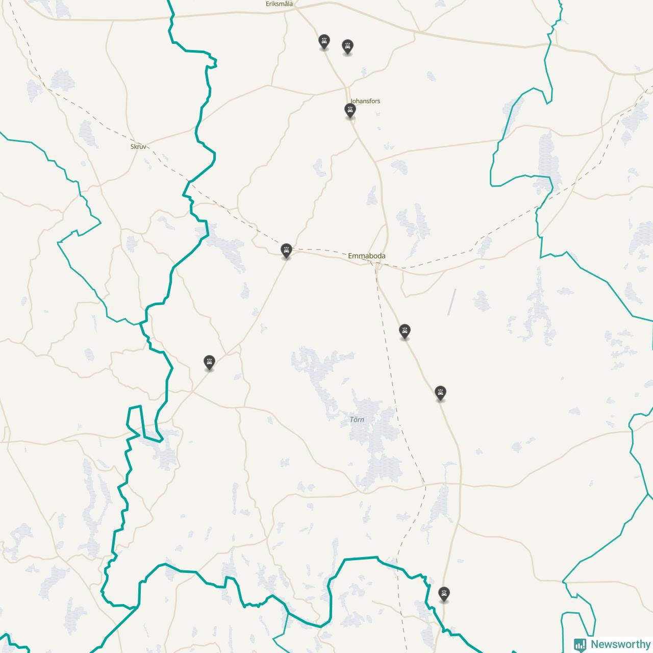 Karta över viltolyckor i Emmaboda kommun