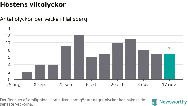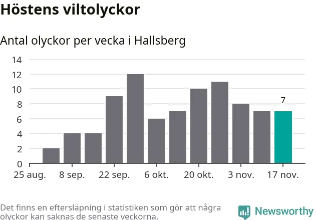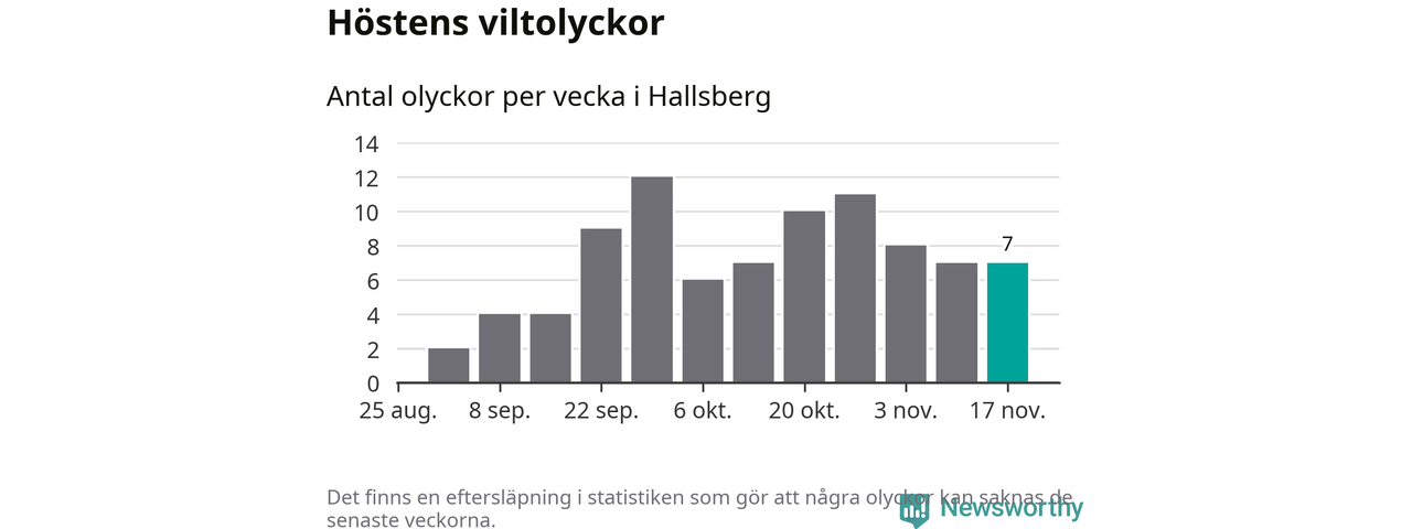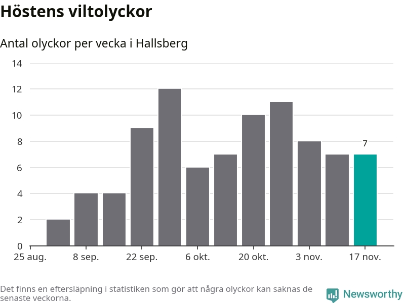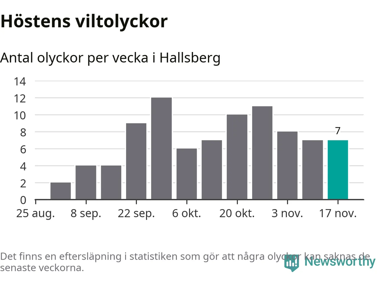 Hittills har sju viltolyckor rapporterats in i Hallsbergs kommun från vecka 47. Se listan här.