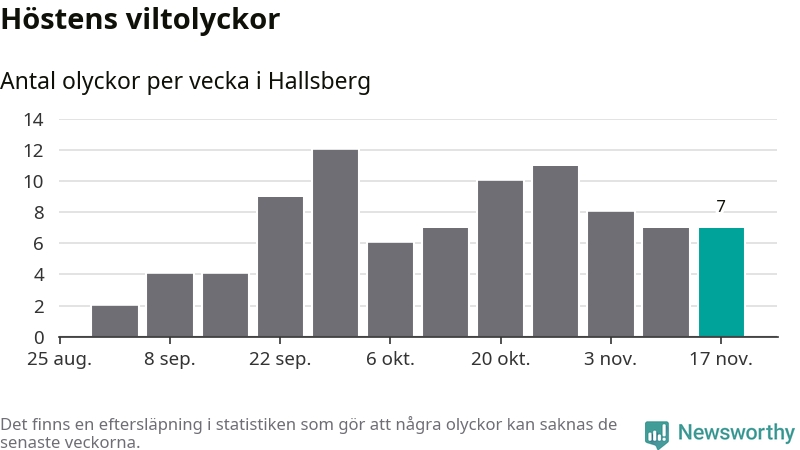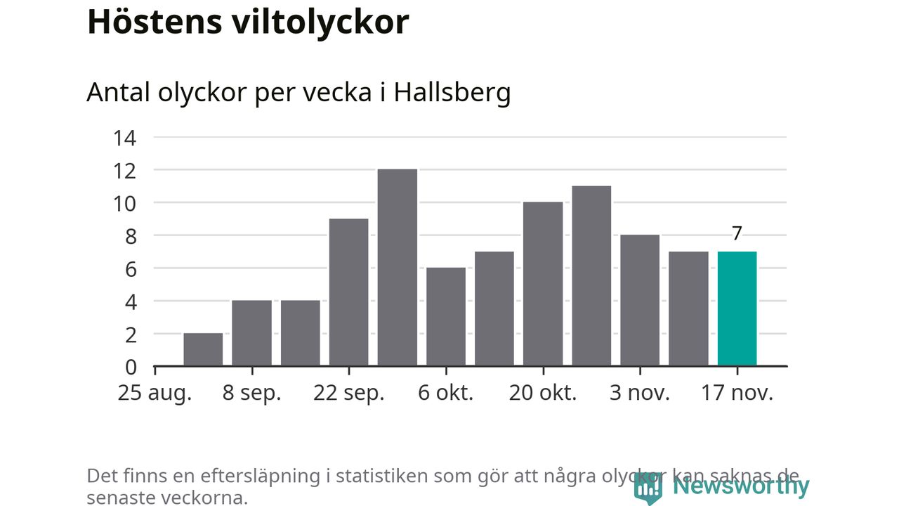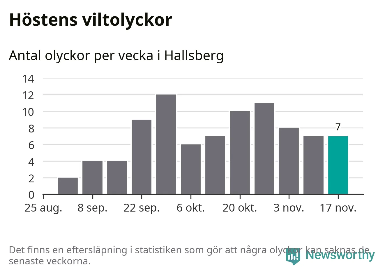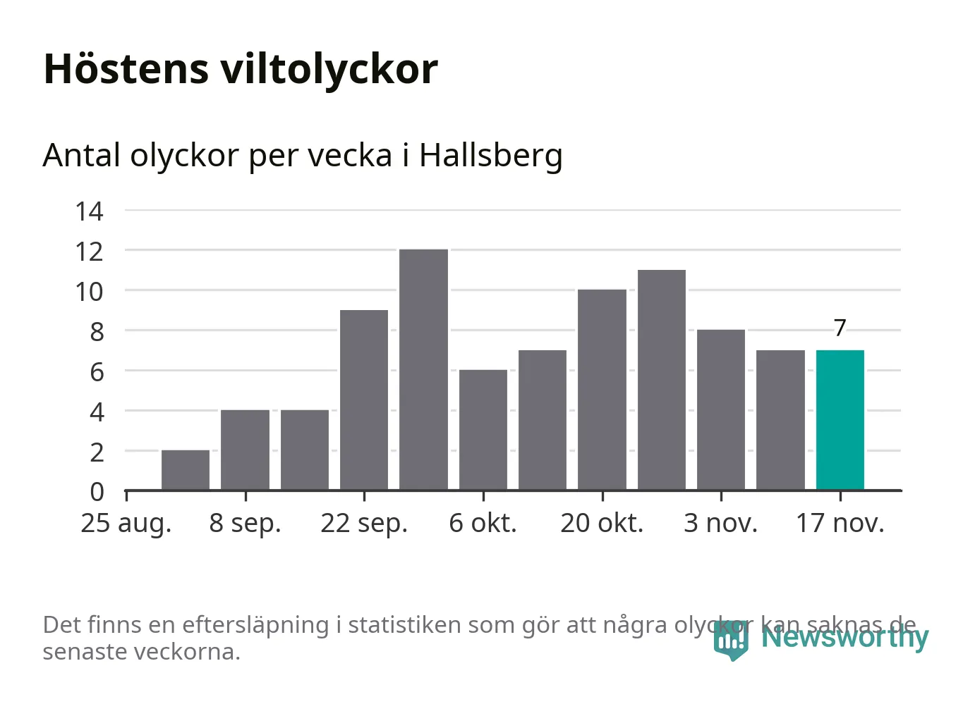 Hittills har sju viltolyckor rapporterats in i Hallsbergs kommun från vecka 47. Se listan här.