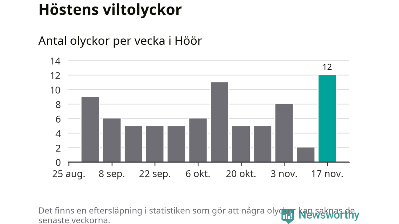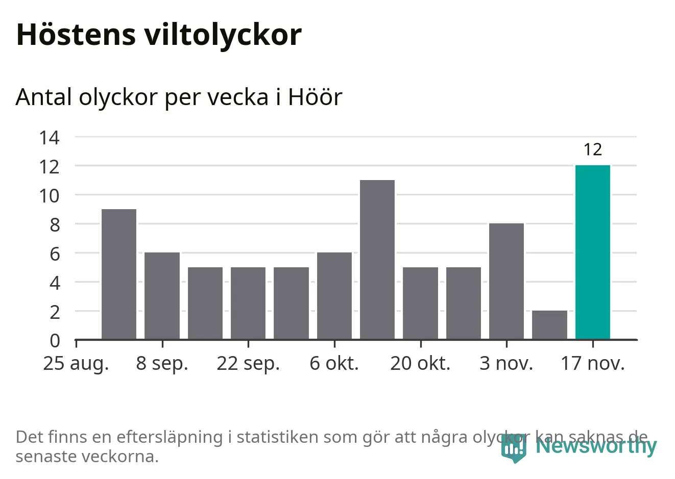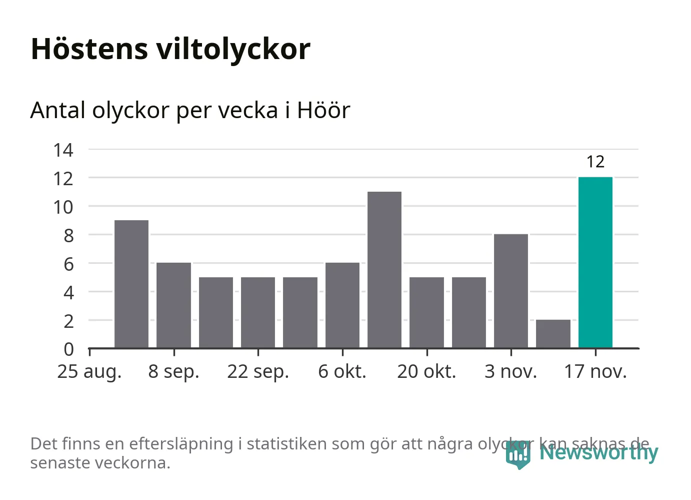 Hittills har tolv viltolyckor rapporterats in i Höörs kommun från vecka 47. Det är en av de högsta siffrorna för en enskild vecka på över tio år.