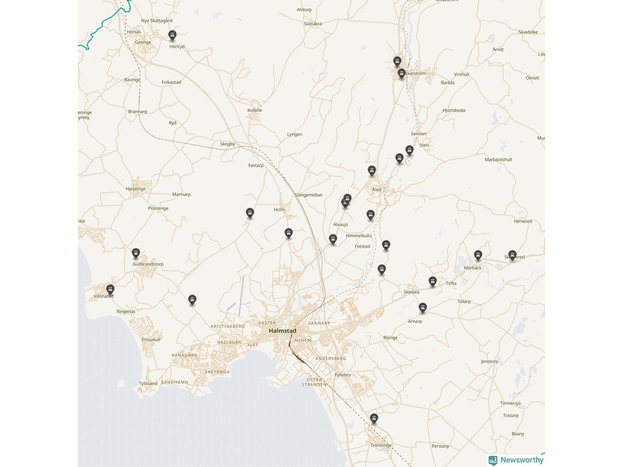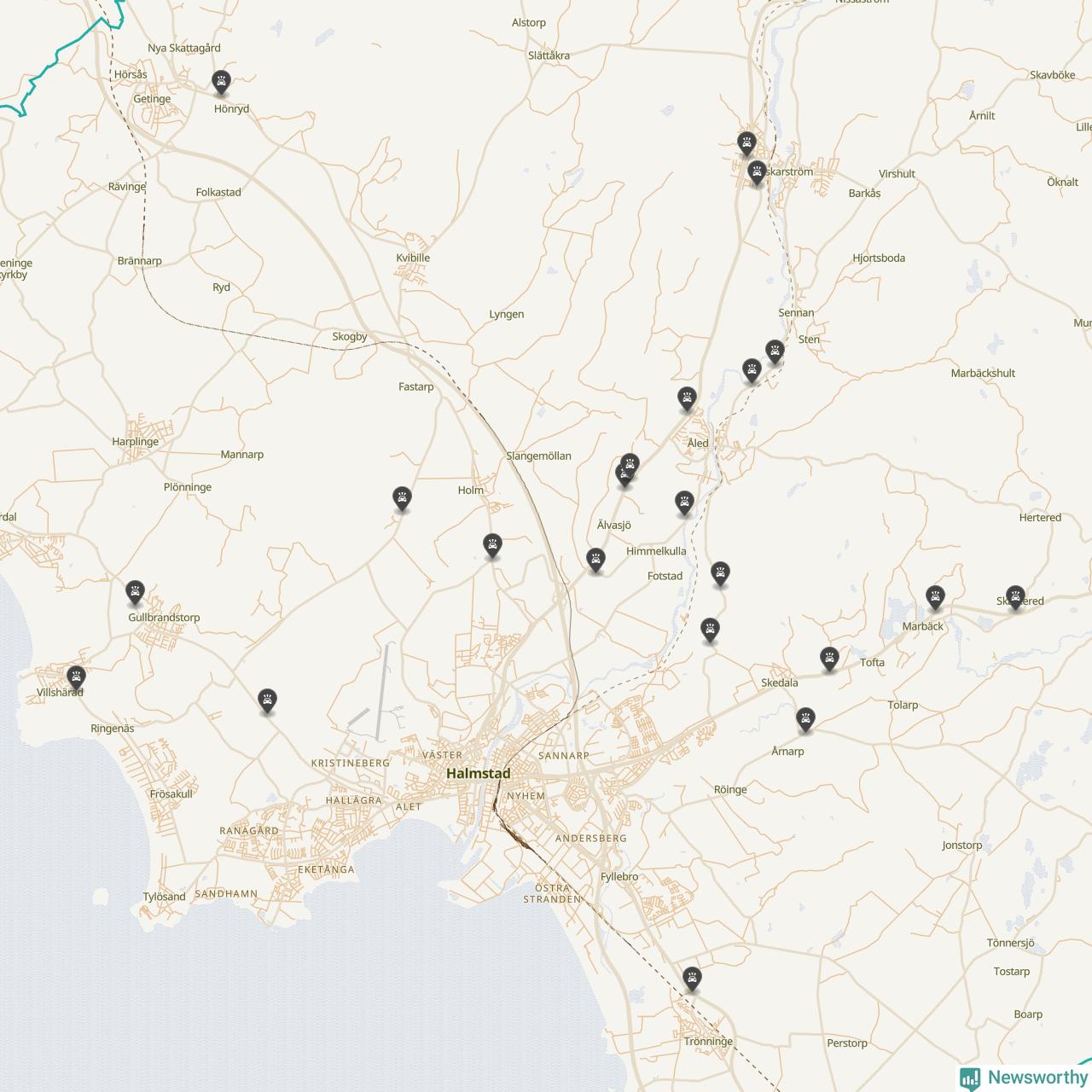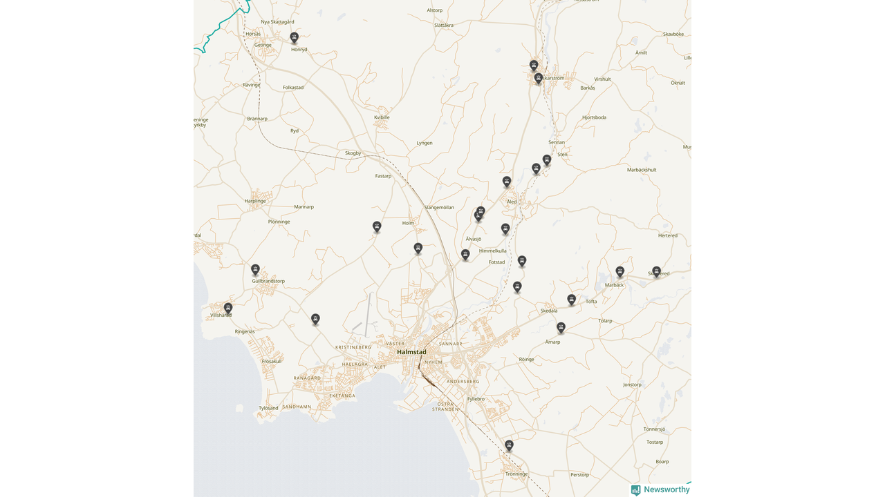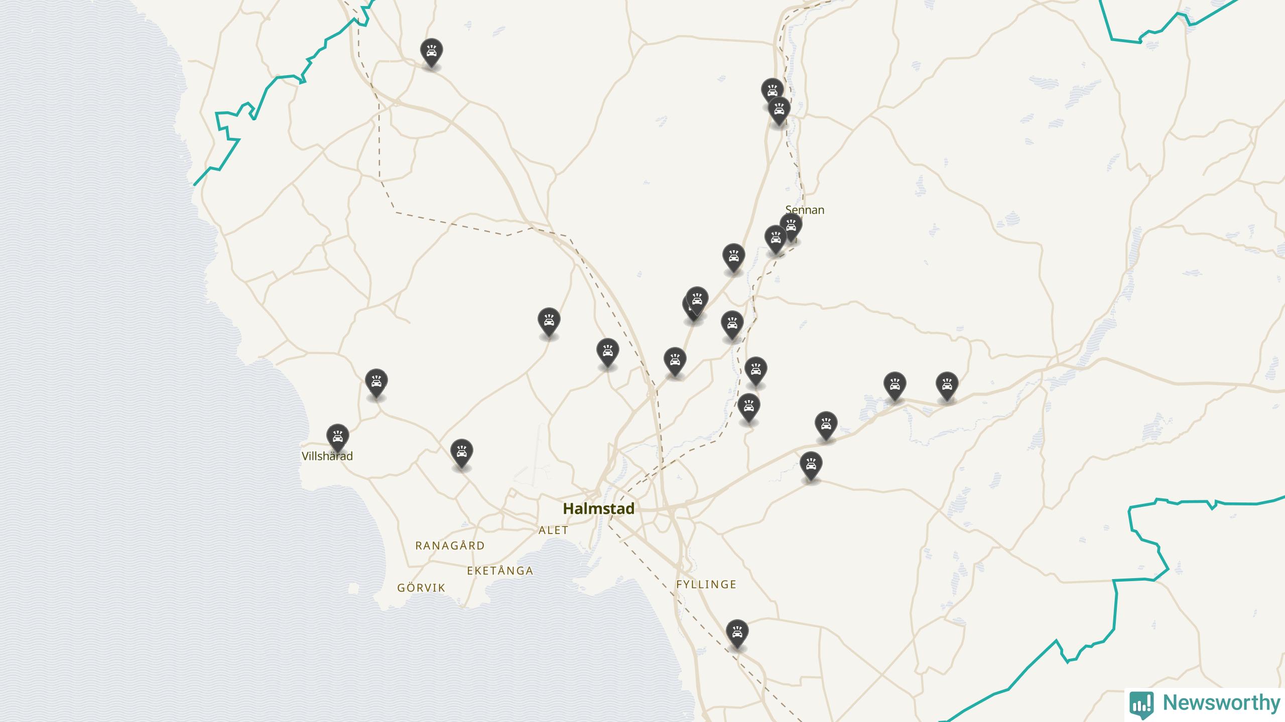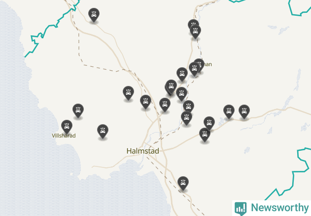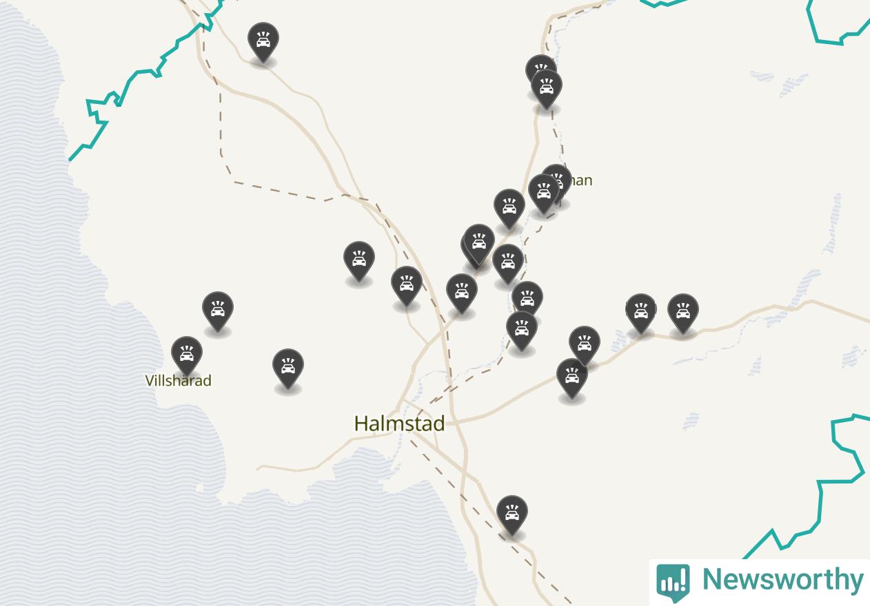 Karta över viltolyckor i Halmstads kommun