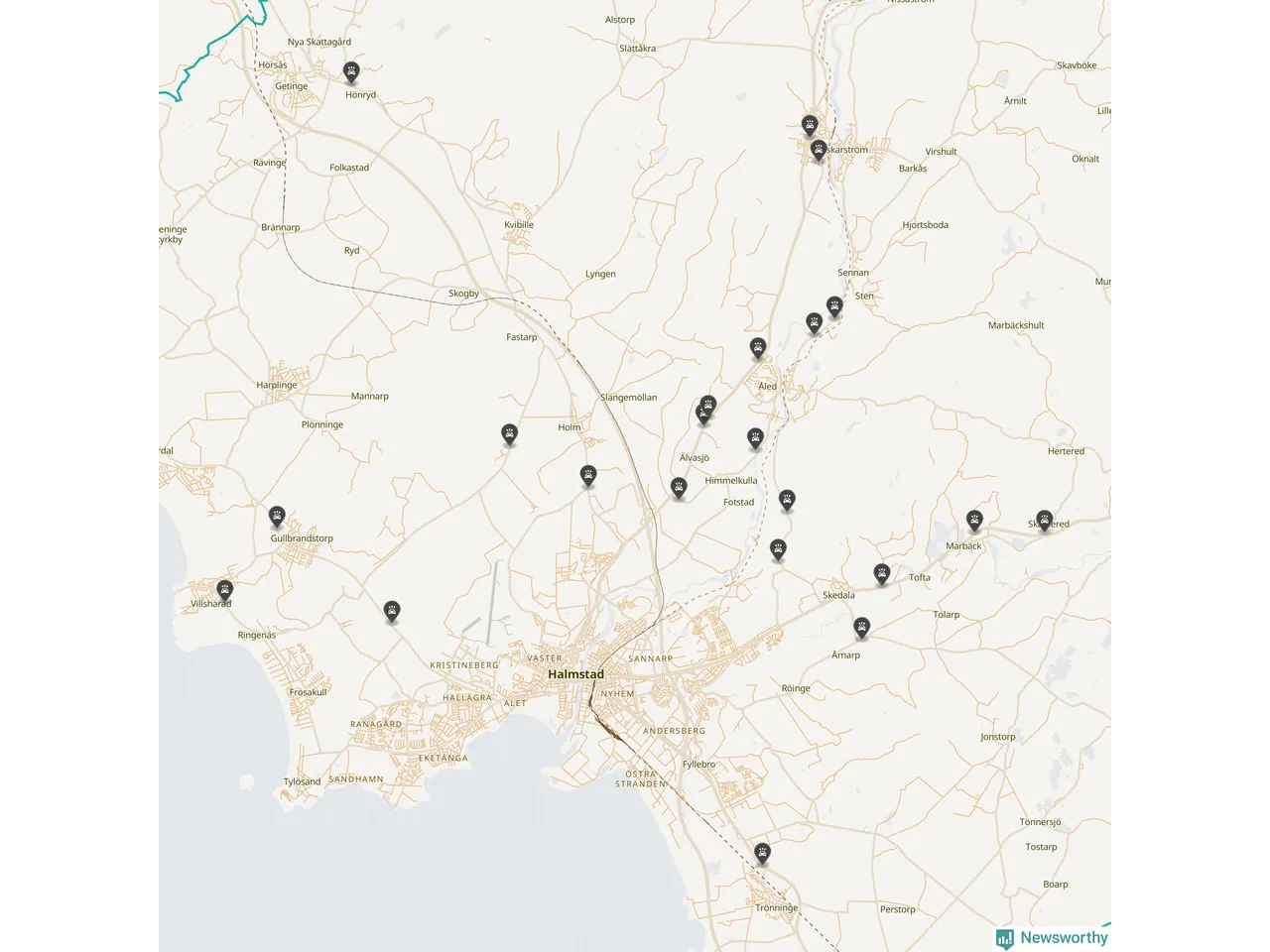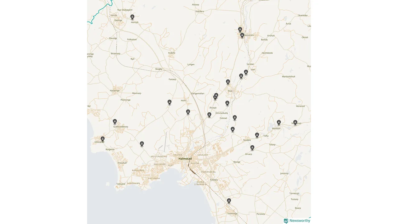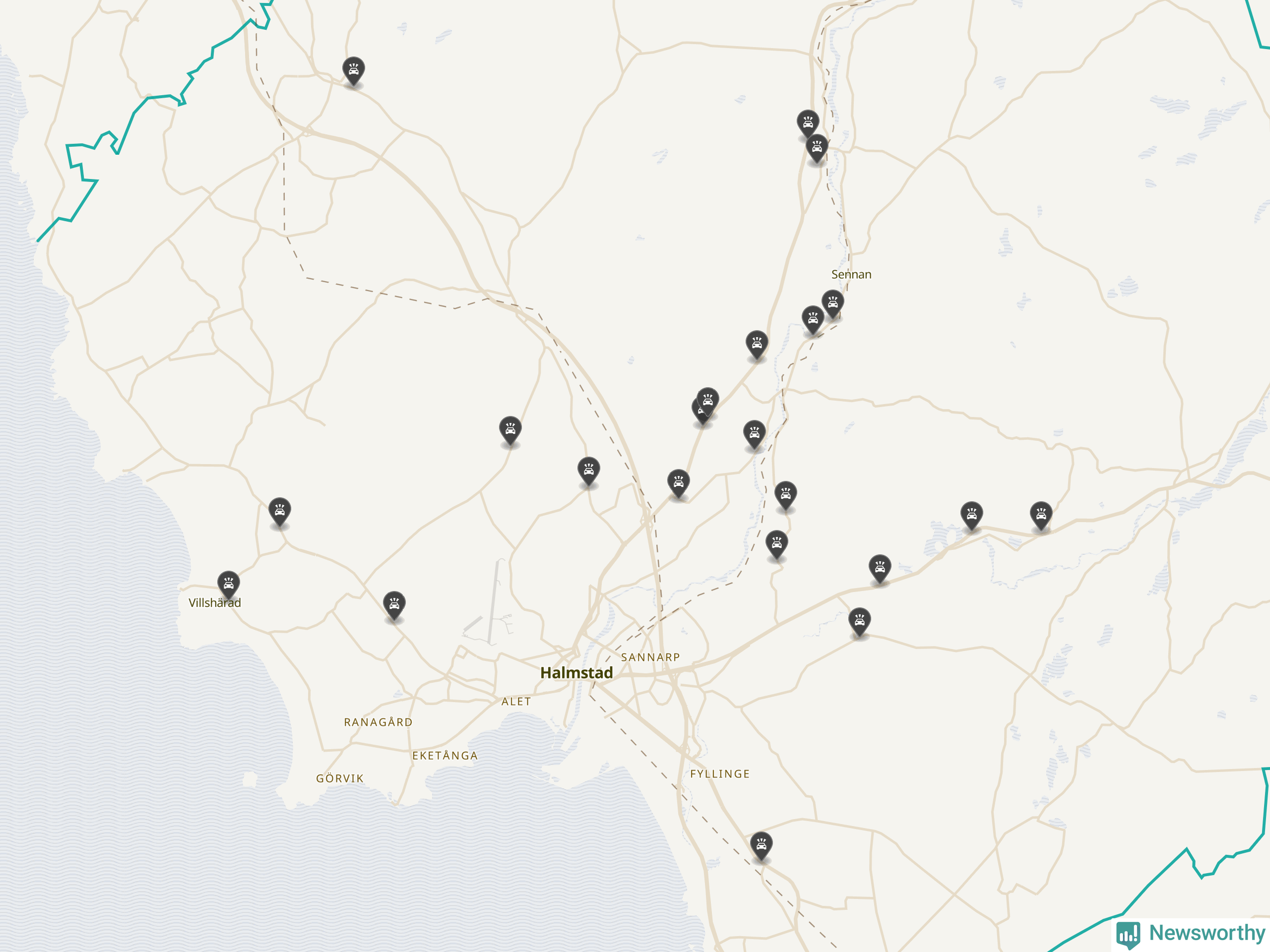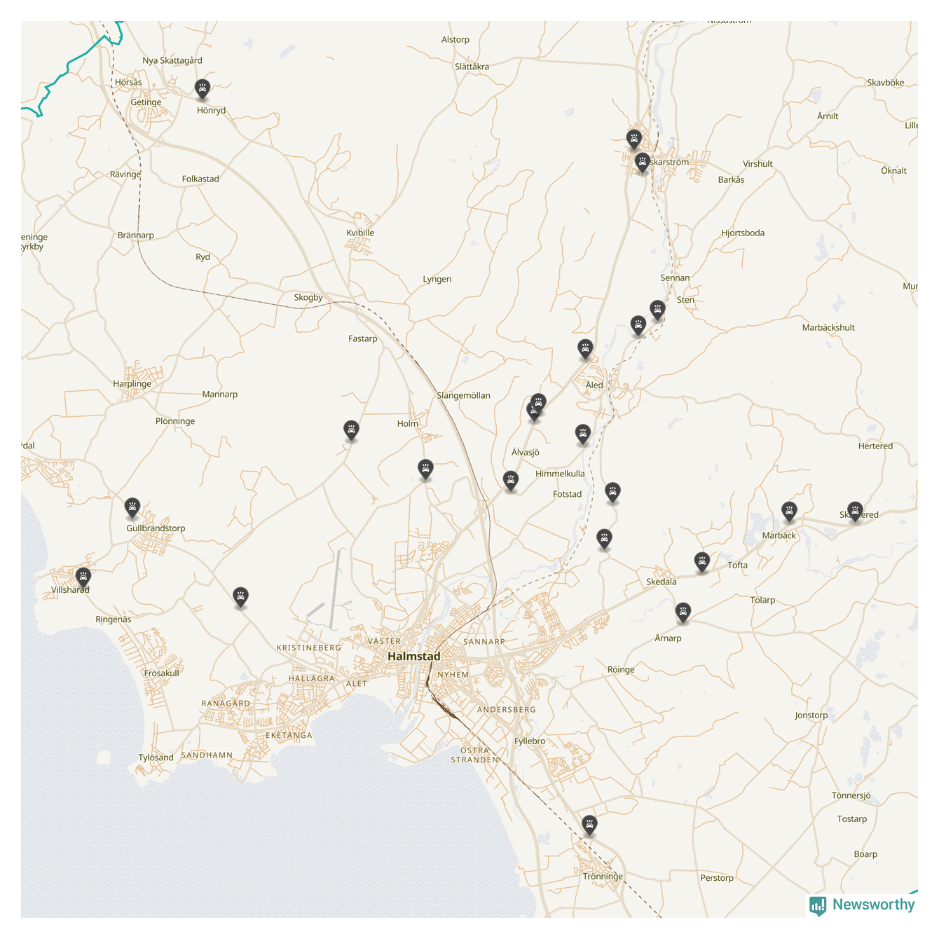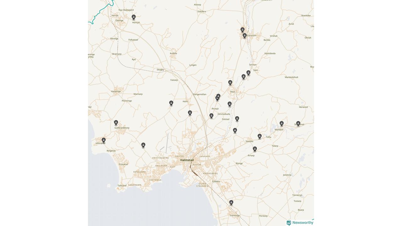 Karta över viltolyckor i Halmstads kommun