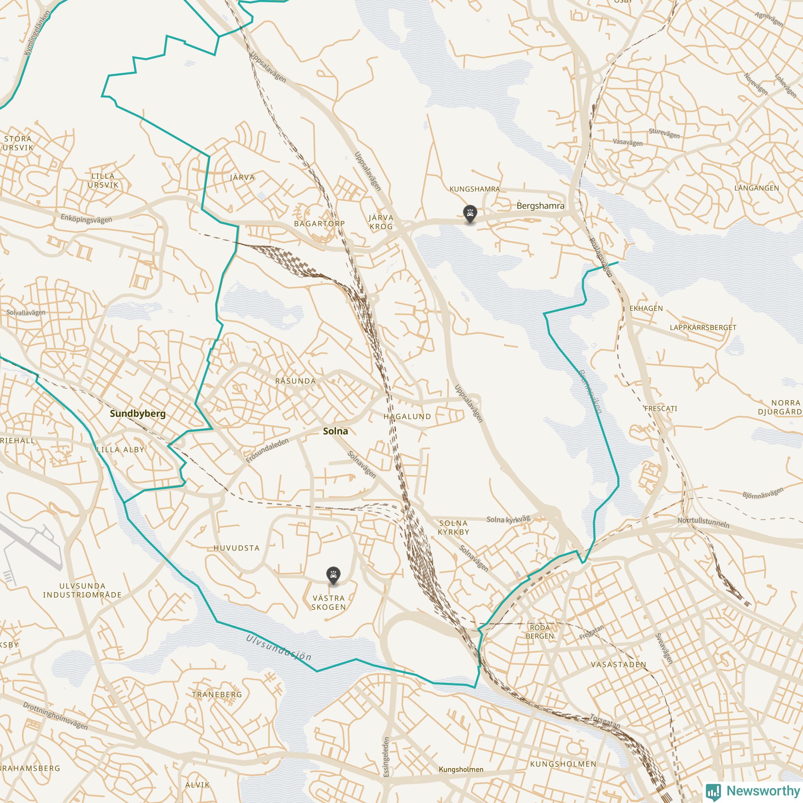 Karta över viltolyckor i Solna kommun