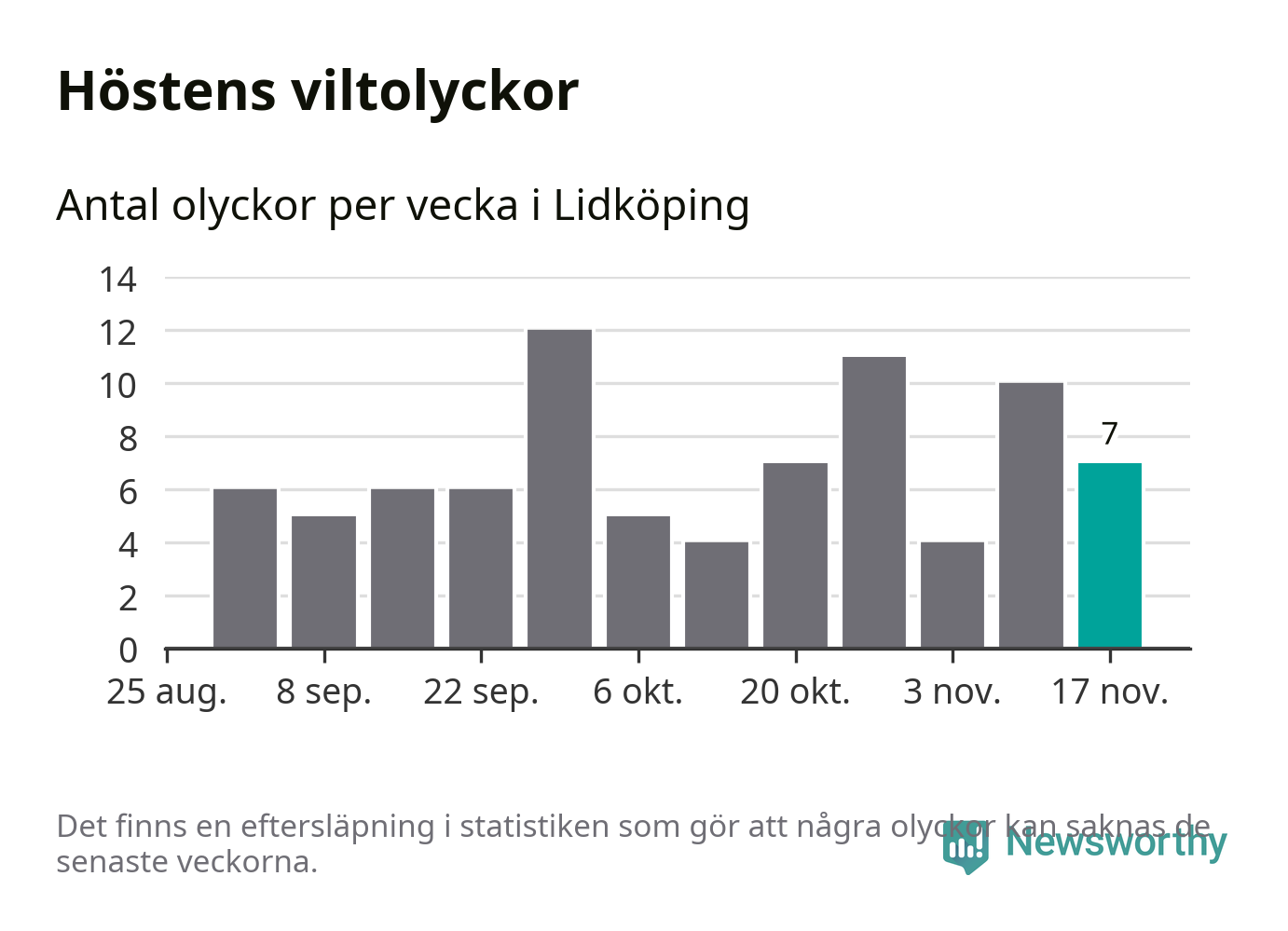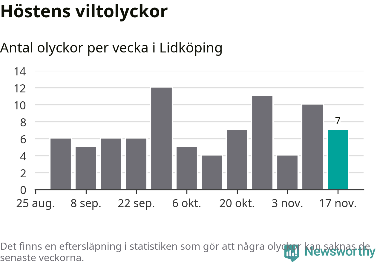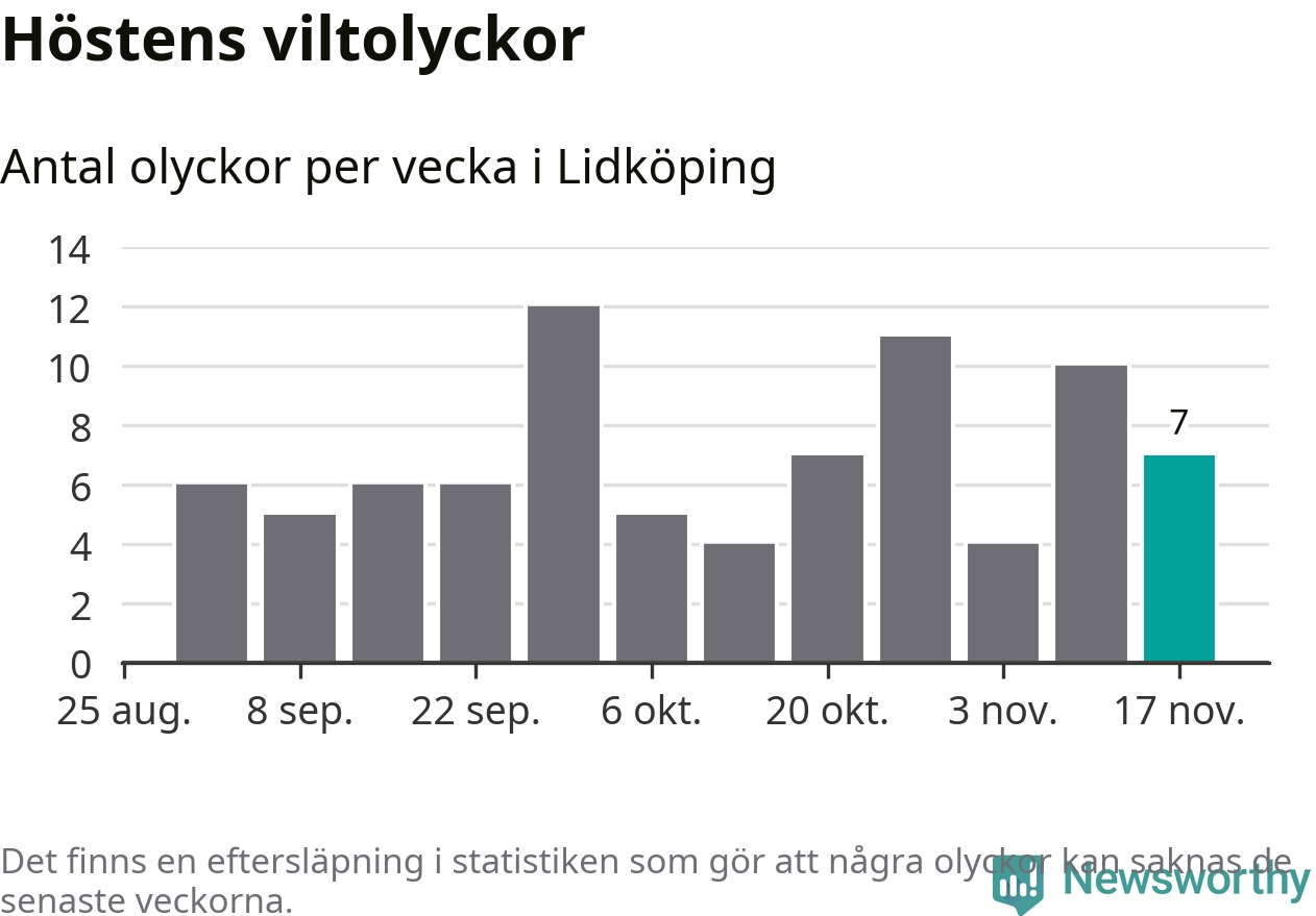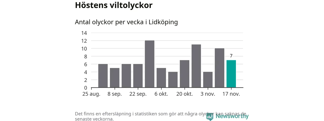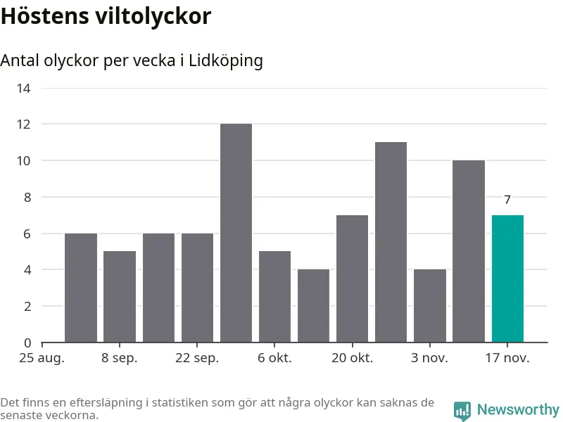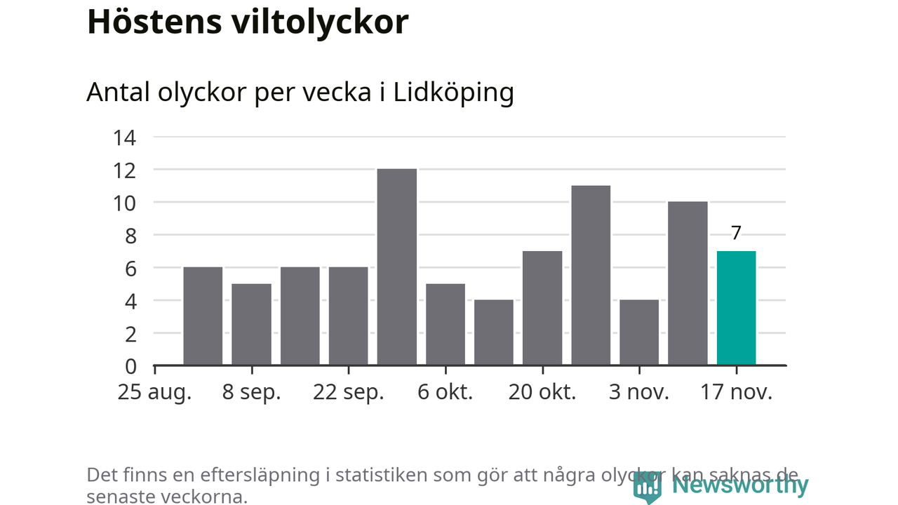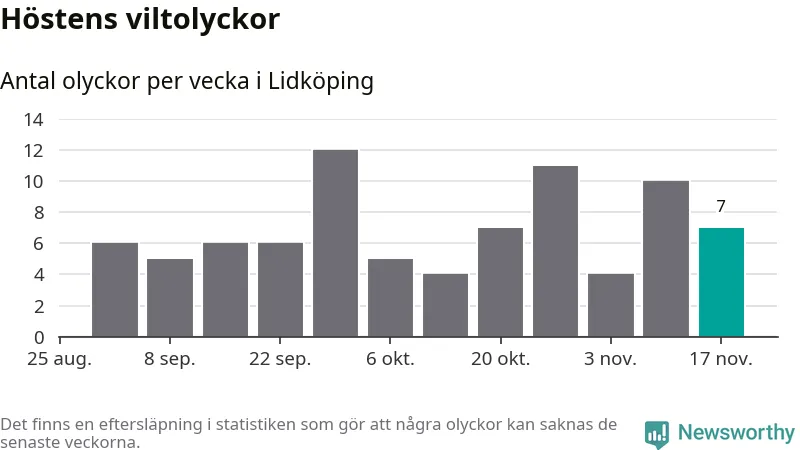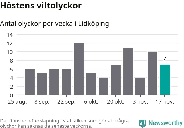 Hittills har sju viltolyckor rapporterats in i Lidköpings kommun från vecka 47. Se listan här.