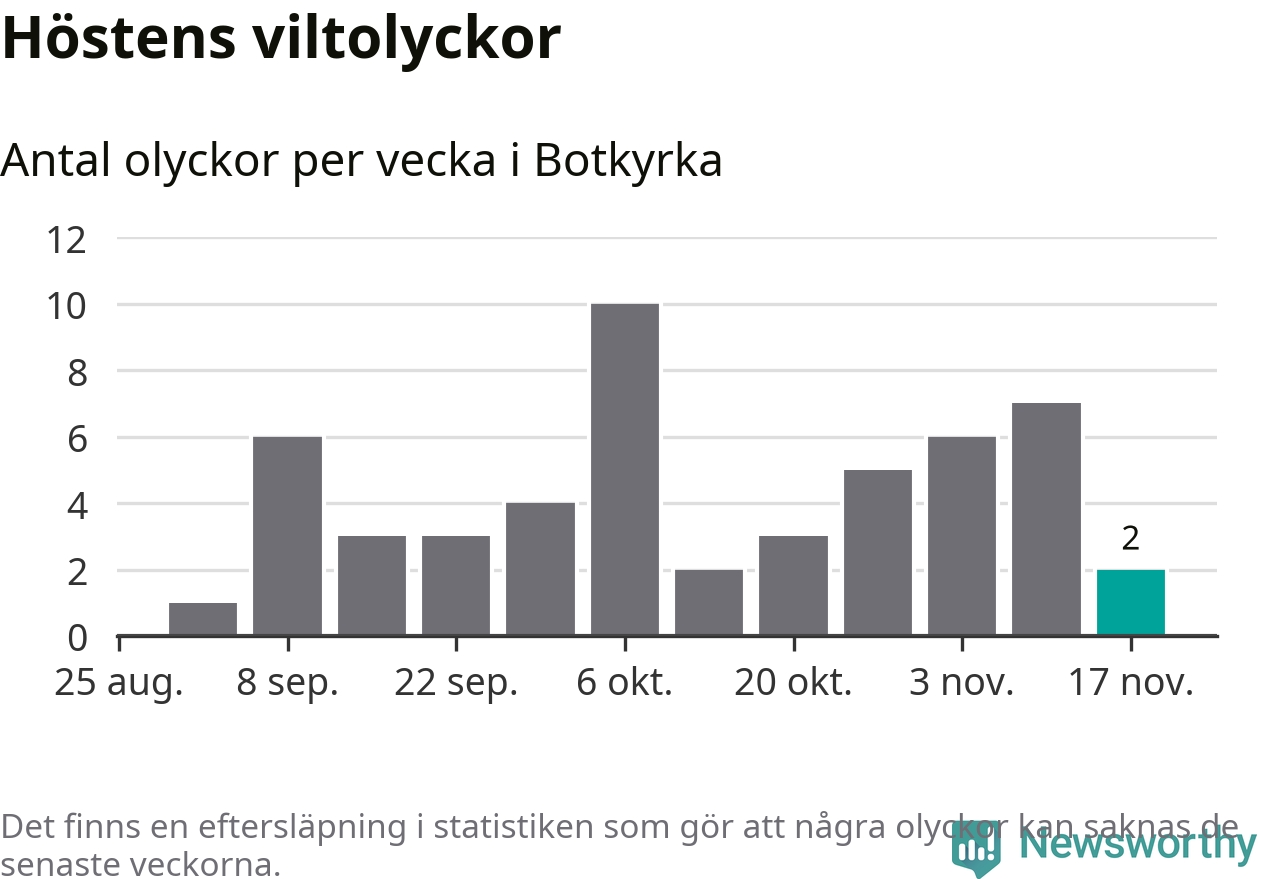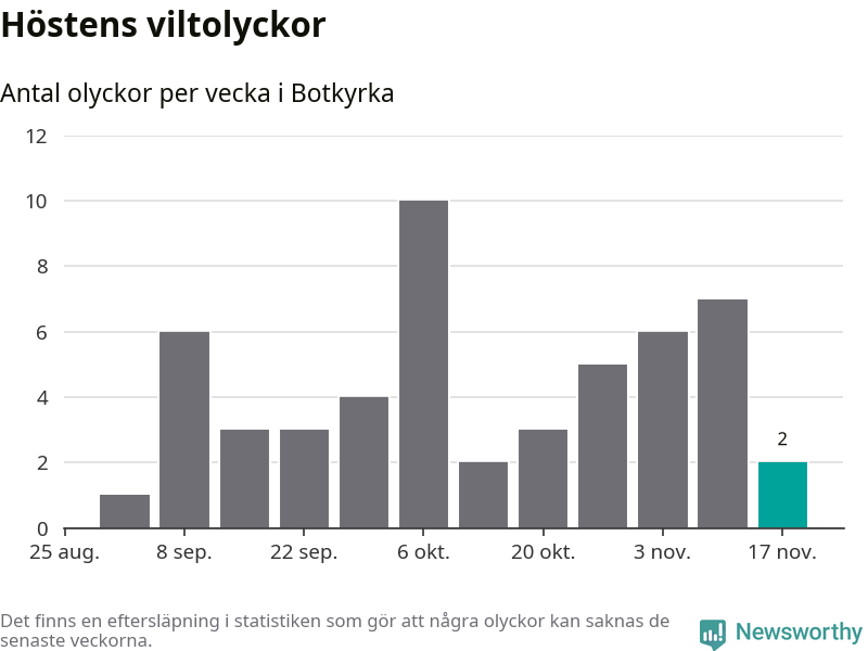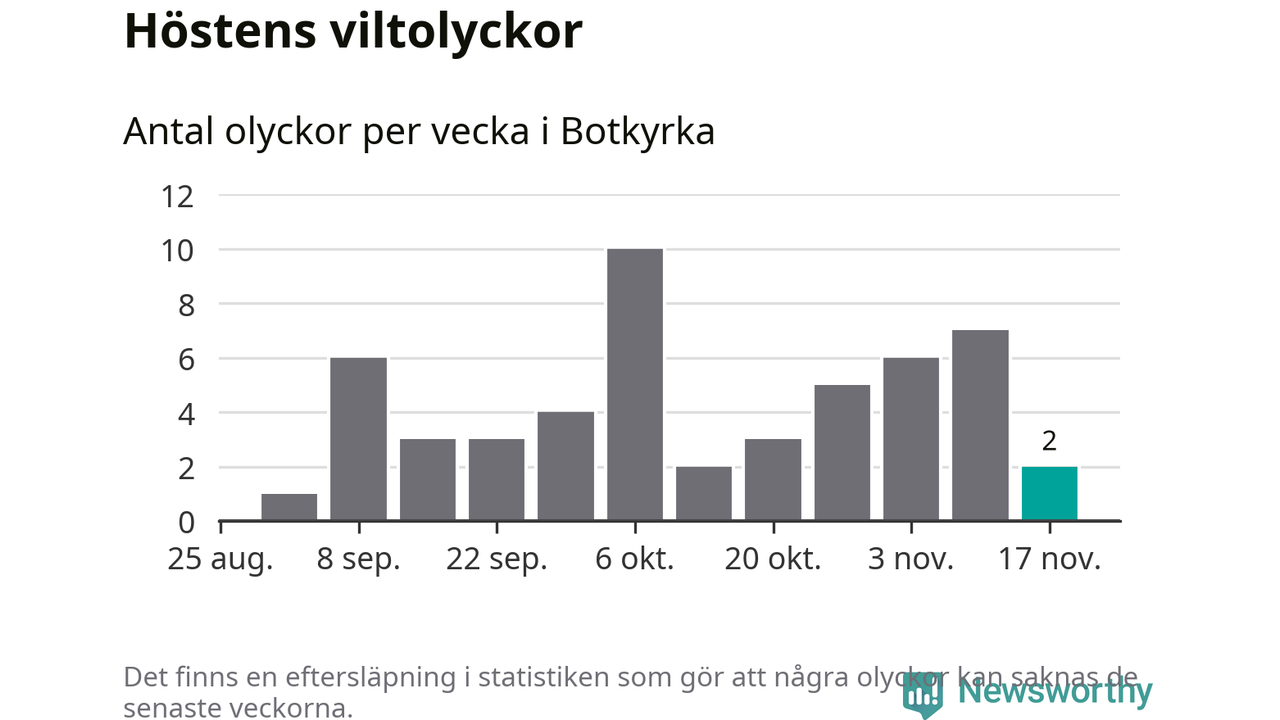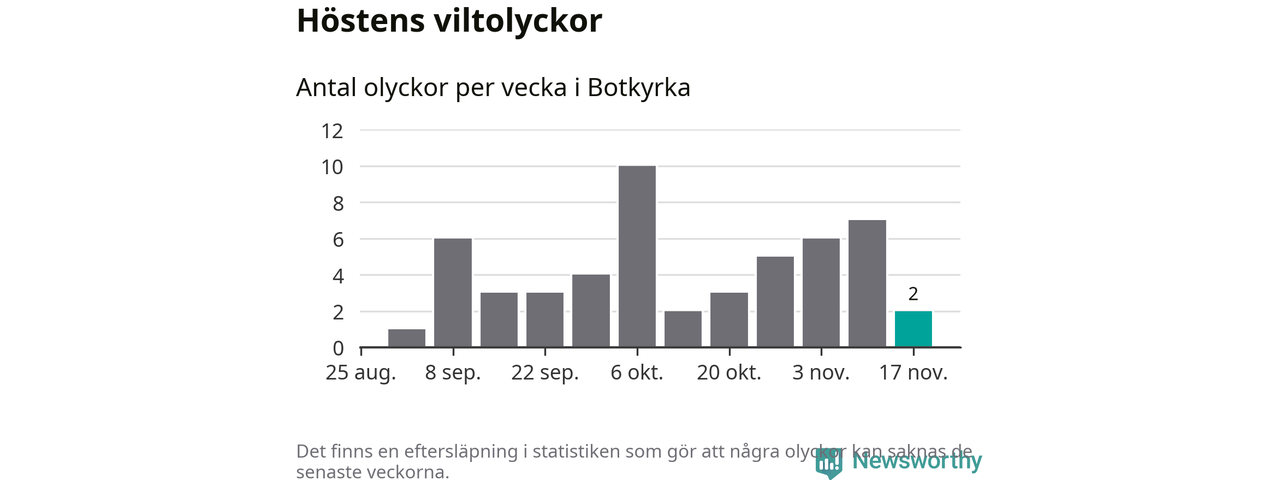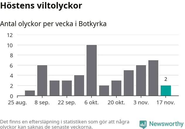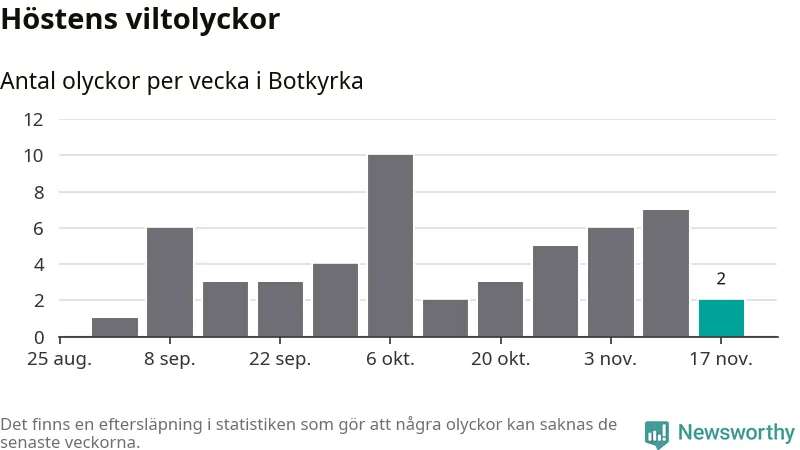 Hittills har två viltolyckor rapporterats in i Botkyrka kommun från vecka 47. Se listan här.
