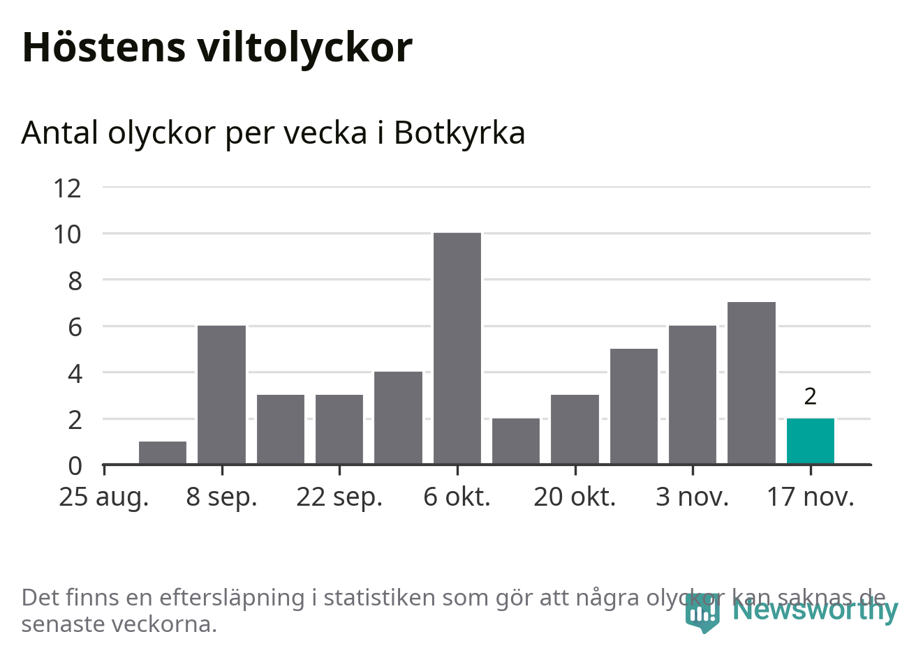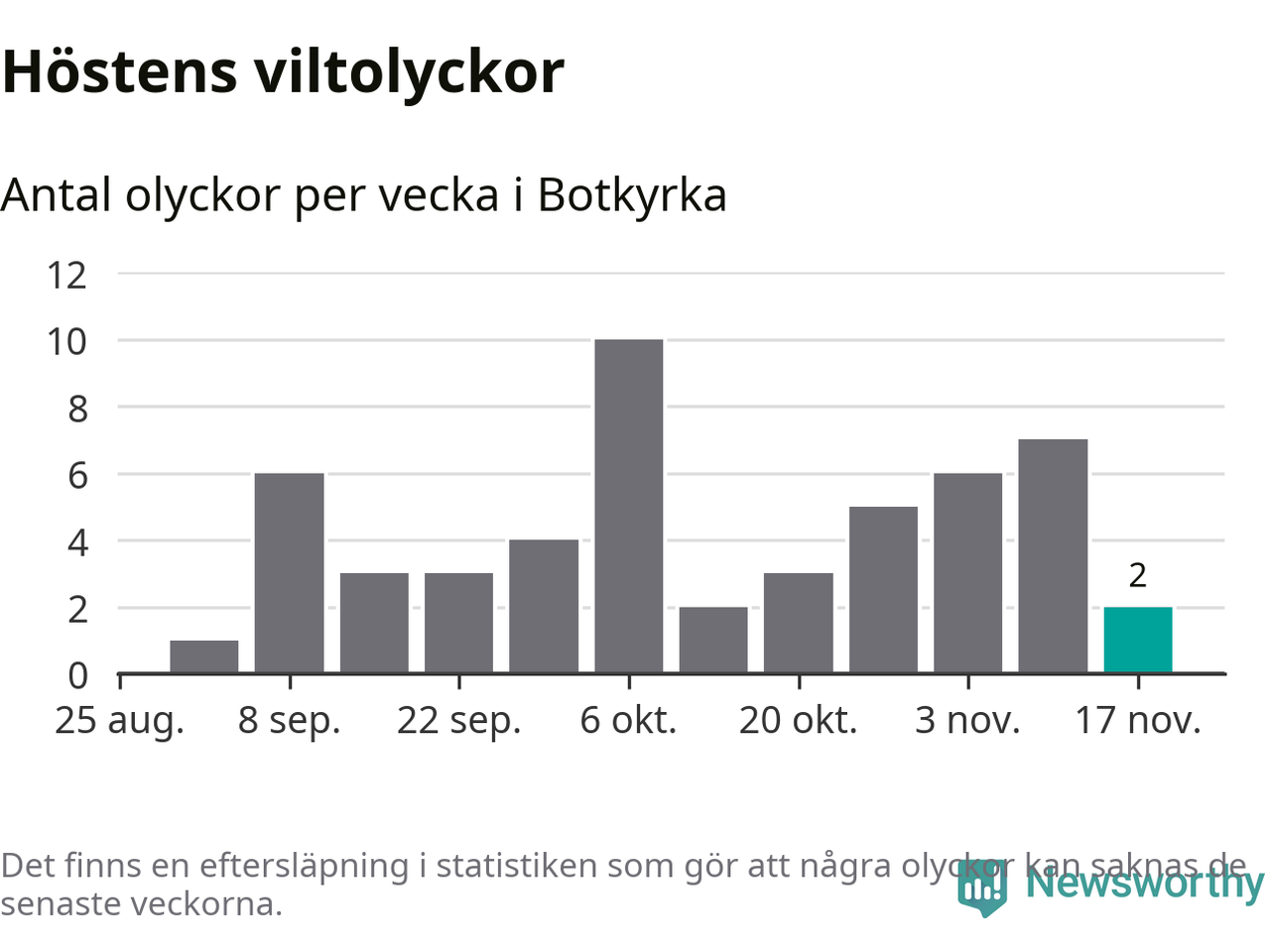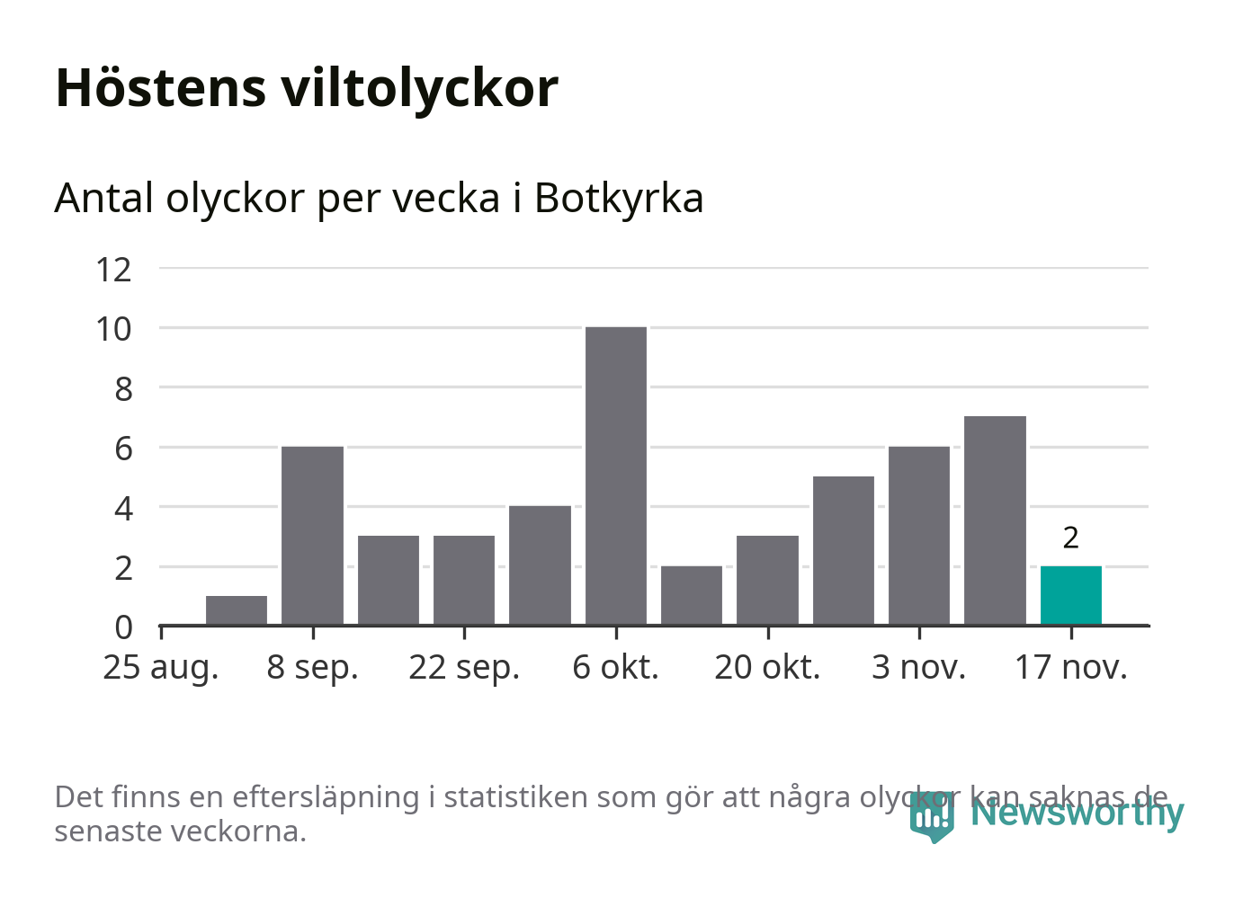 Hittills har två viltolyckor rapporterats in i Botkyrka kommun från vecka 47. Se listan här.
