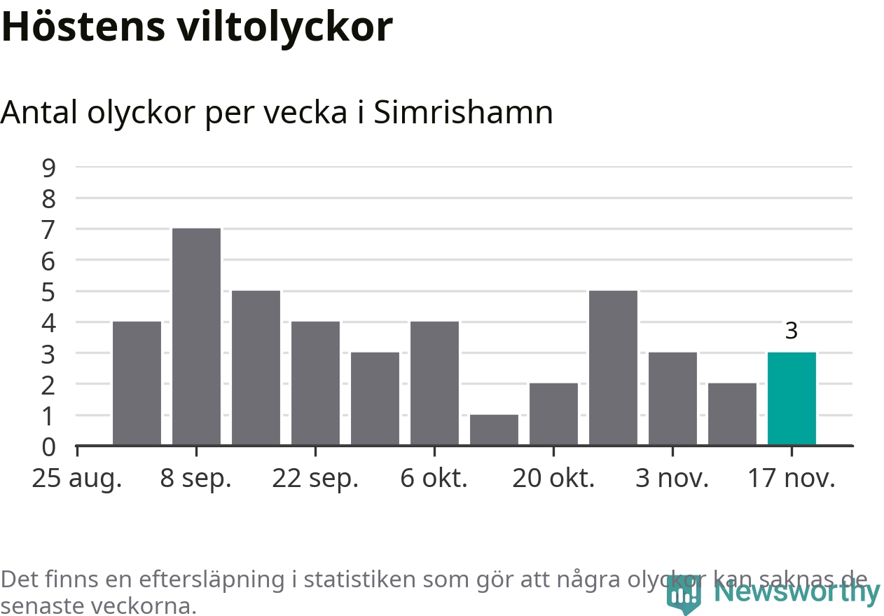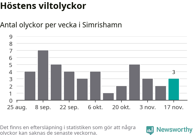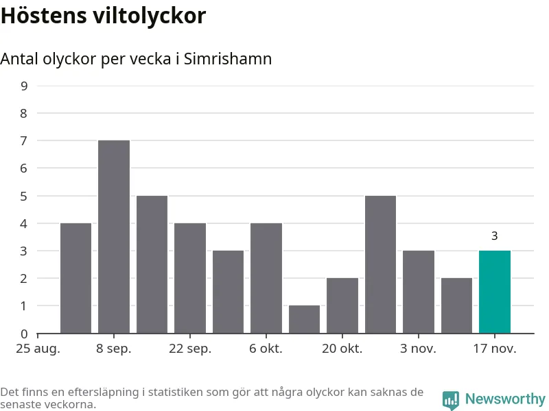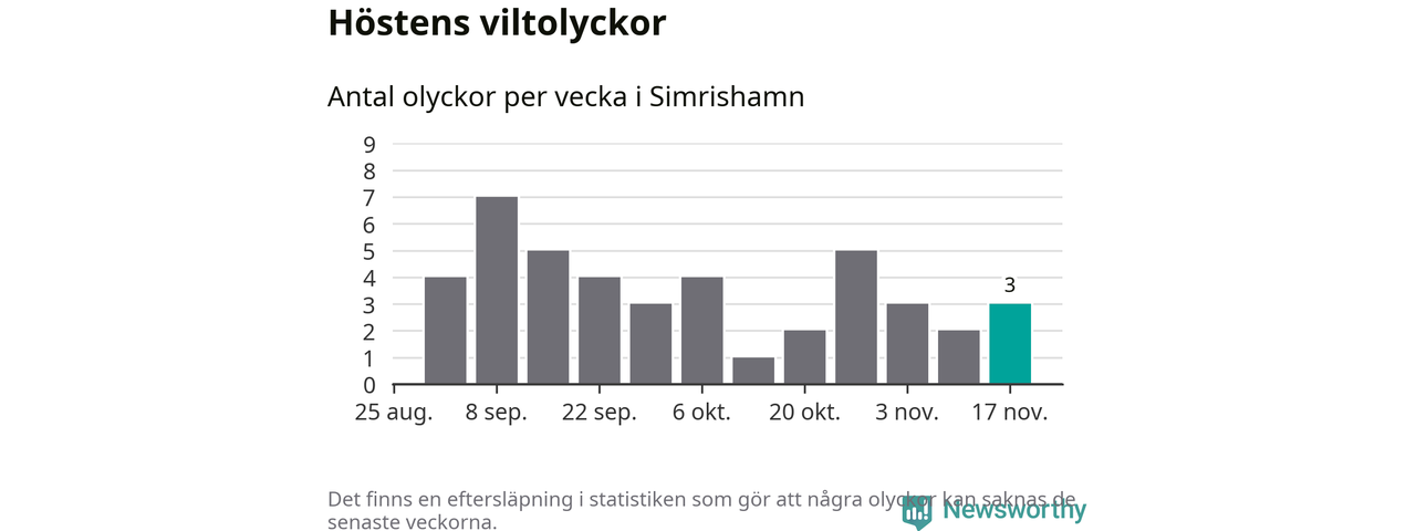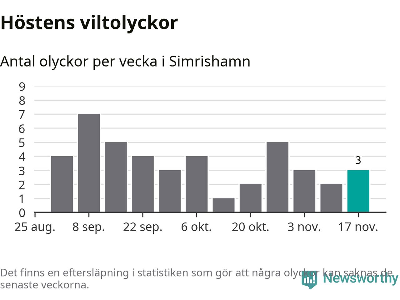 Hittills har tre viltolyckor rapporterats in i Simrishamns kommun från vecka 47. Se listan här.