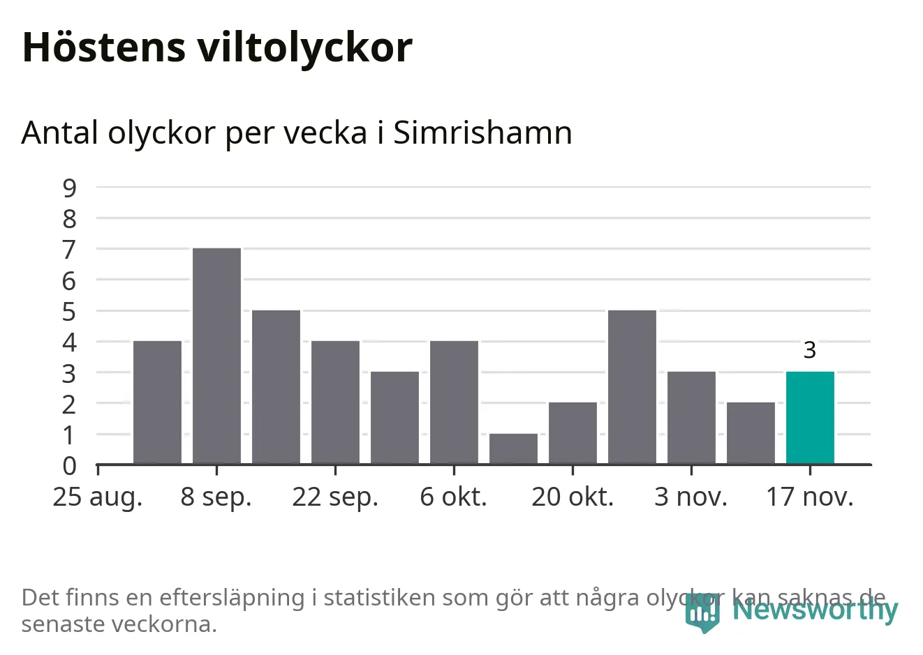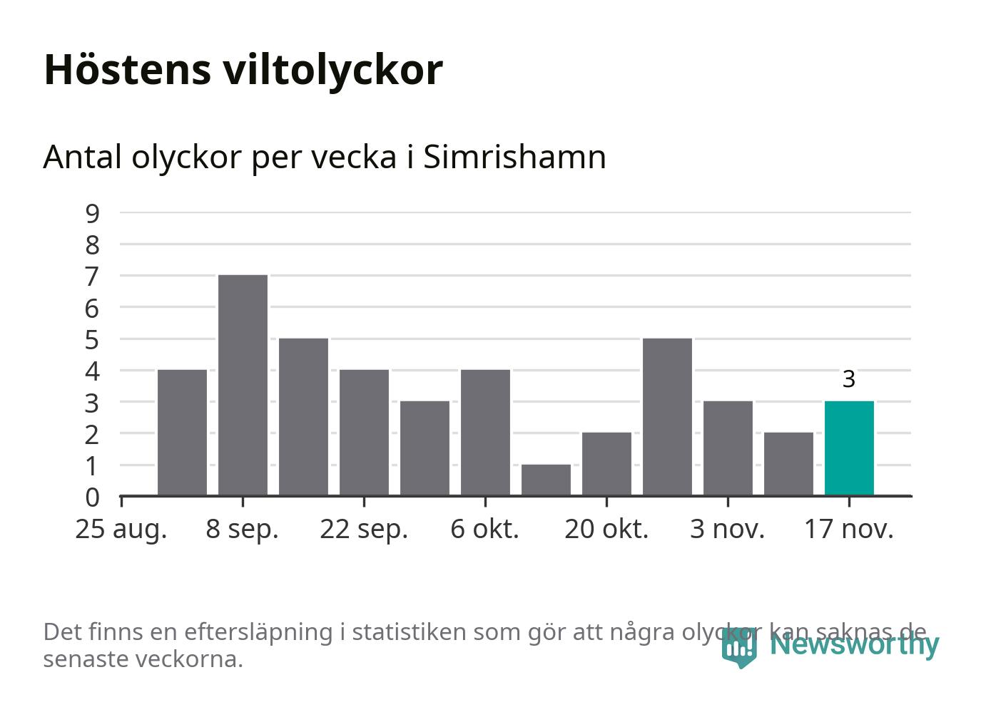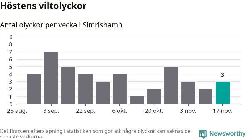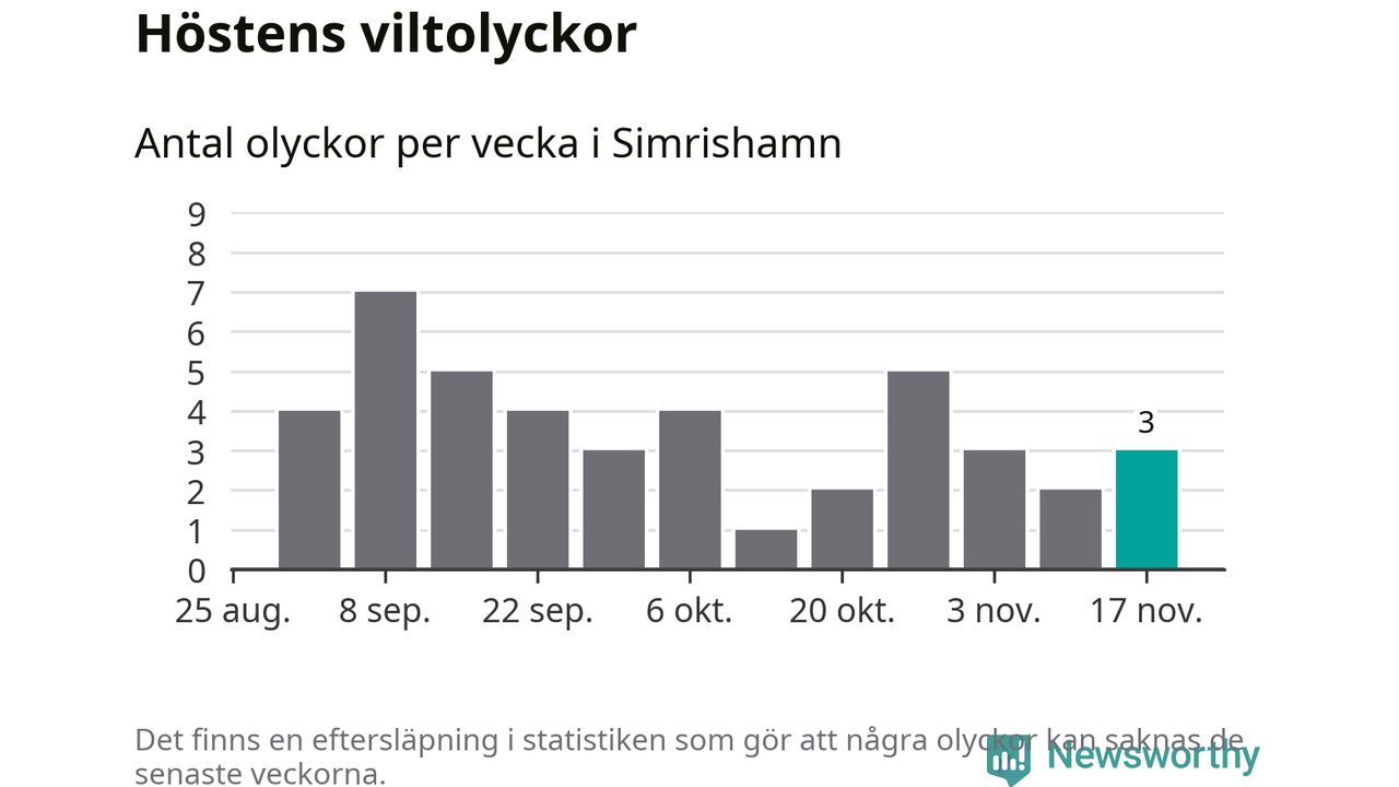 Hittills har tre viltolyckor rapporterats in i Simrishamns kommun från vecka 47. Se listan här.