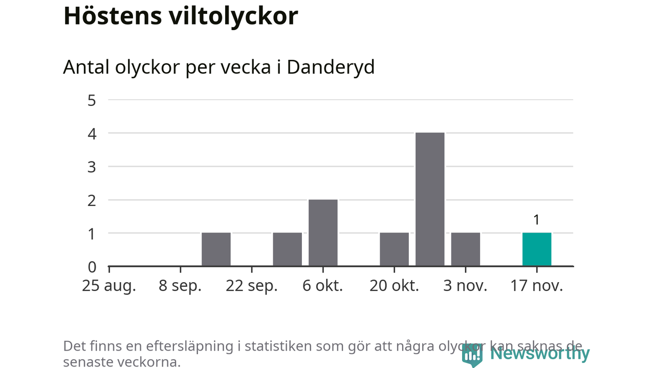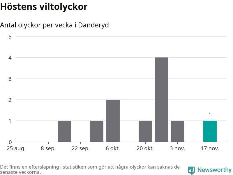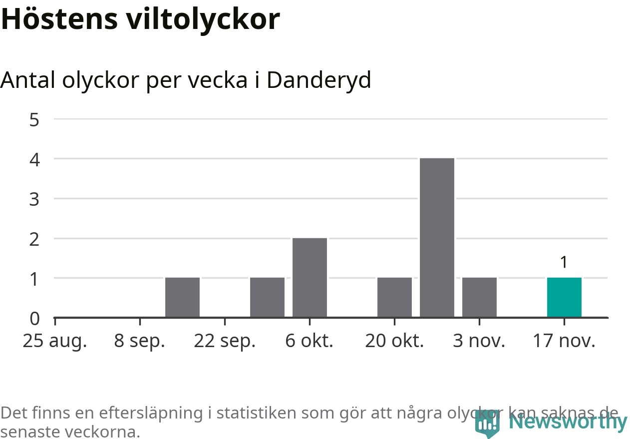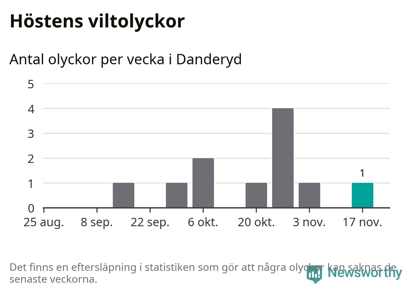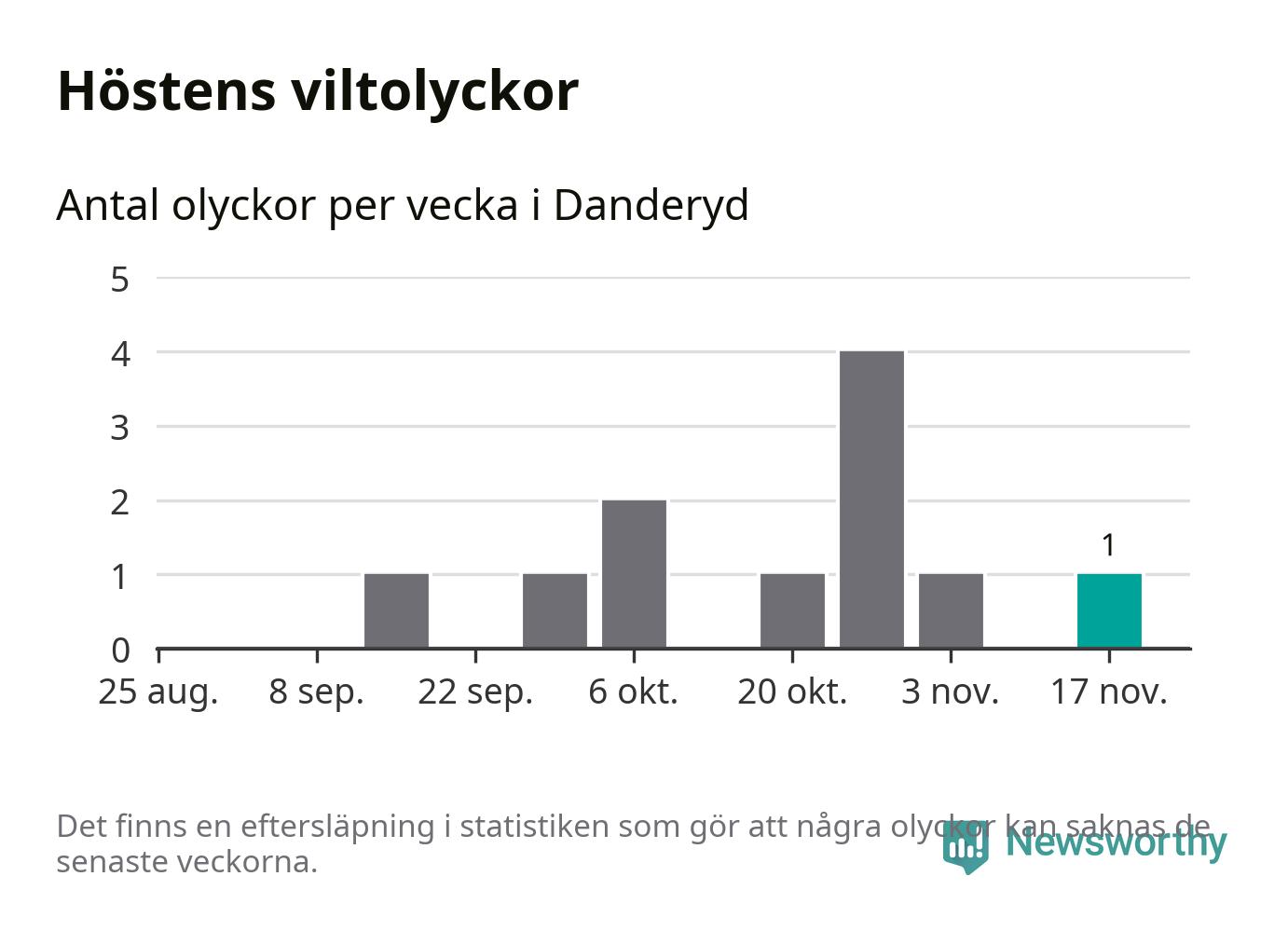 Från förra veckan (vecka 47) har hittills en viltolycka rapporterats in i Danderyds kommun.