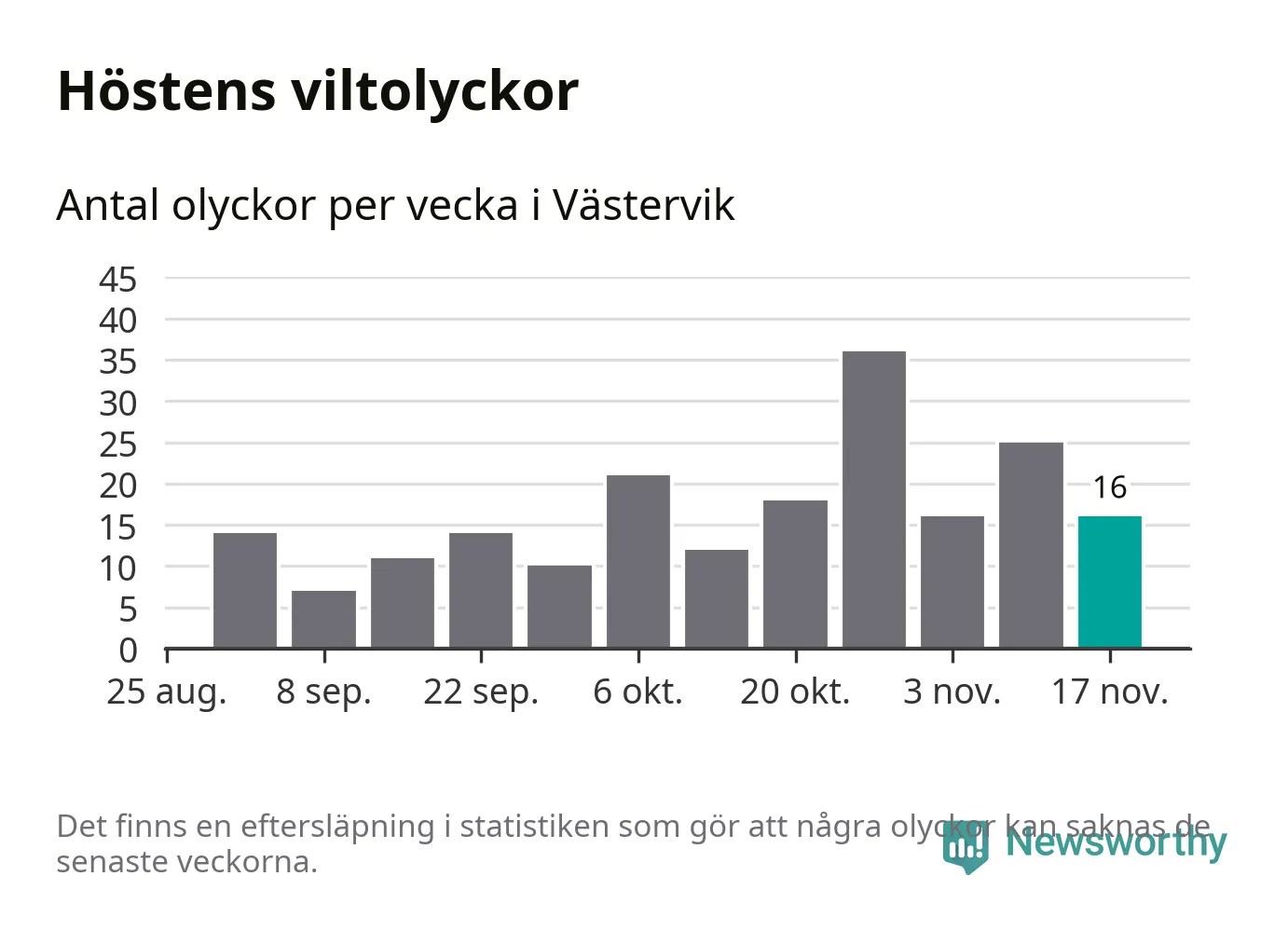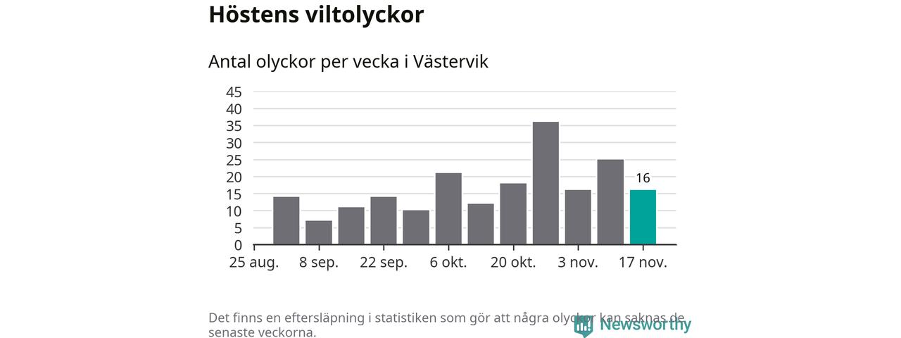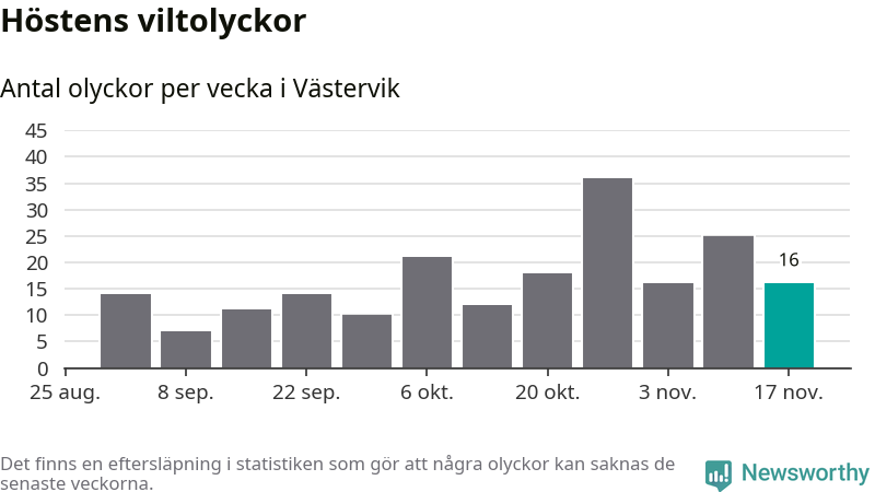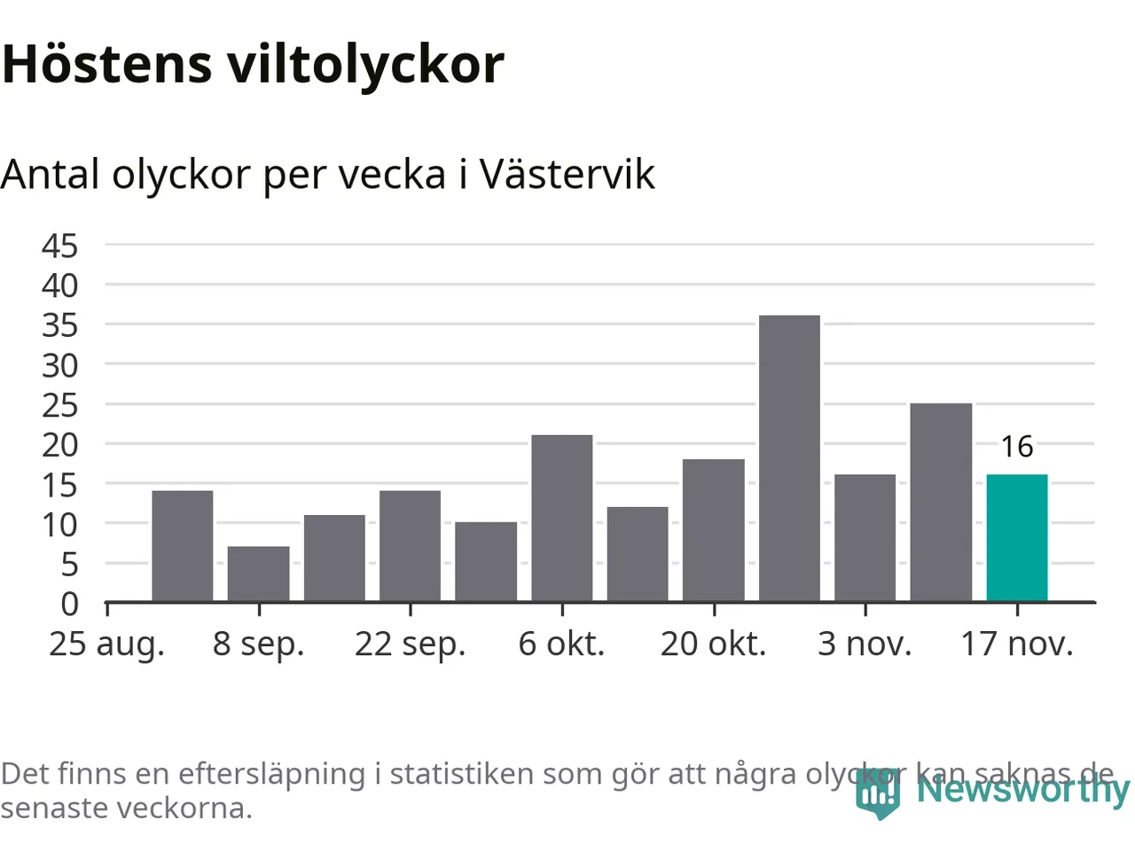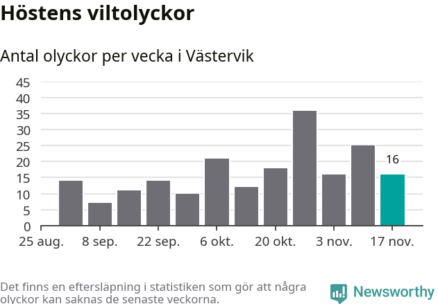 Hittills har 16 viltolyckor rapporterats in i Västerviks kommun från vecka 47. Se listan här.
