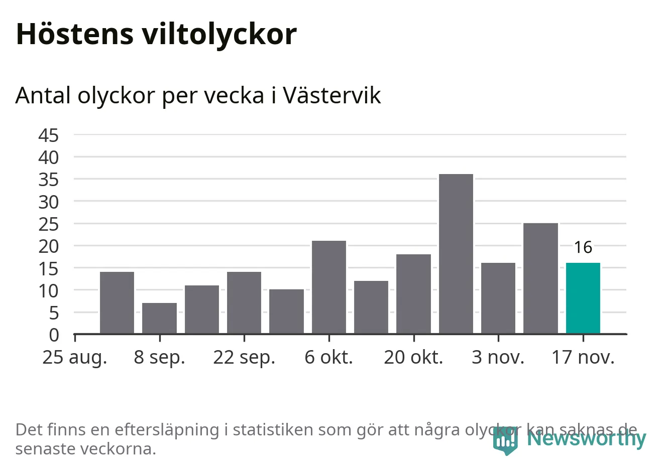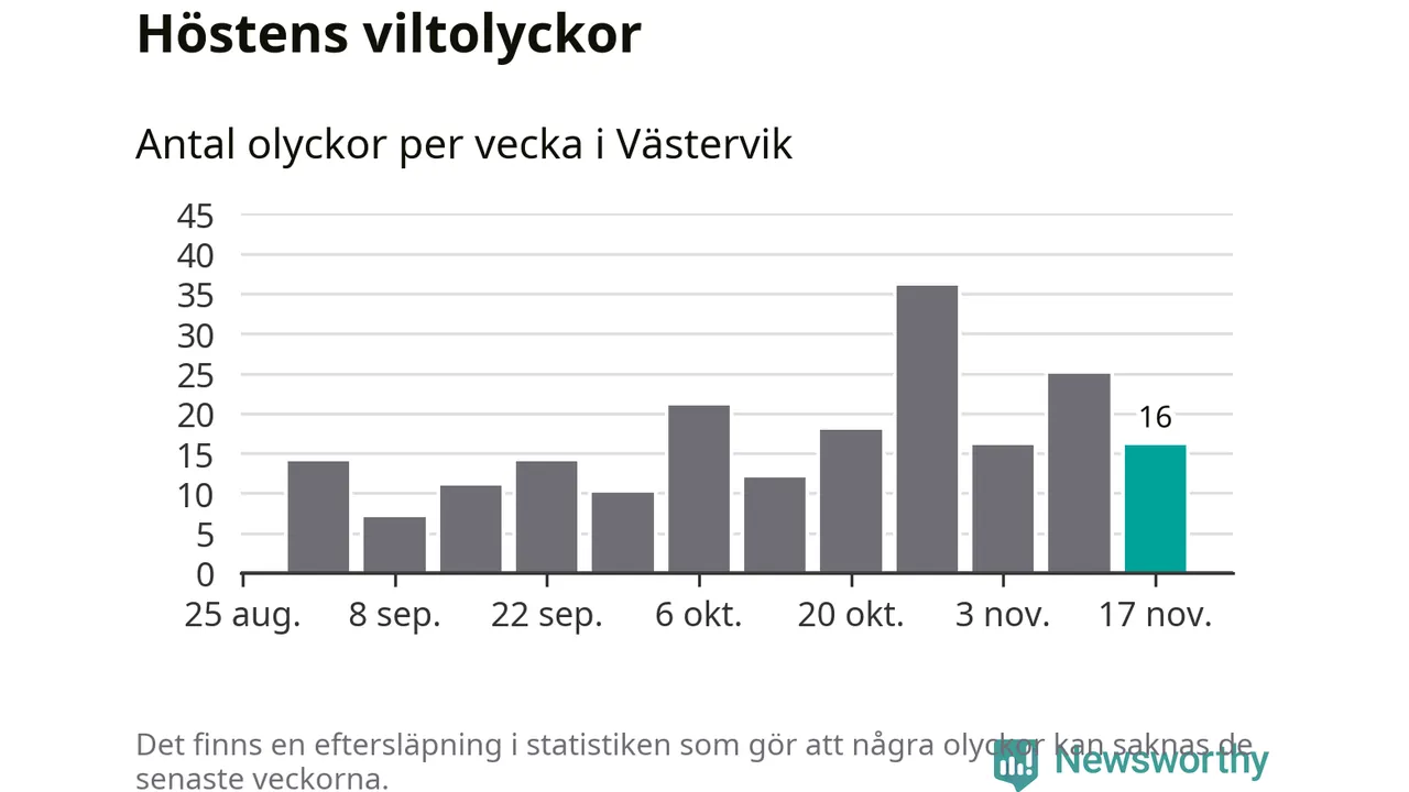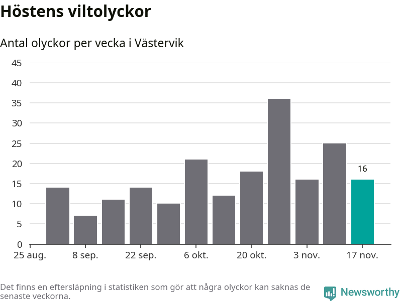 Hittills har 16 viltolyckor rapporterats in i Västerviks kommun från vecka 47. Se listan här.