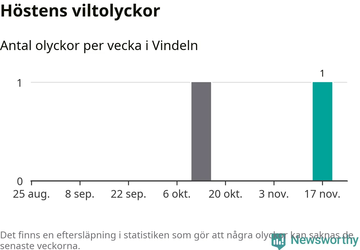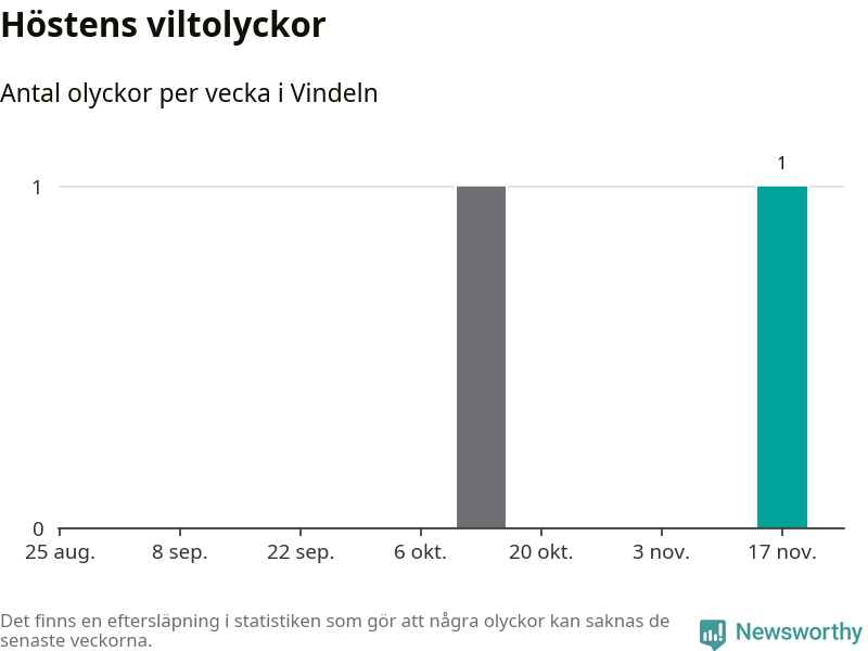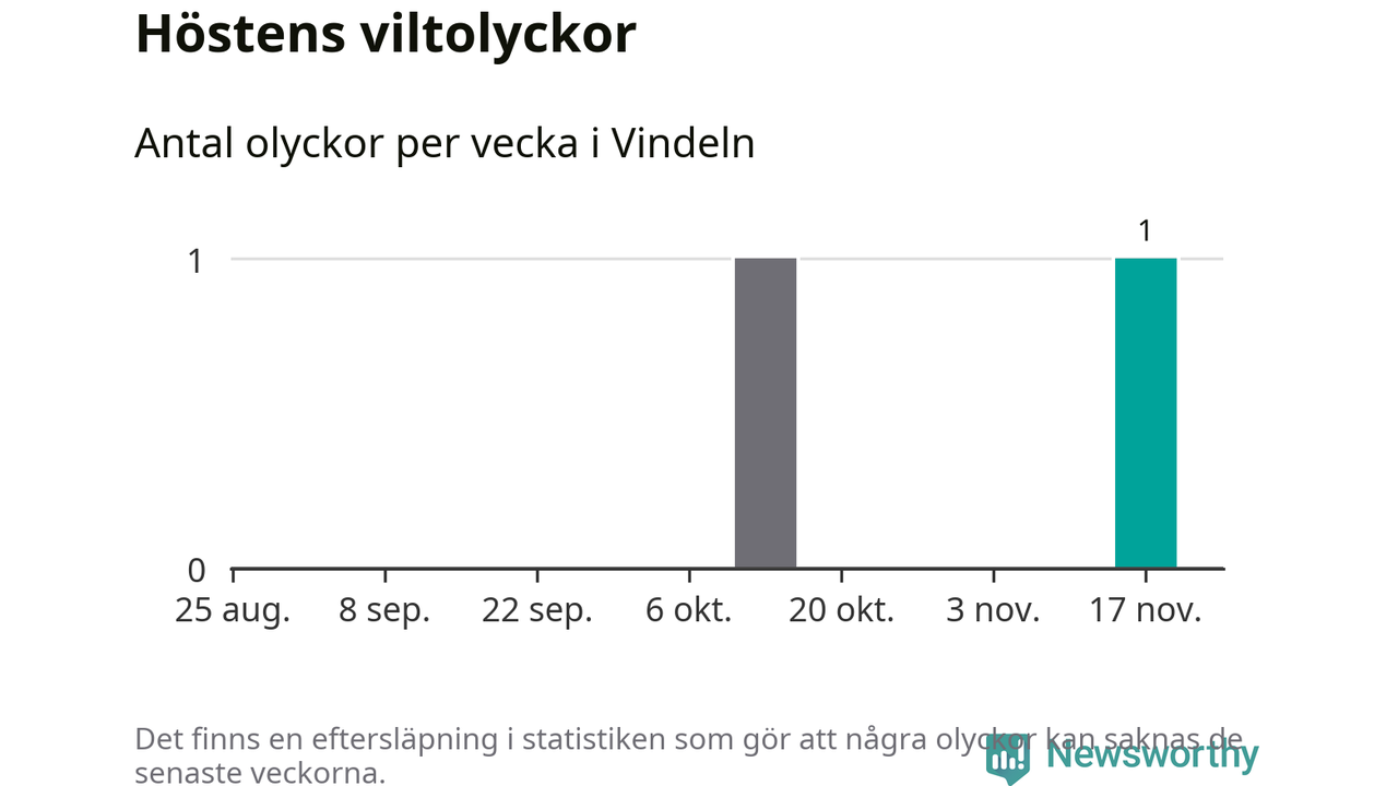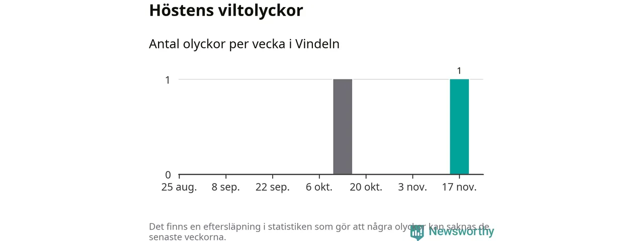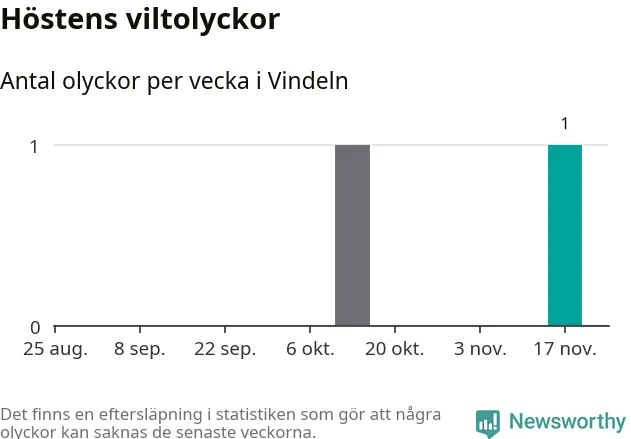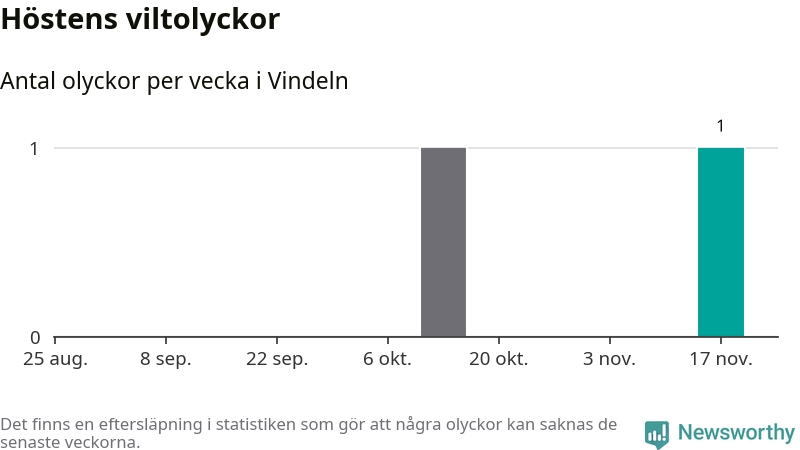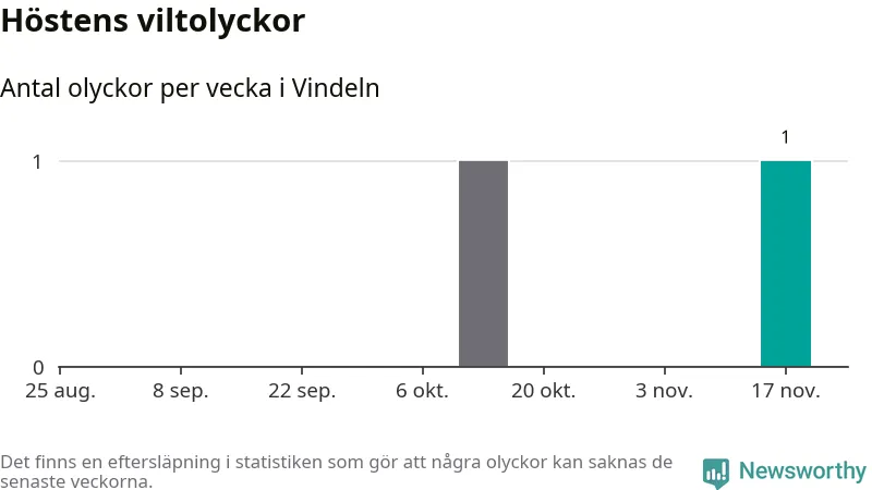 Från förra veckan (vecka 47) har hittills en viltolycka rapporterats in i Vindelns kommun.