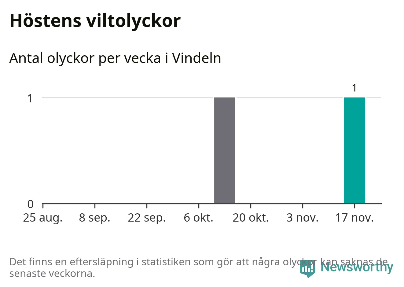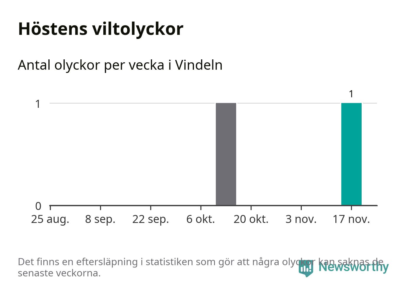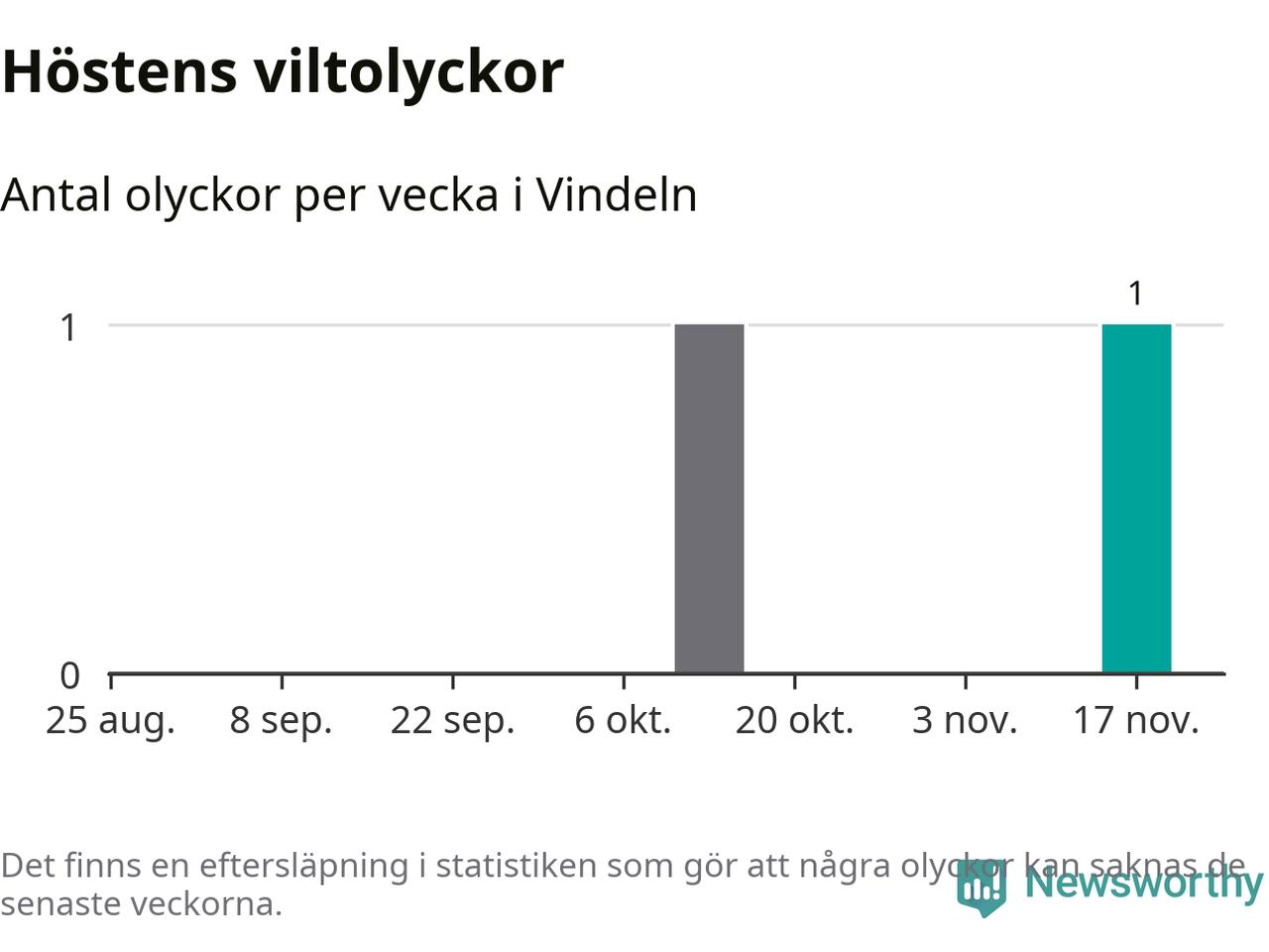 Från förra veckan (vecka 47) har hittills en viltolycka rapporterats in i Vindelns kommun.
