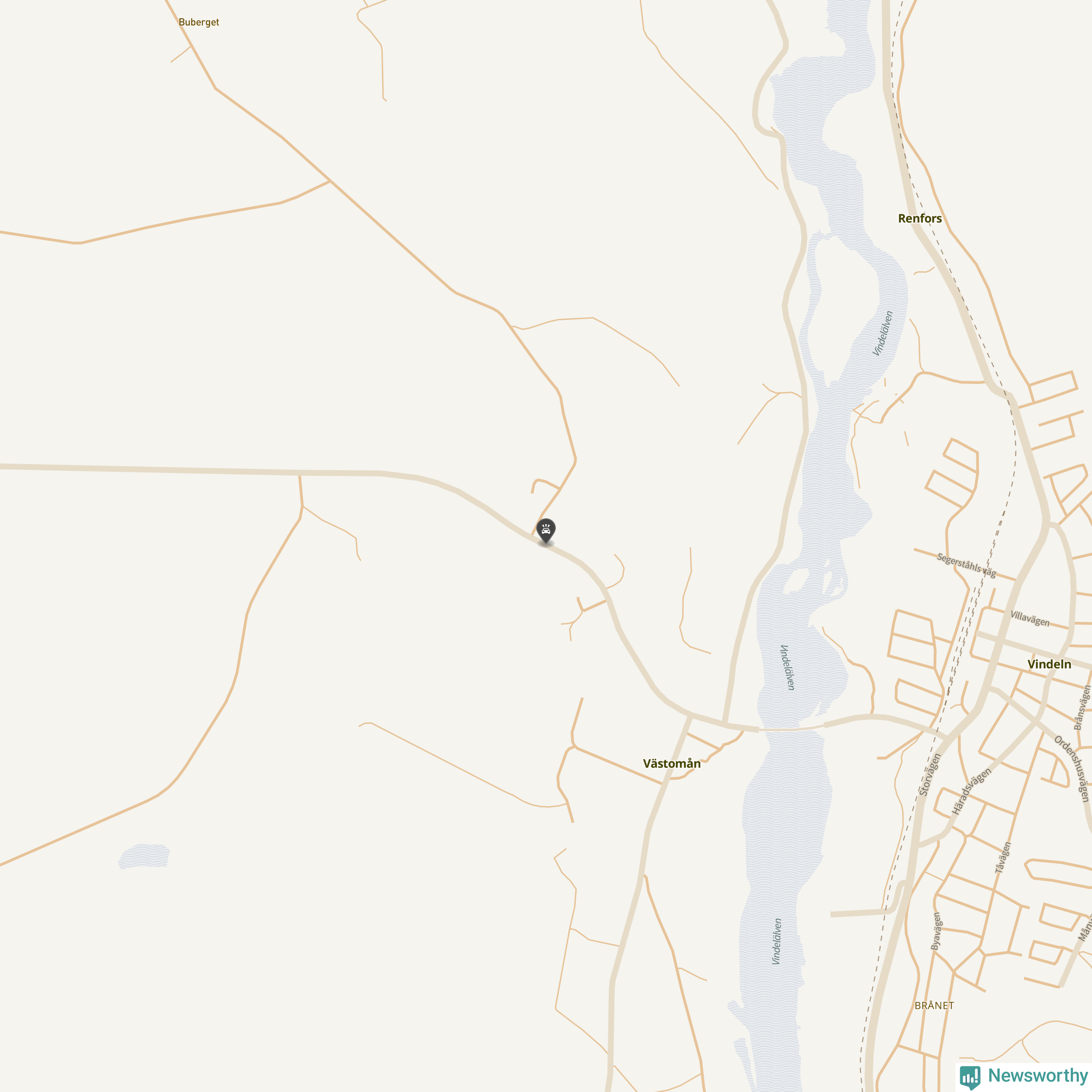 Karta över viltolyckor i Vindelns kommun