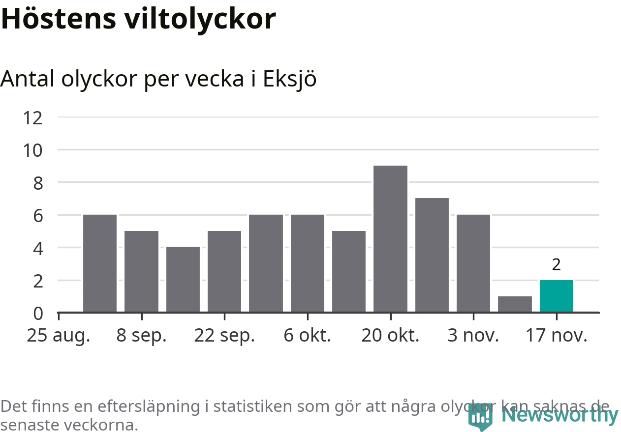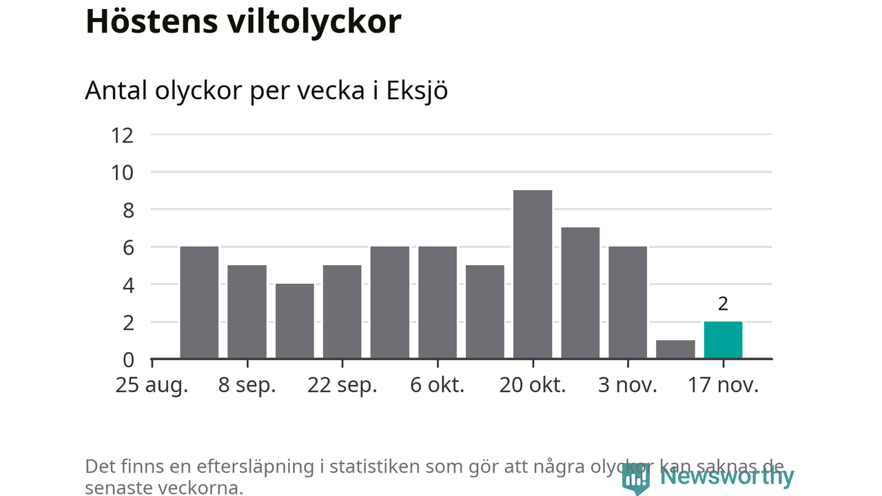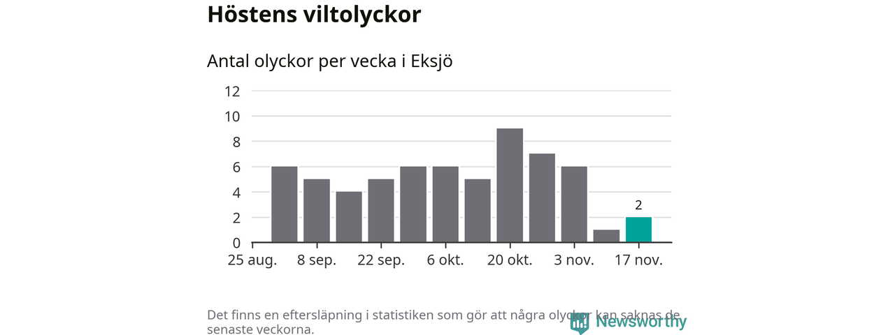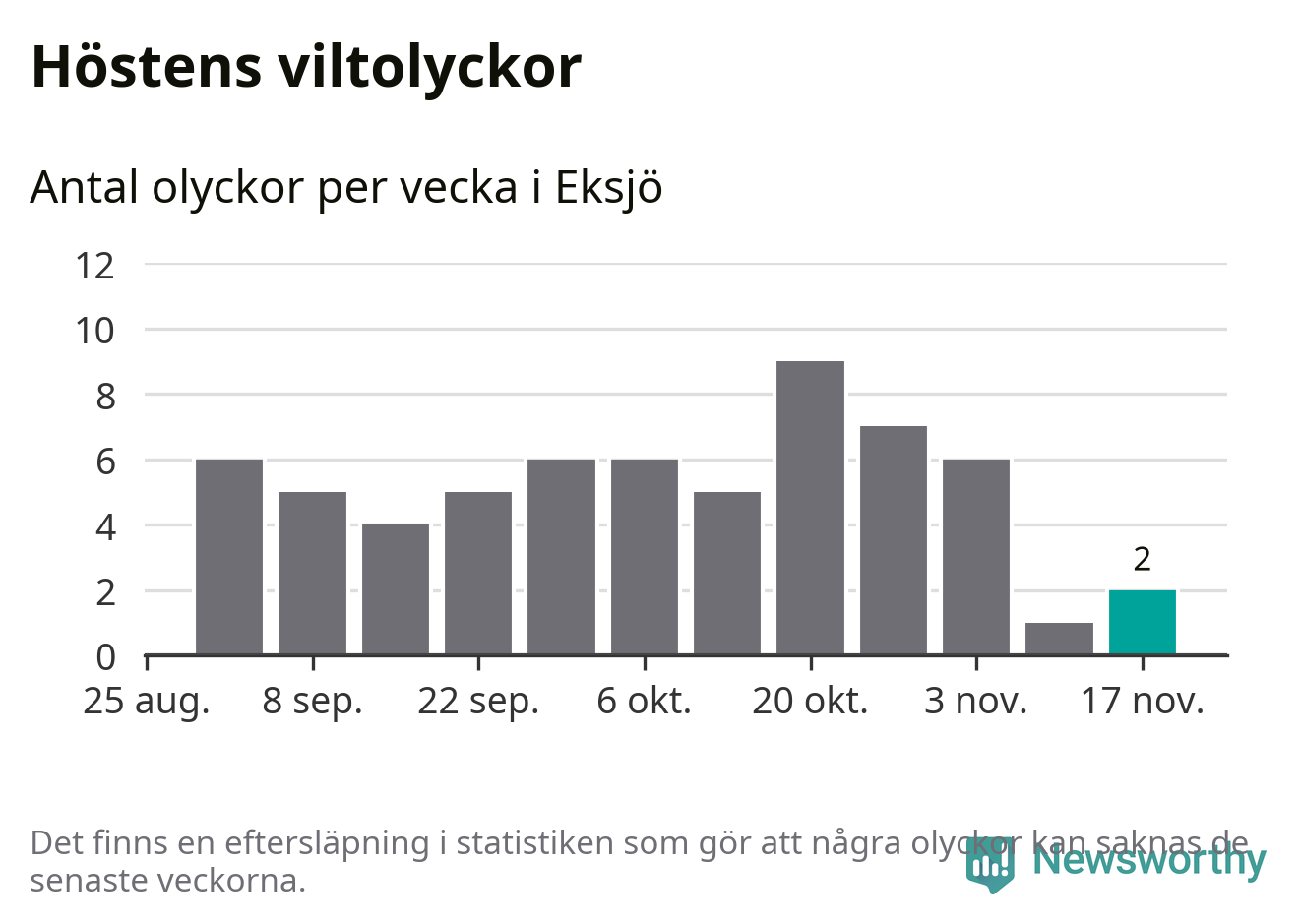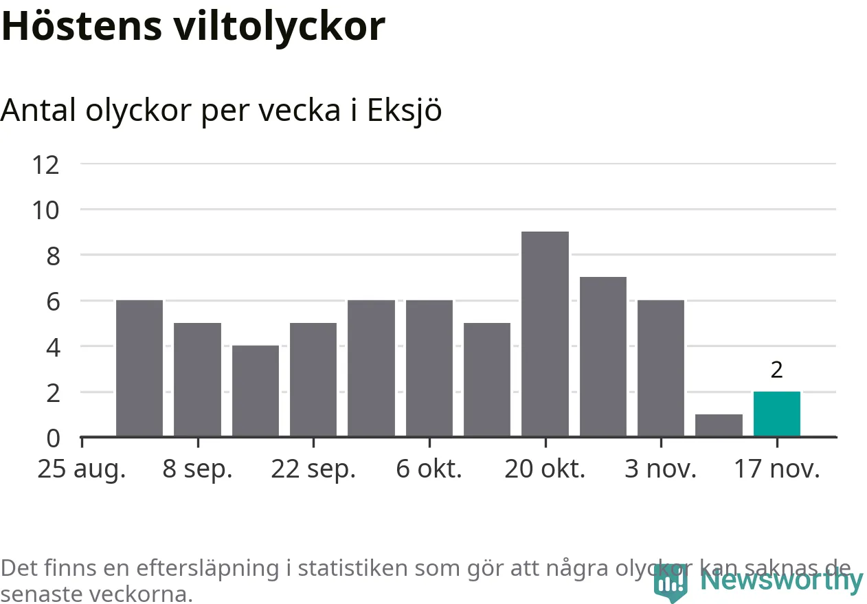 Hittills har två viltolyckor rapporterats in i Eksjö kommun från vecka 47. Se listan här.