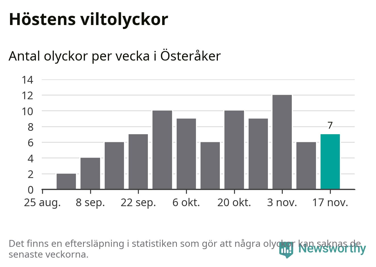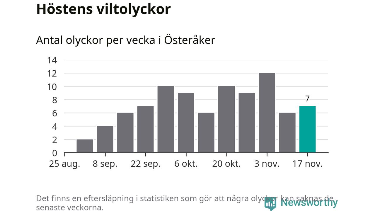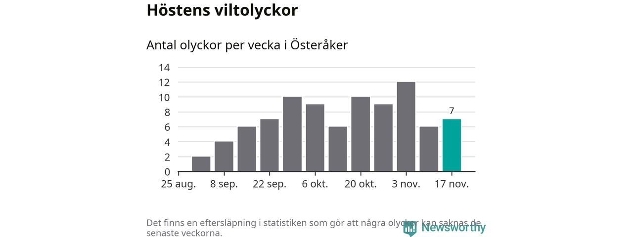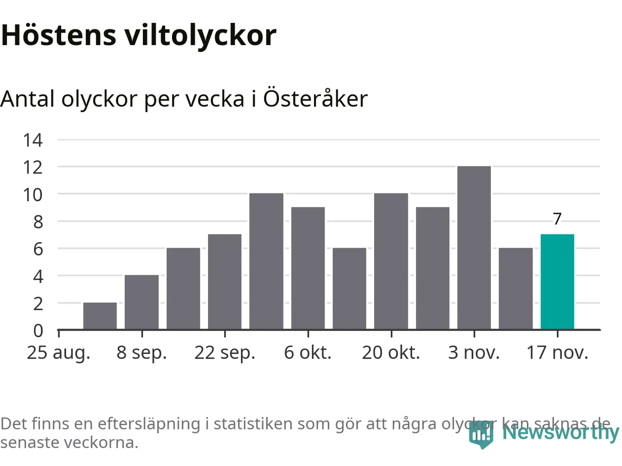 Hittills har sju viltolyckor rapporterats in i Österåkers kommun från vecka 47. Se listan här.