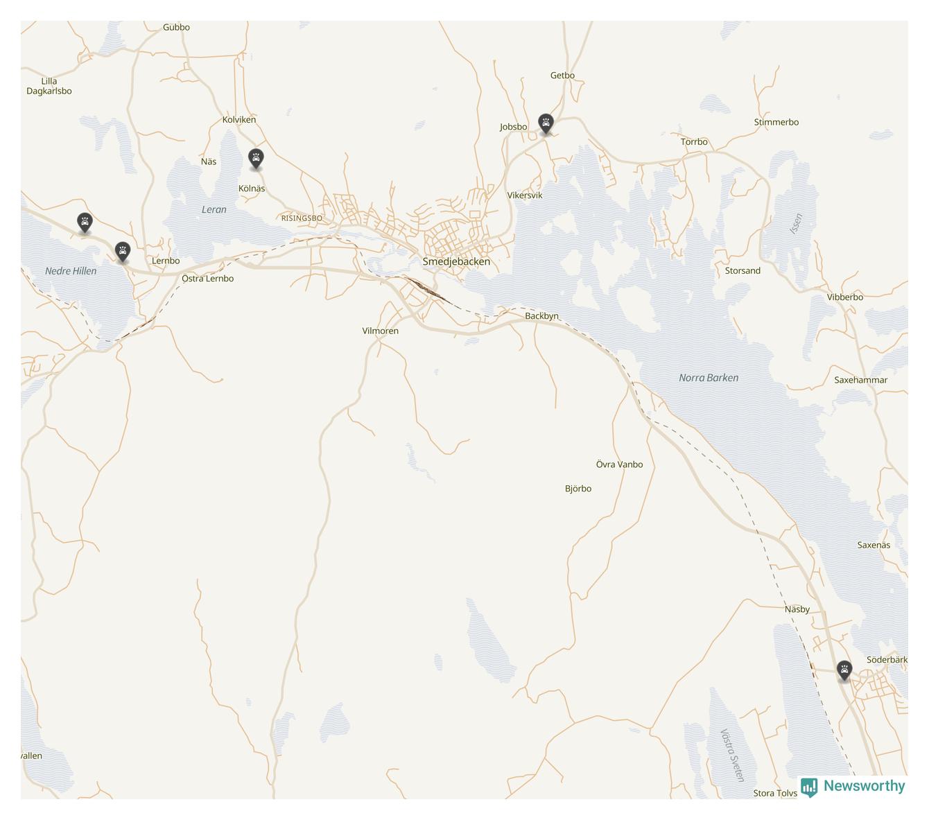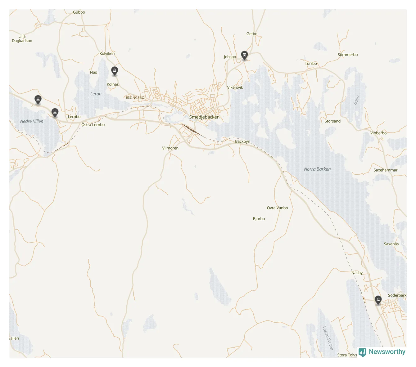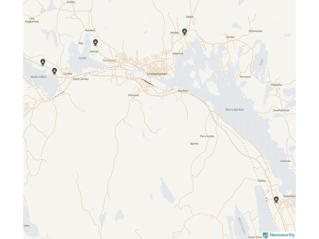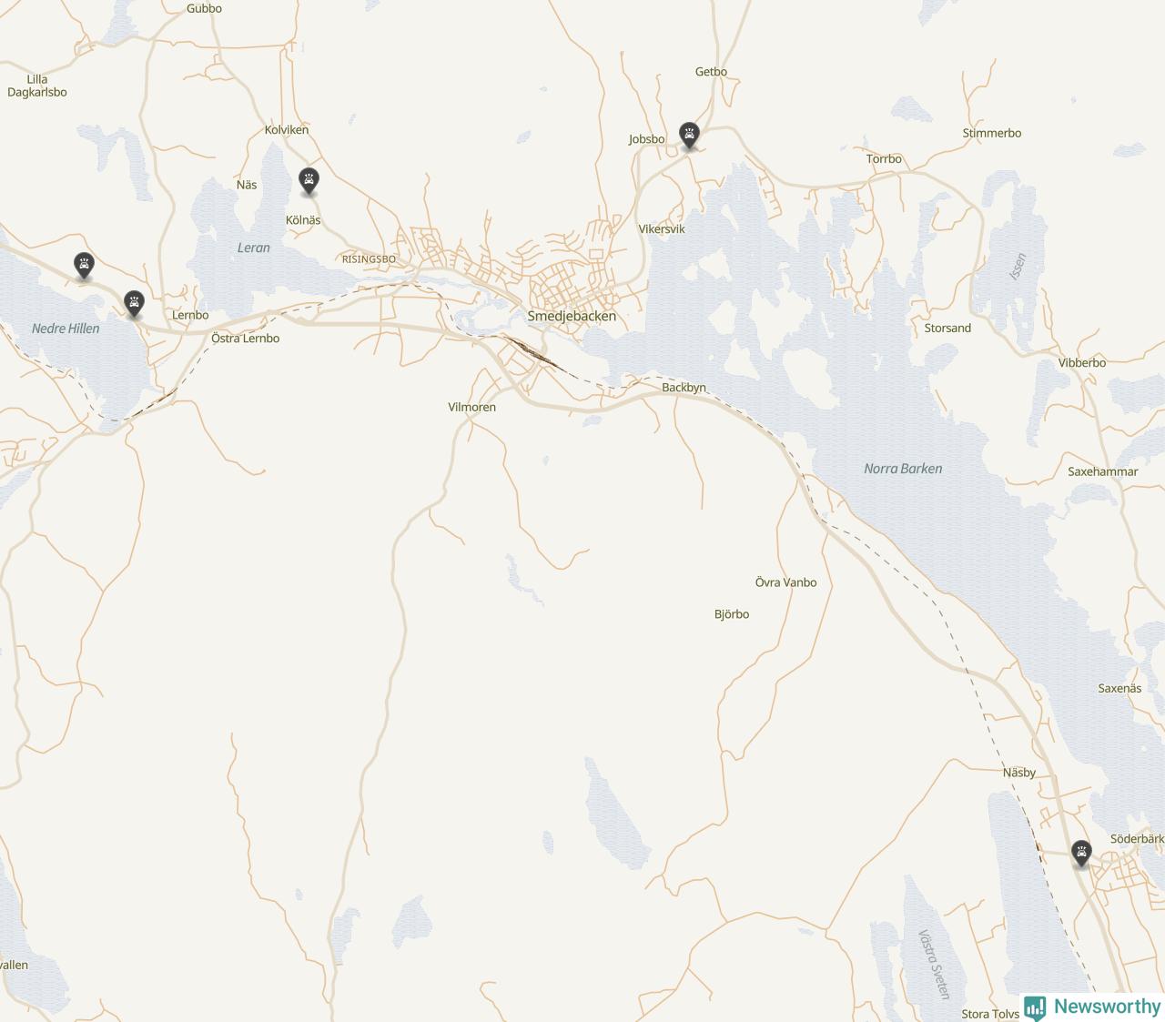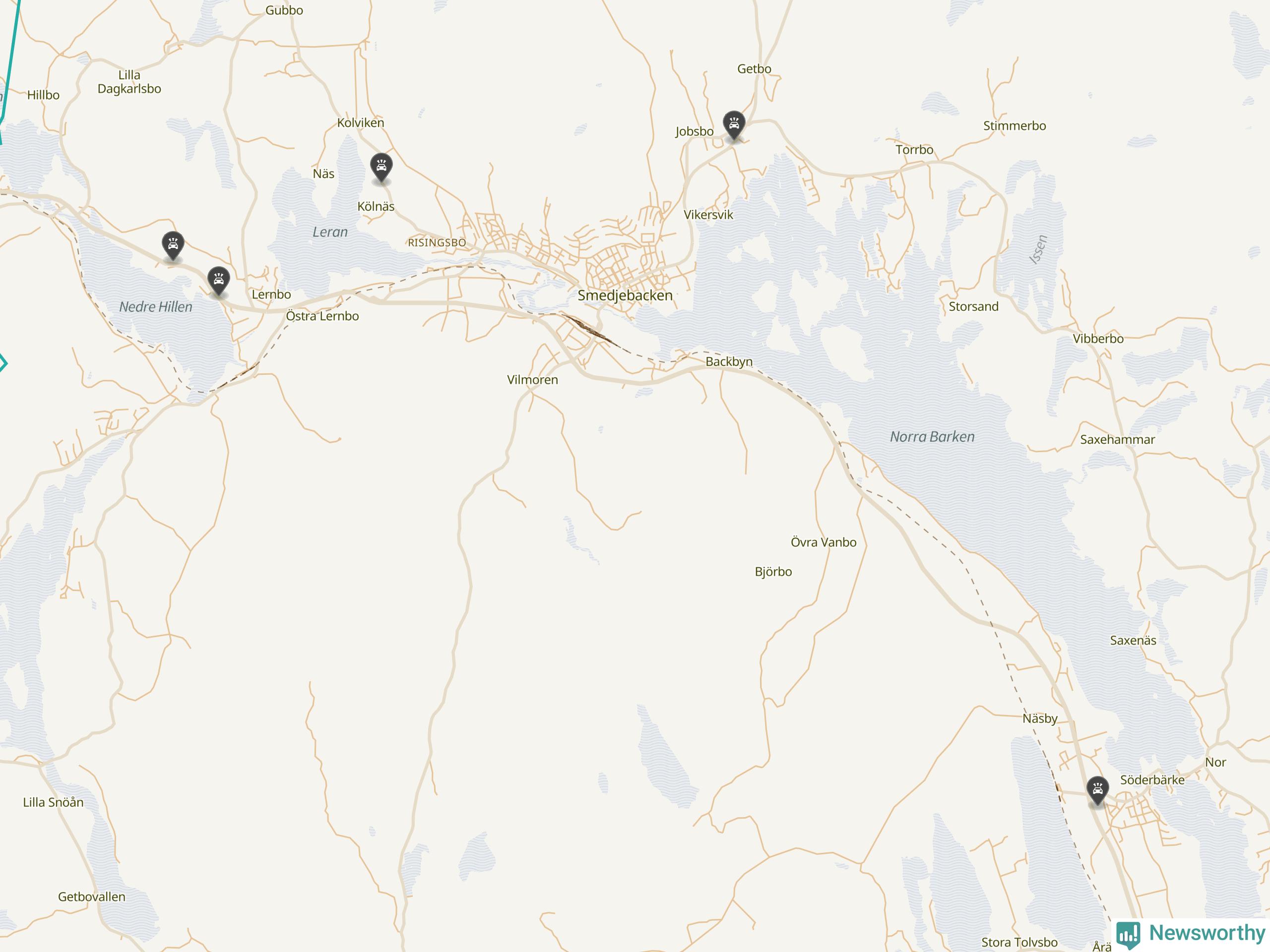 Karta: Förra veckans viltolyckor i Smedjebacken