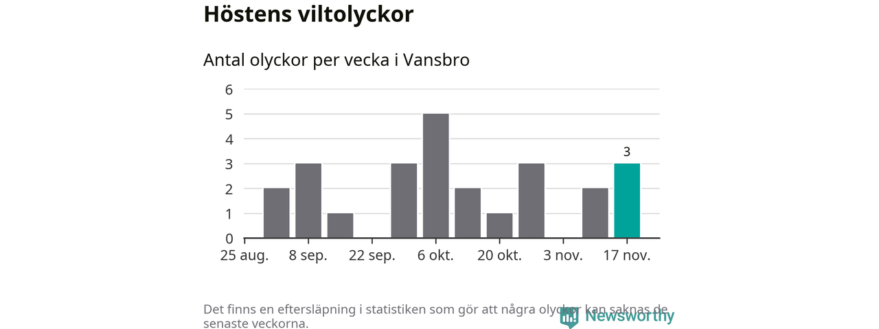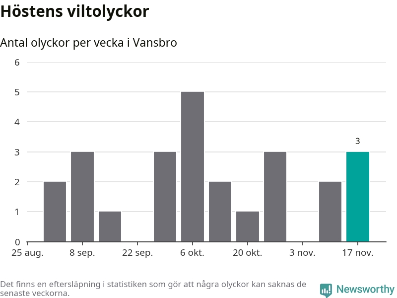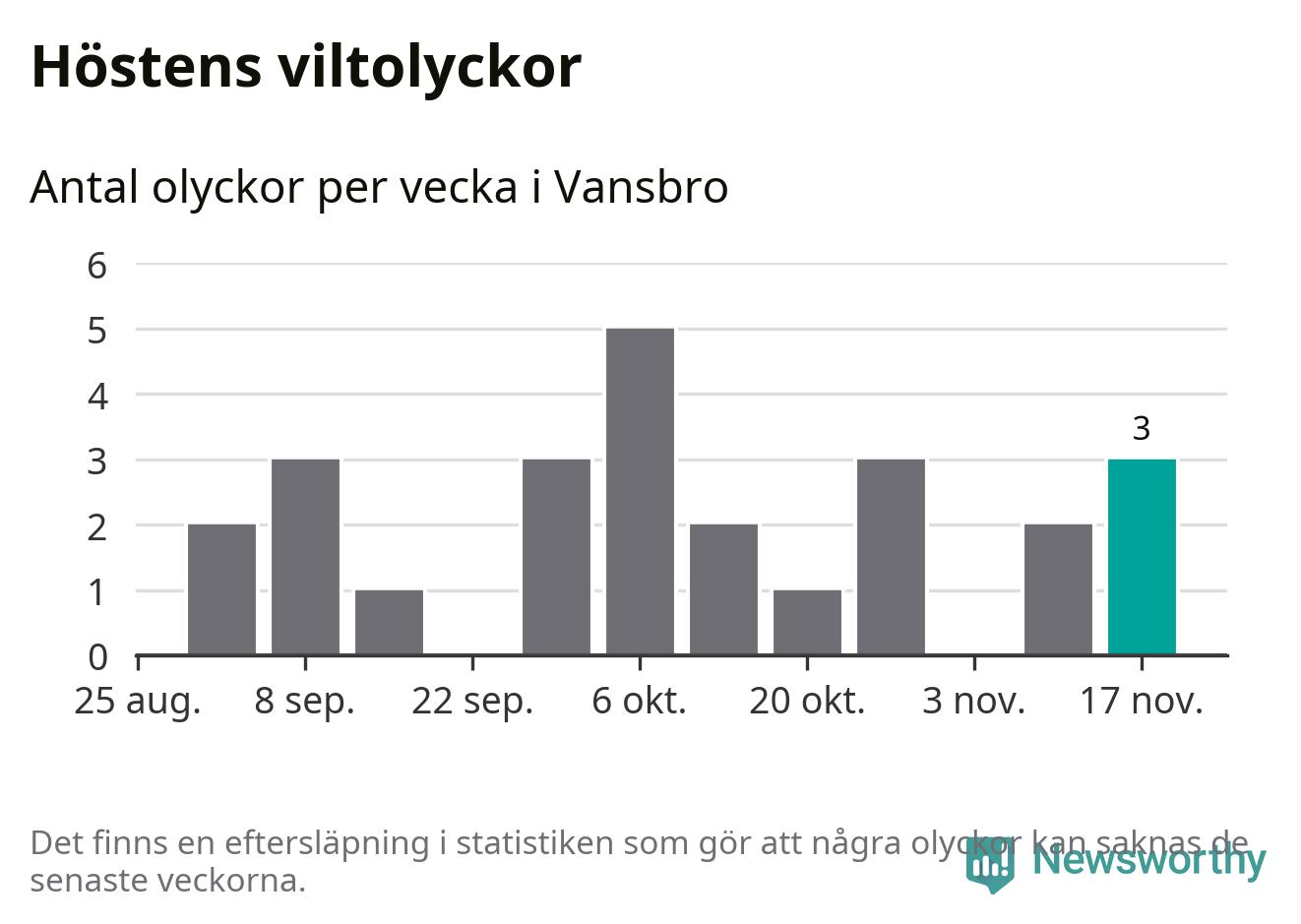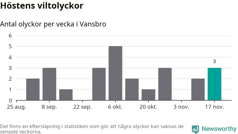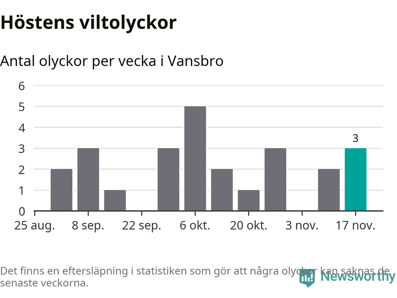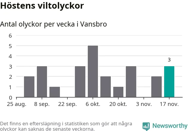 Hittills har tre viltolyckor rapporterats in i Vansbro kommun från vecka 47. Se listan här.