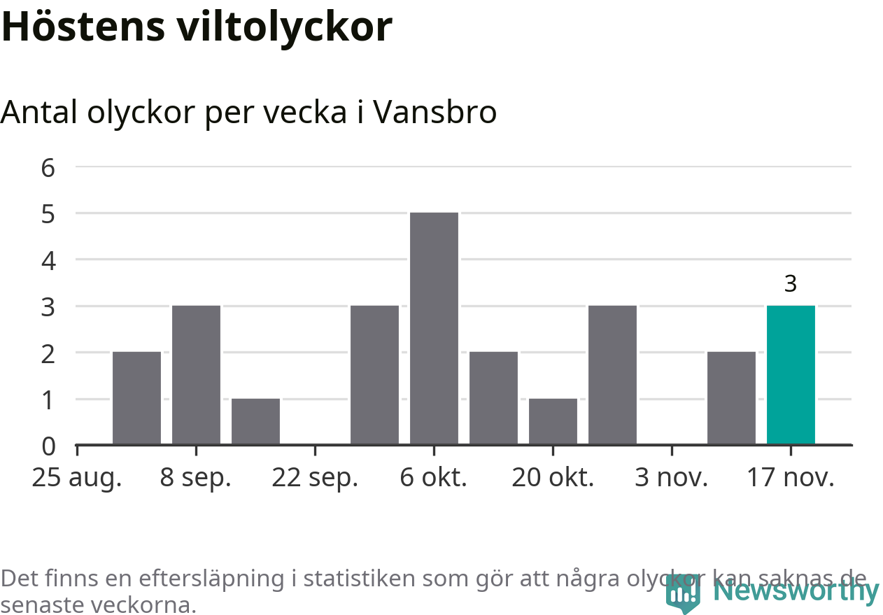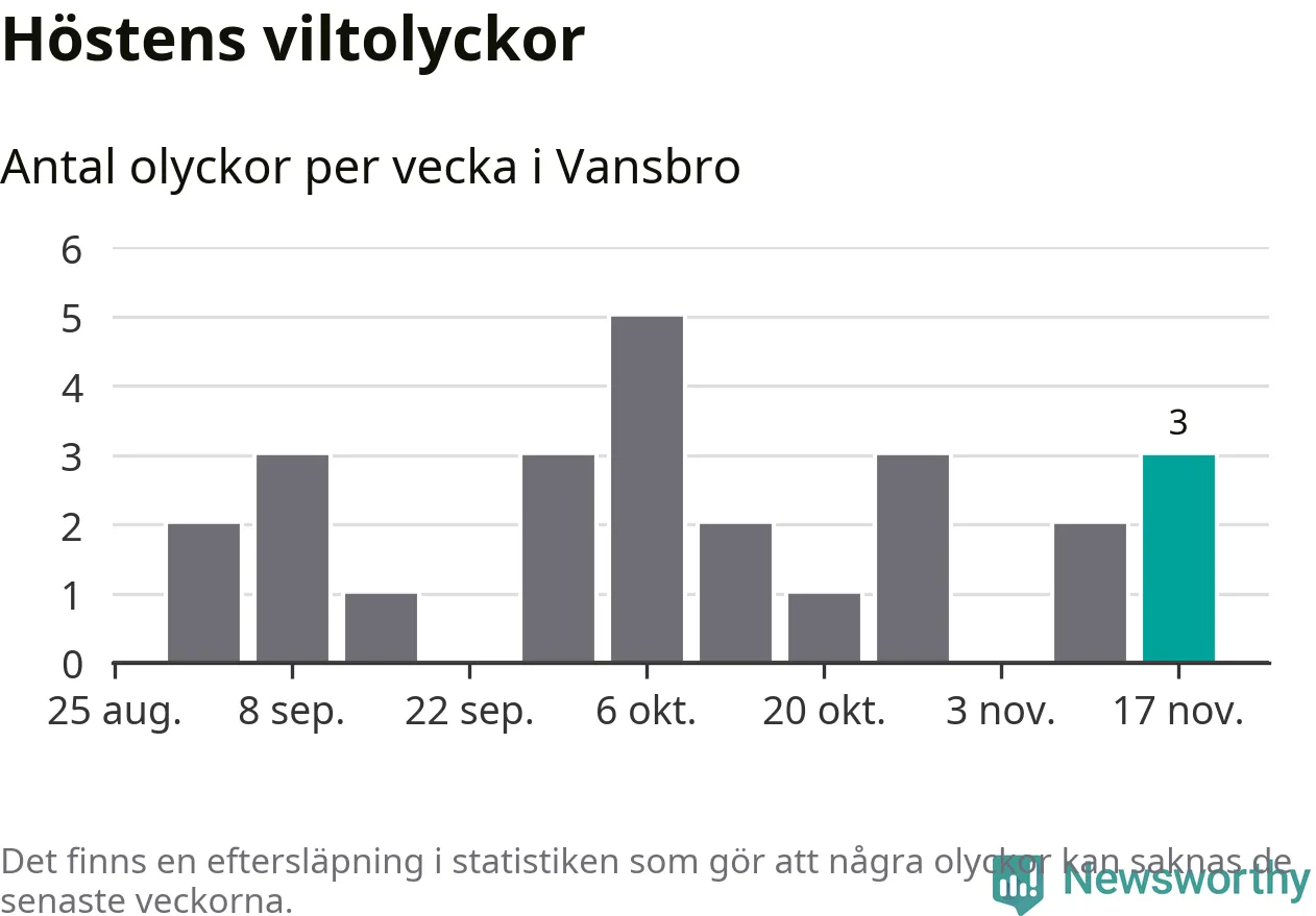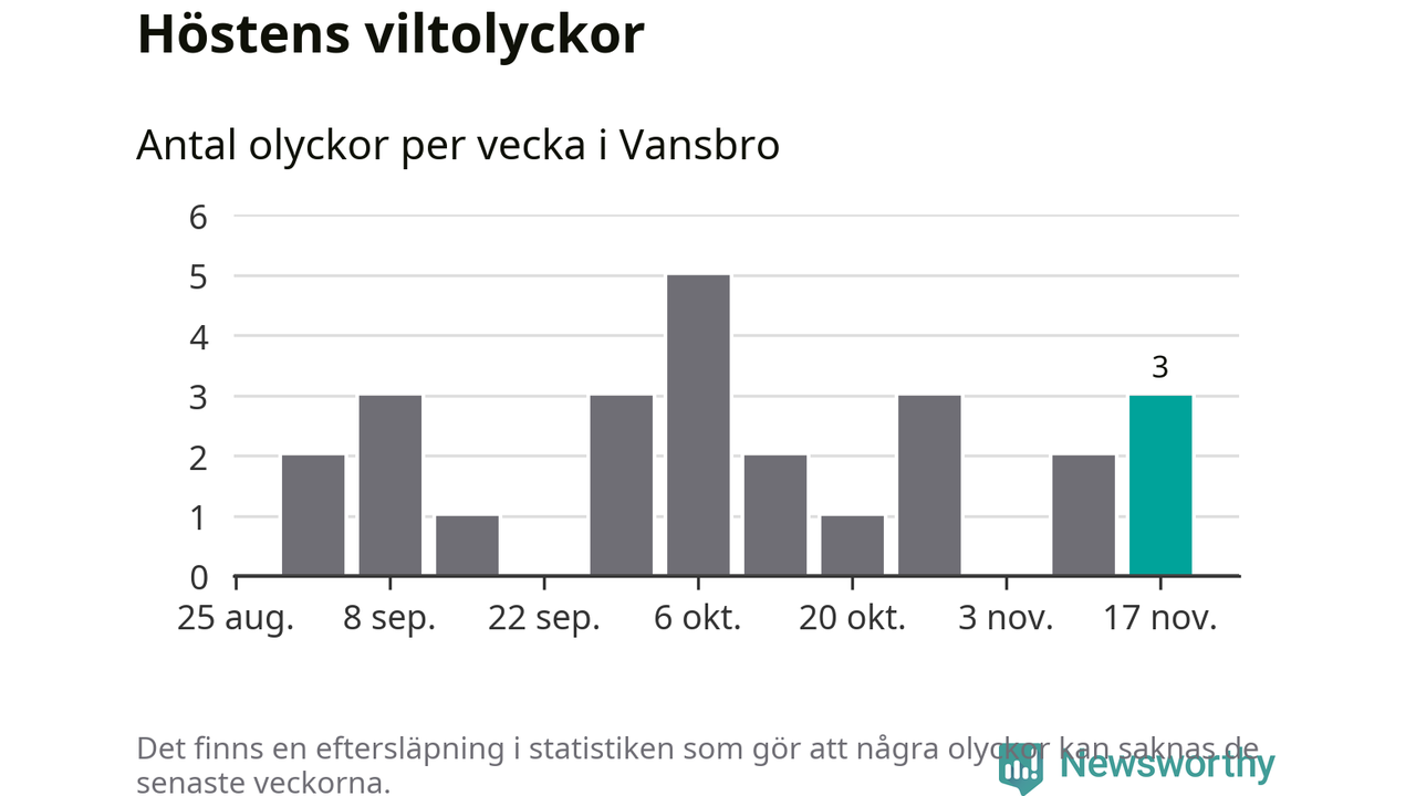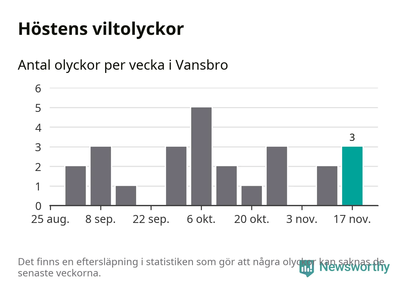 Hittills har tre viltolyckor rapporterats in i Vansbro kommun från vecka 47. Se listan här.