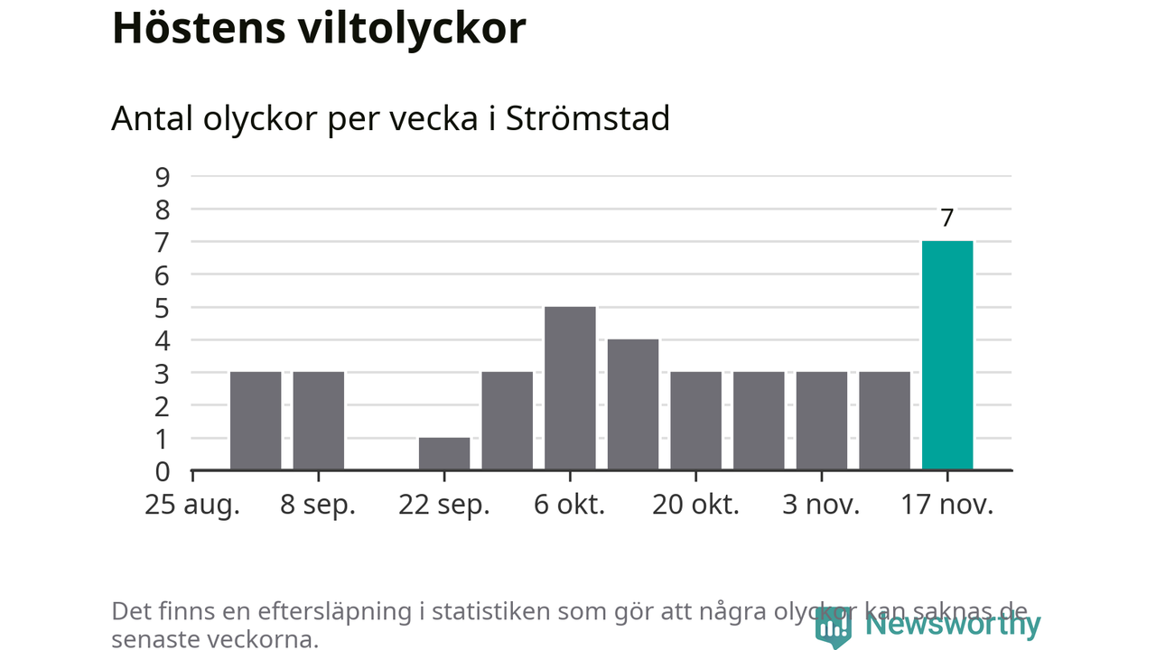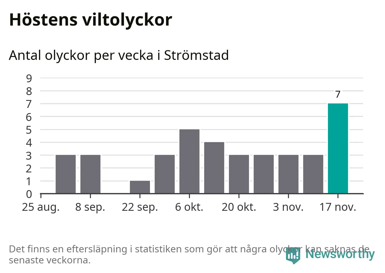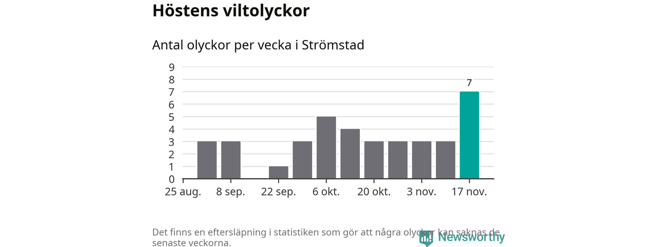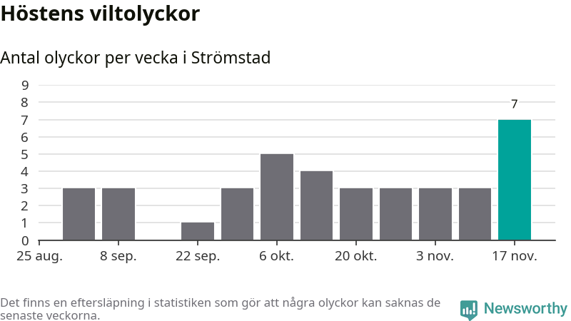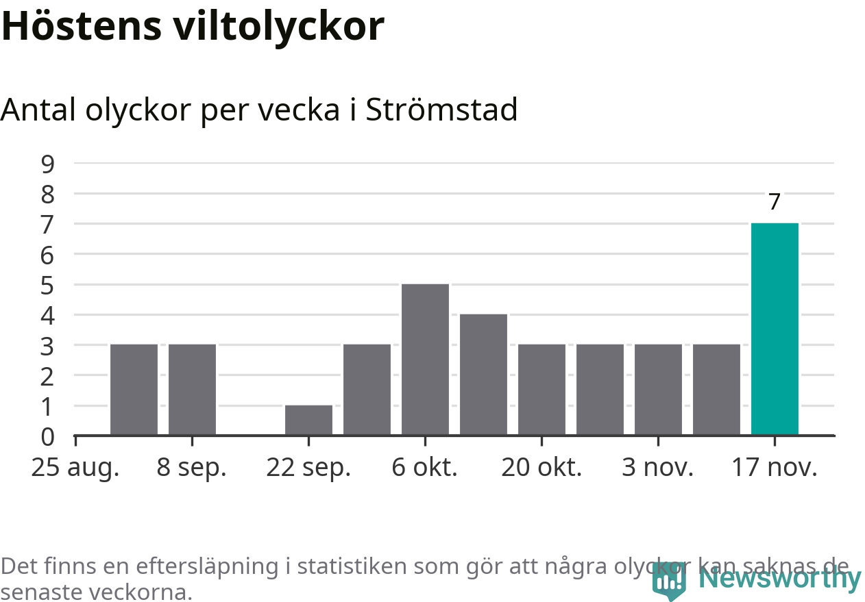 Under vecka 47 rapporterades sju viltolyckor in i Strömstads kommun. Det är det största antalet på en vecka den här hösten.