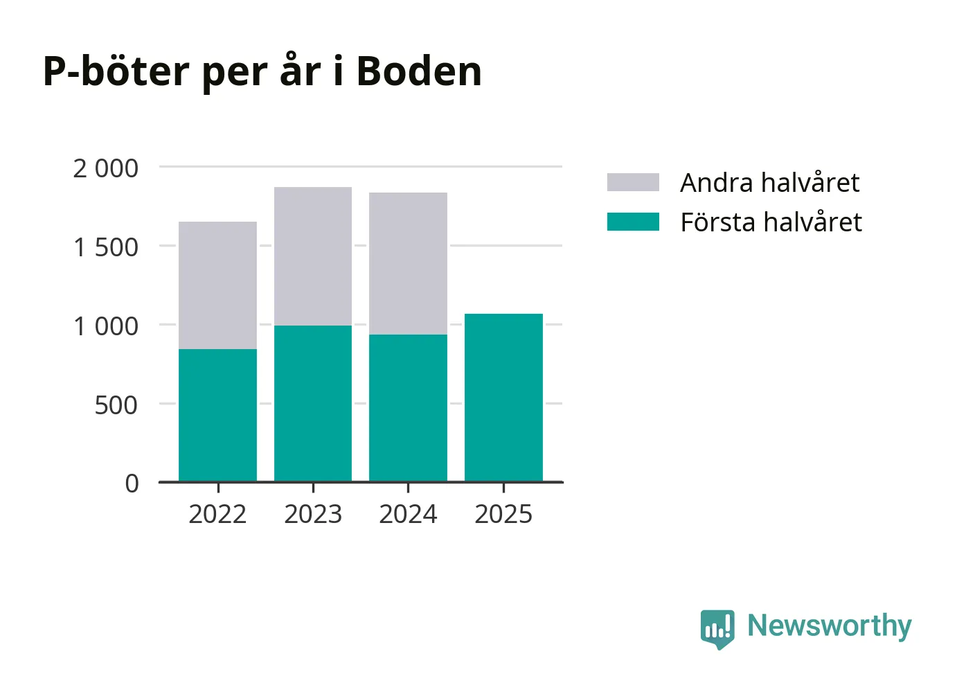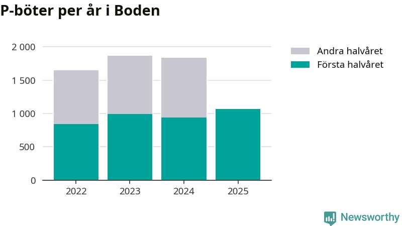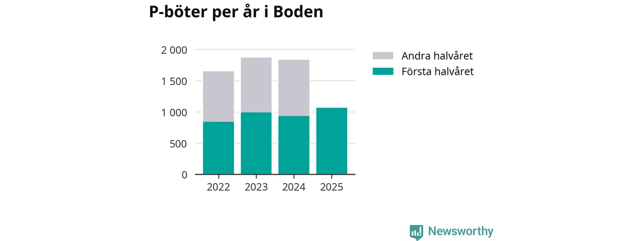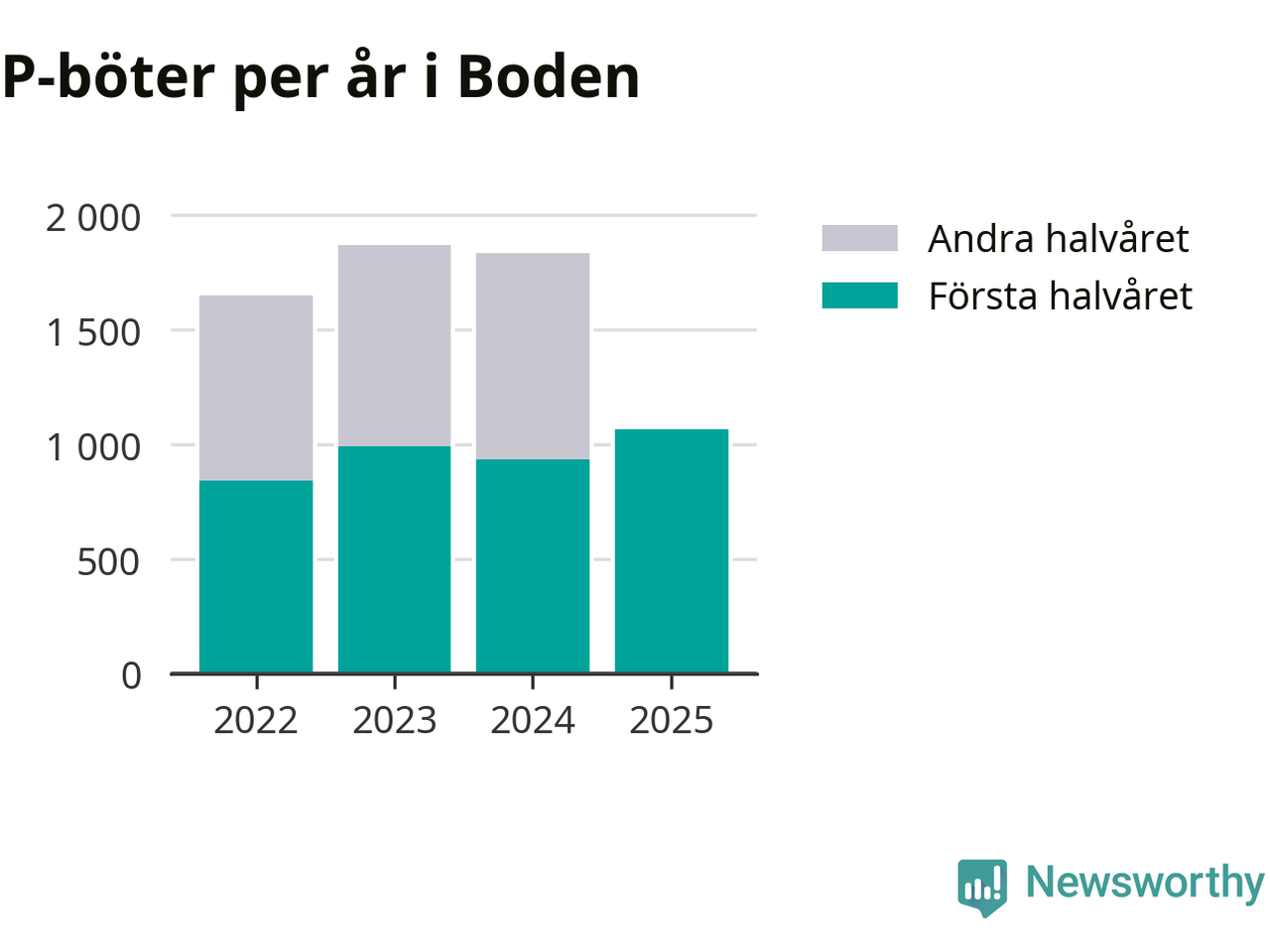 Under första halvåret 2025 har 1 065 parkeringsanmärkningar, med en total felparkeringsavgift på omkring 610 600 kronor, delats ut på gatumark i Bodens kommun. Det är 128 fler än under första halvåret 2024.