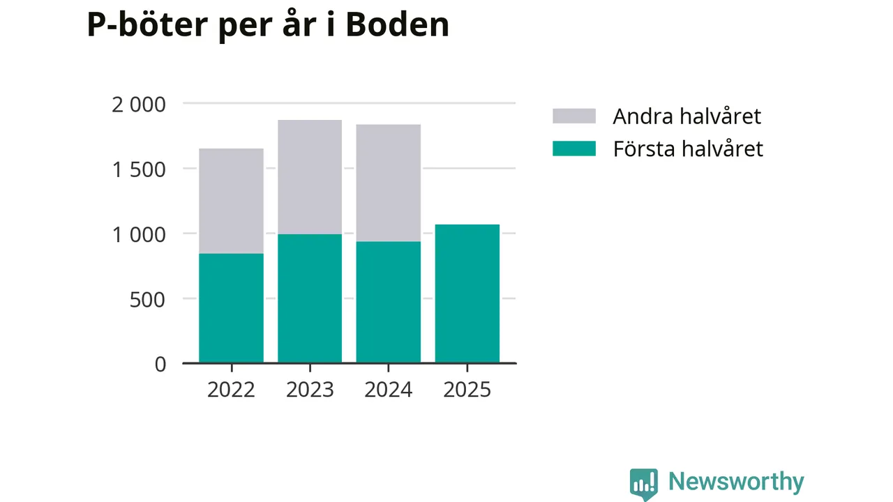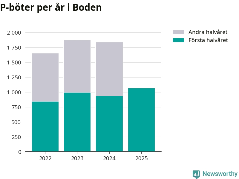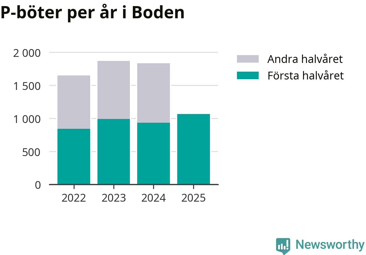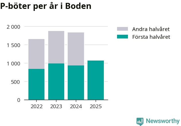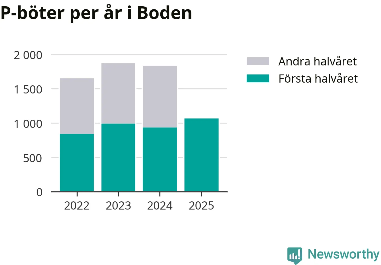 Under första halvåret 2025 har 1 065 parkeringsanmärkningar, med en total felparkeringsavgift på omkring 610 600 kronor, delats ut på gatumark i Bodens kommun. Det är 128 fler än under första halvåret 2024.