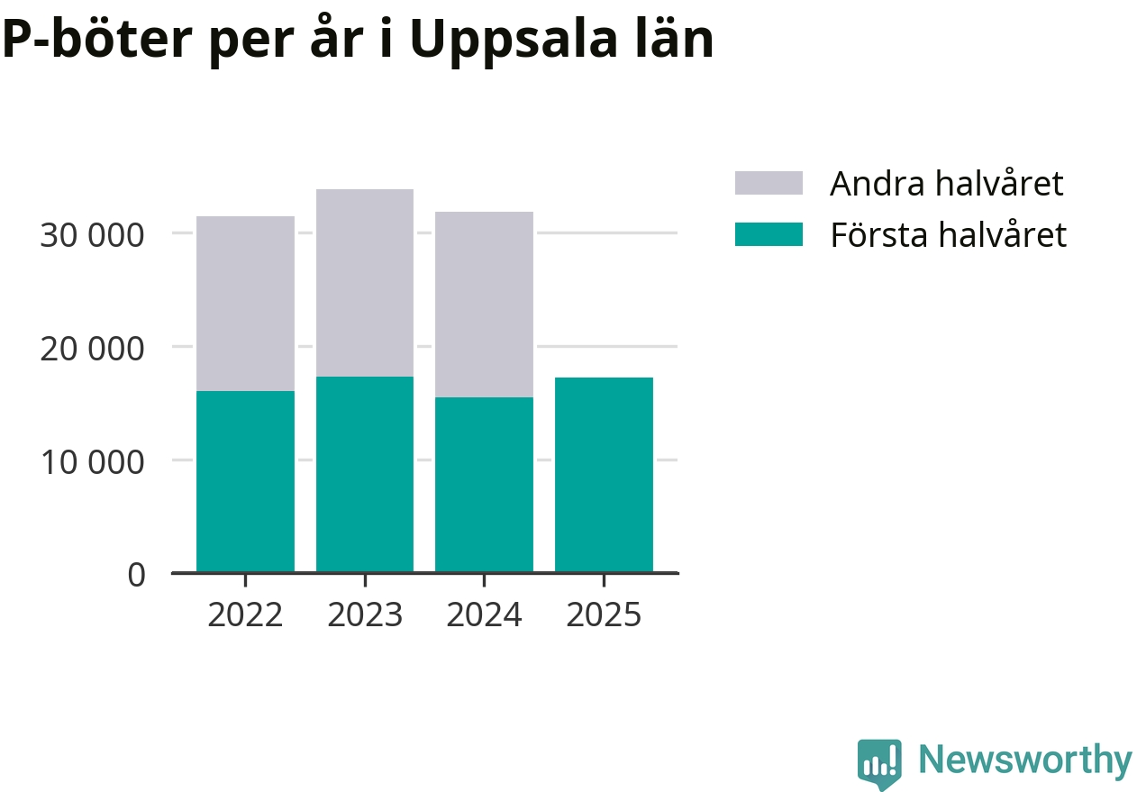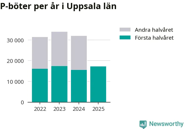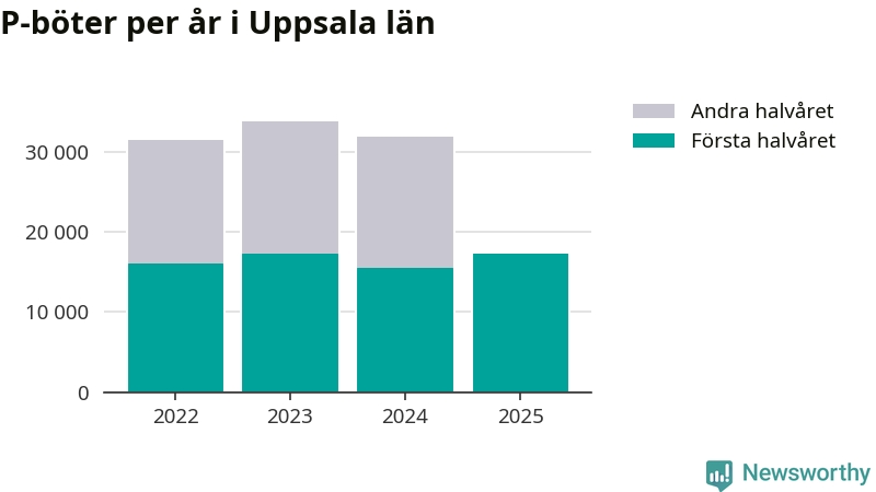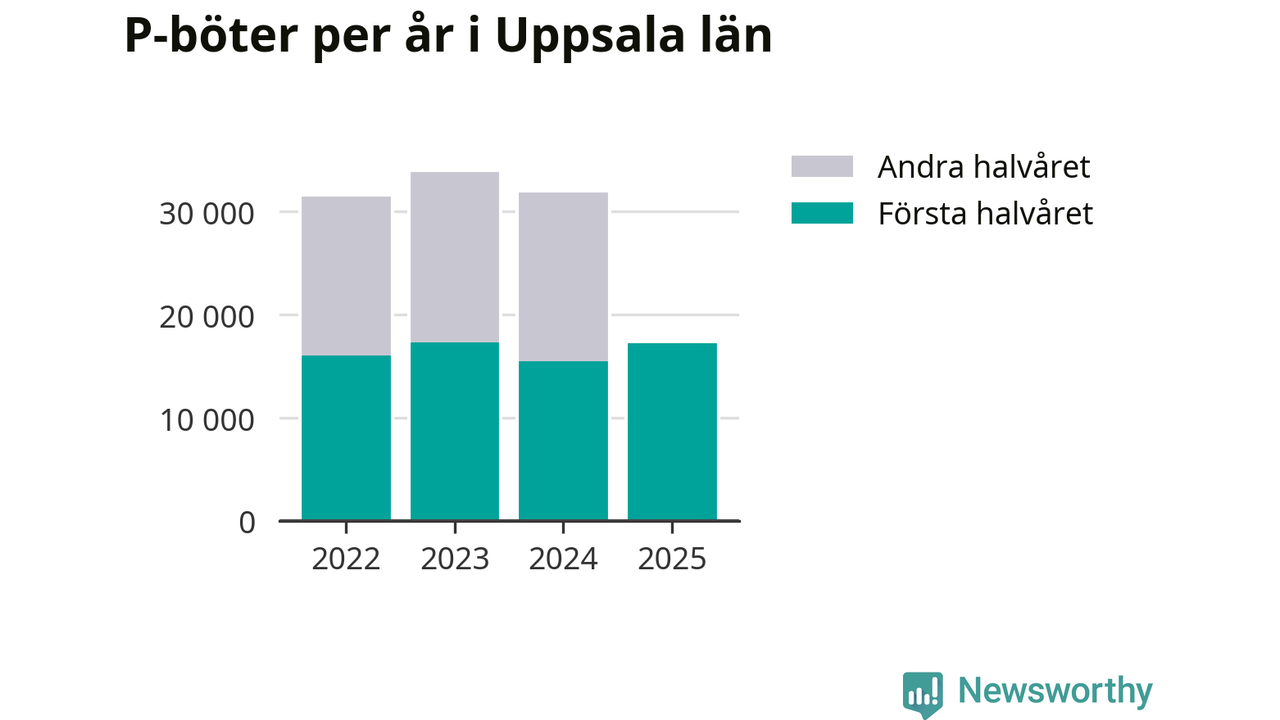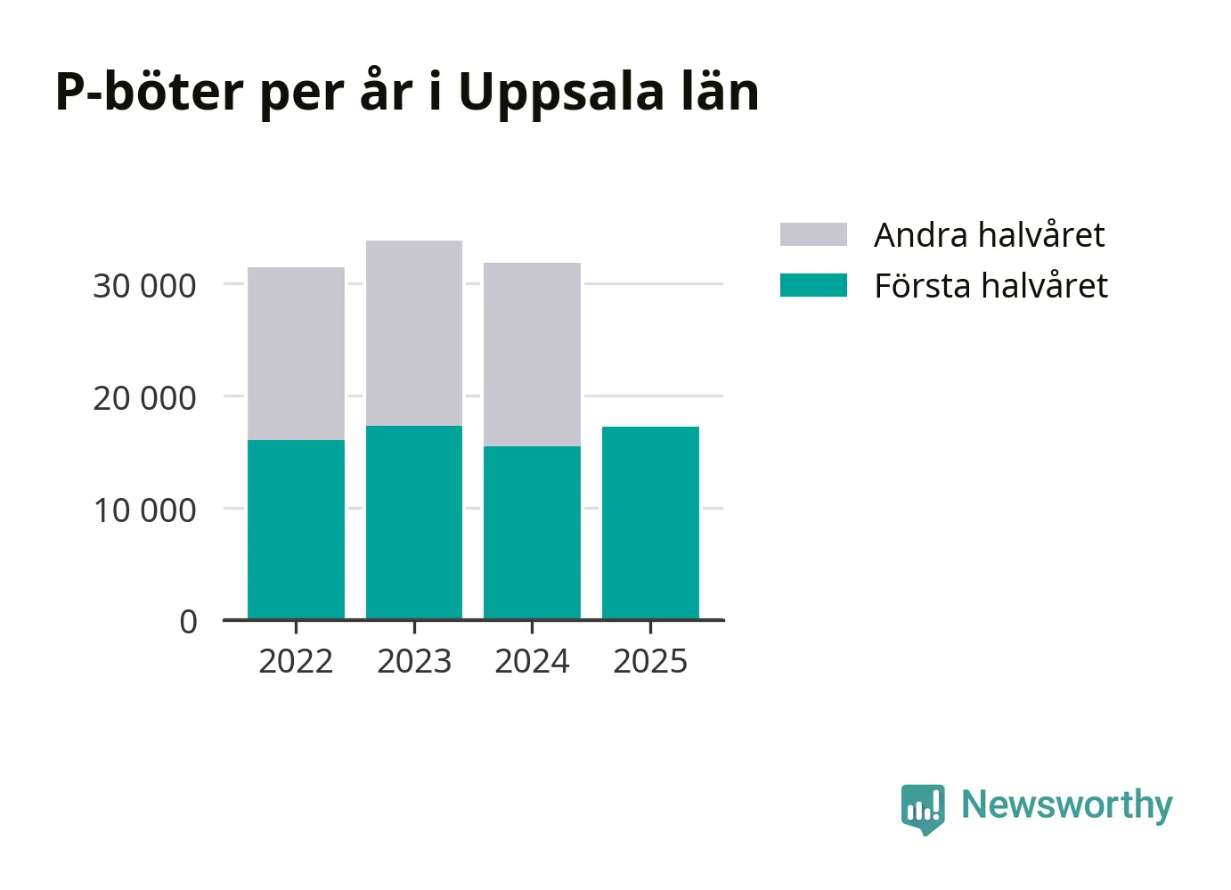 Totalt, från 1 januari 2022 till och med juni 2025, rör det sig om 114 472 parkeringsförsyndelser med ett totalt bötesbelopp på omkring 70,5 miljoner kronor i länet, visar Newsworthys genomgång av kommunernas parkeringsanmärkningar i Transportstyrelsens databas. Flest parkeringsanmärkningar i Uppsala län har delats ut i Uppsala kommun under de senaste tre och ett halvt åren.