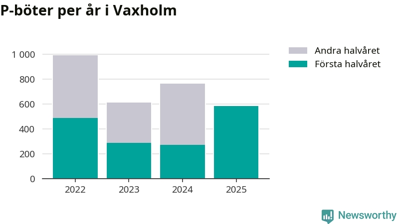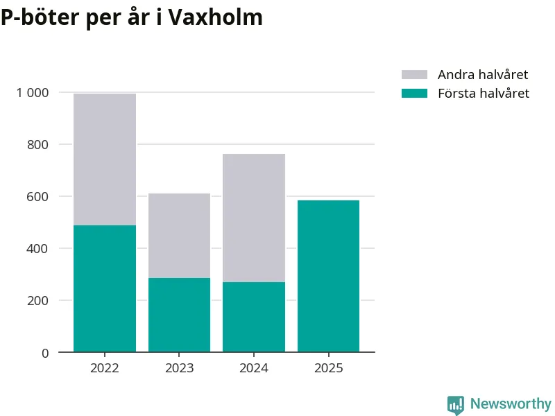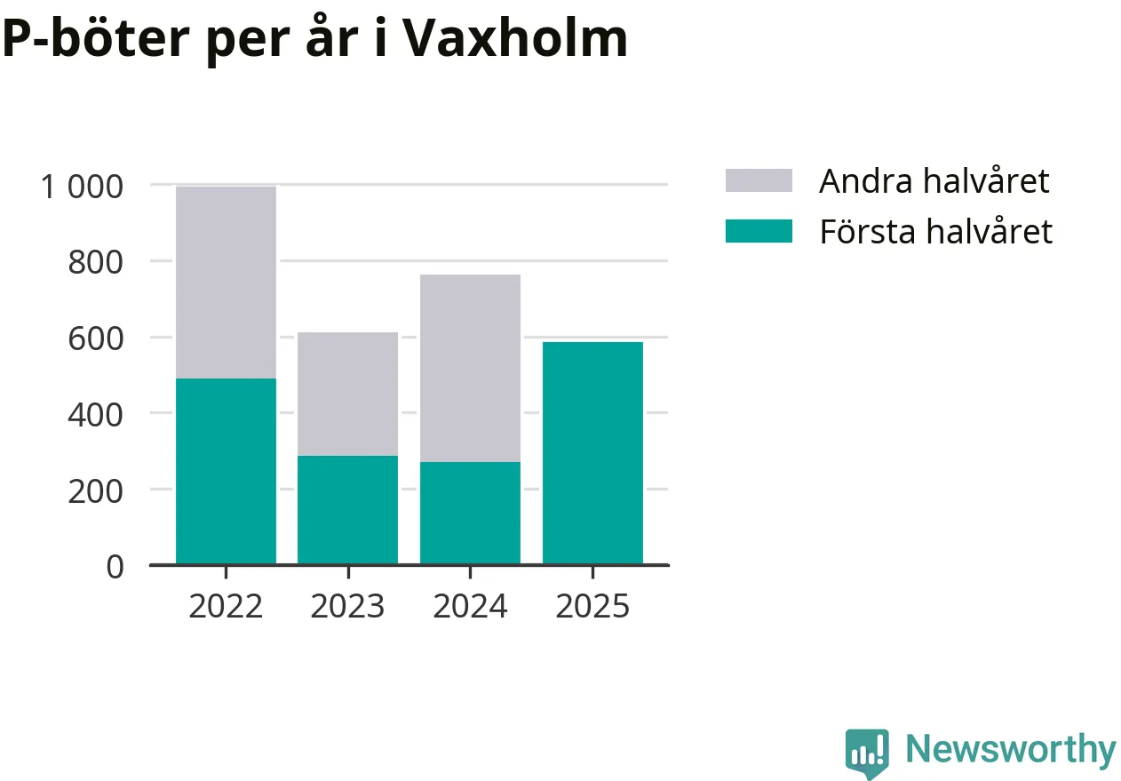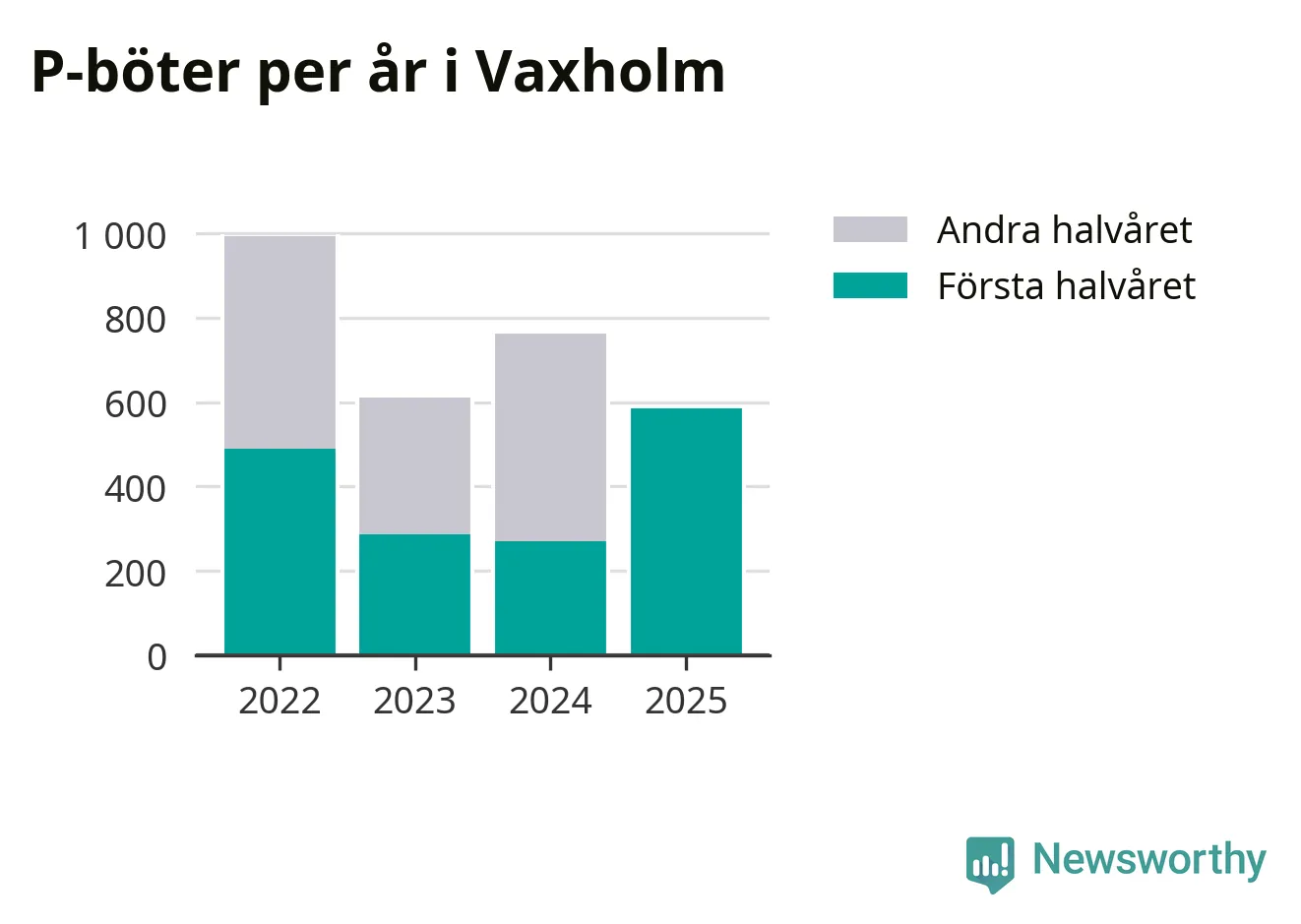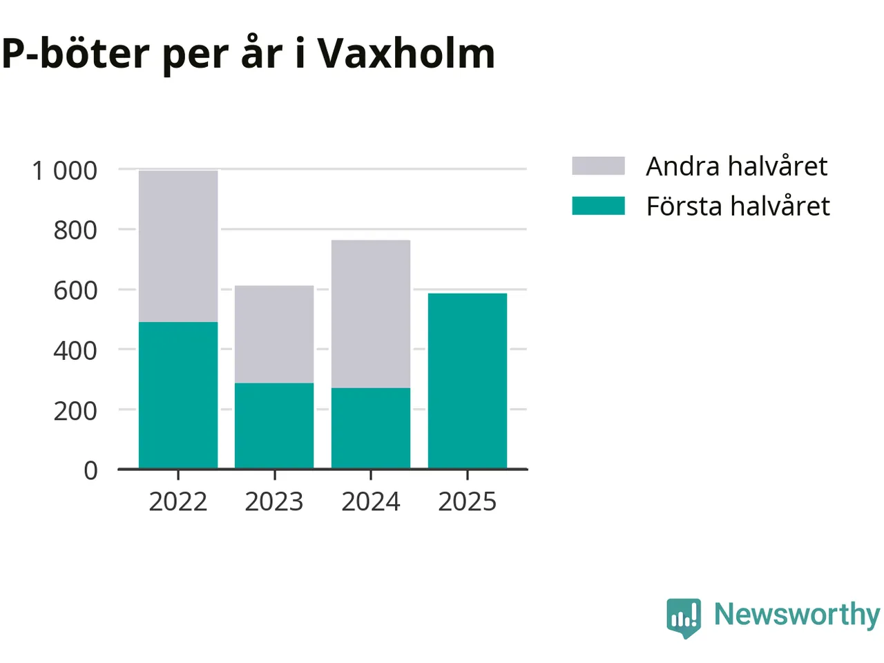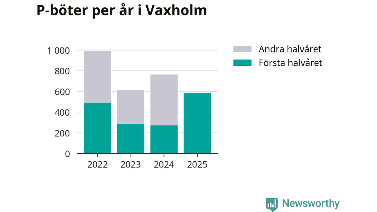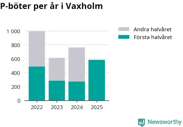 Under första halvåret 2025 har 585 parkeringsanmärkningar, med en total felparkeringsavgift på 480 400 kronor, delats ut på gatumark i Vaxholms kommun. Det är mer än dubbelt så många som under första halvåret 2024, då 271 böter utfärdades.