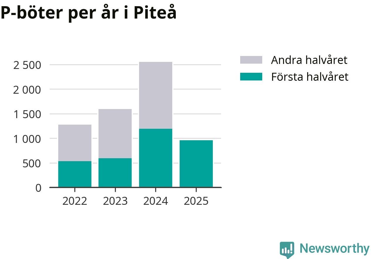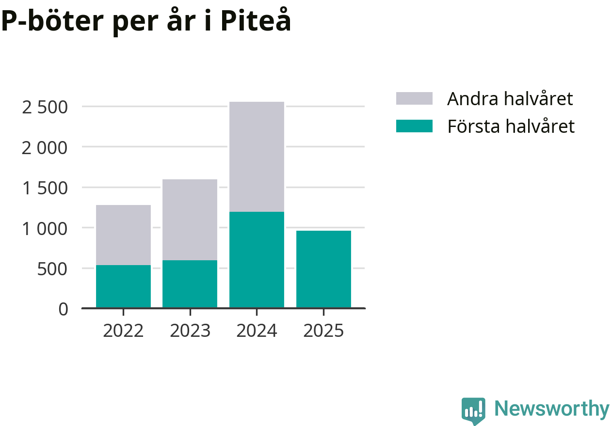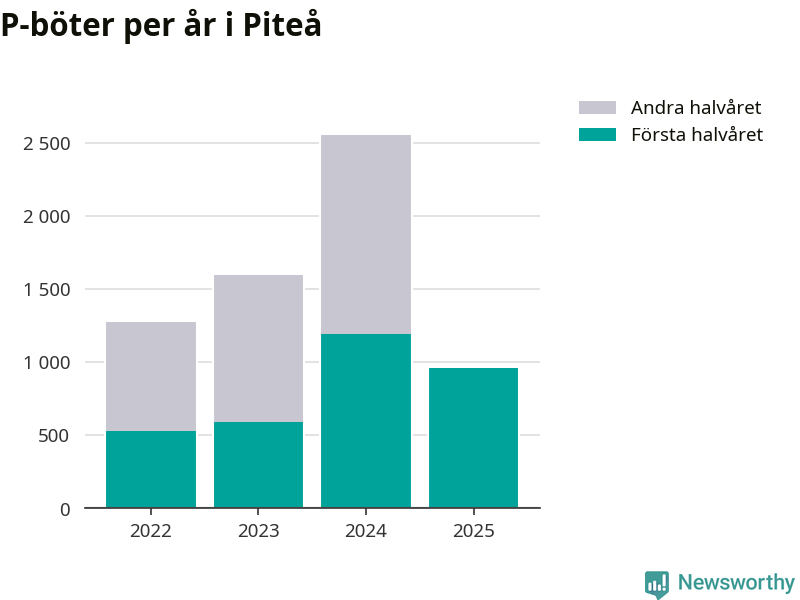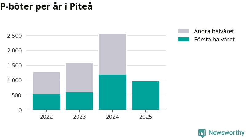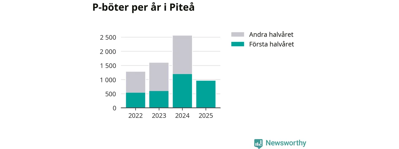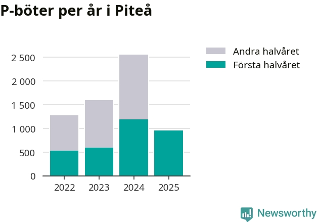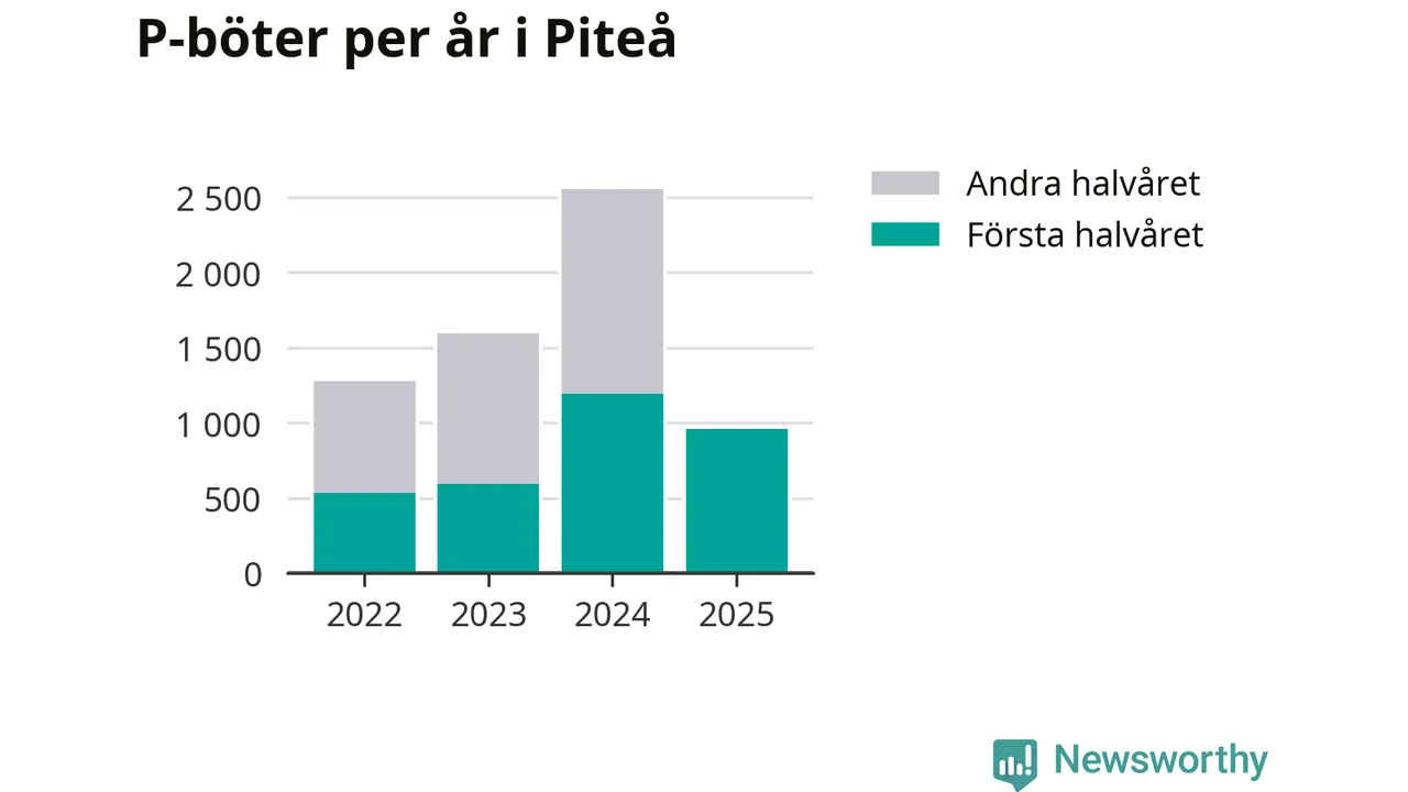 Under första halvåret 2025 har 959 parkeringsanmärkningar, med en total felparkeringsavgift på 579 400 kronor, delats ut på gatumark i Piteå kommun. Det är 233 färre än under första halvåret 2024.