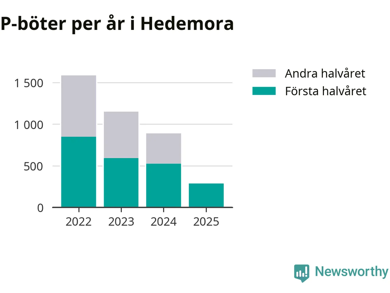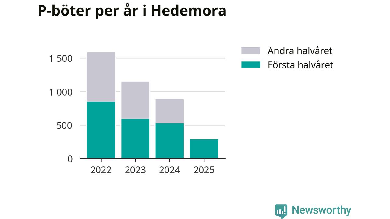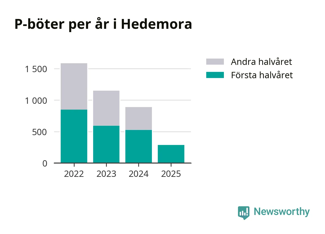 Under första halvåret 2025 har 287 parkeringsanmärkningar, med en total felparkeringsavgift på 93 900 kronor, delats ut på gatumark i Hedemora kommun. Det är 236 färre än under första halvåret 2024.