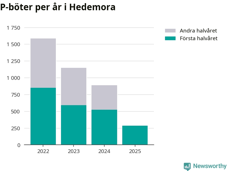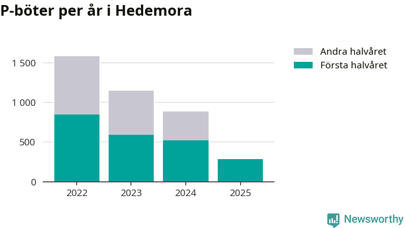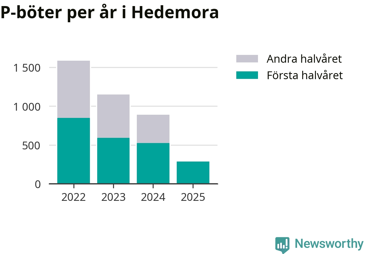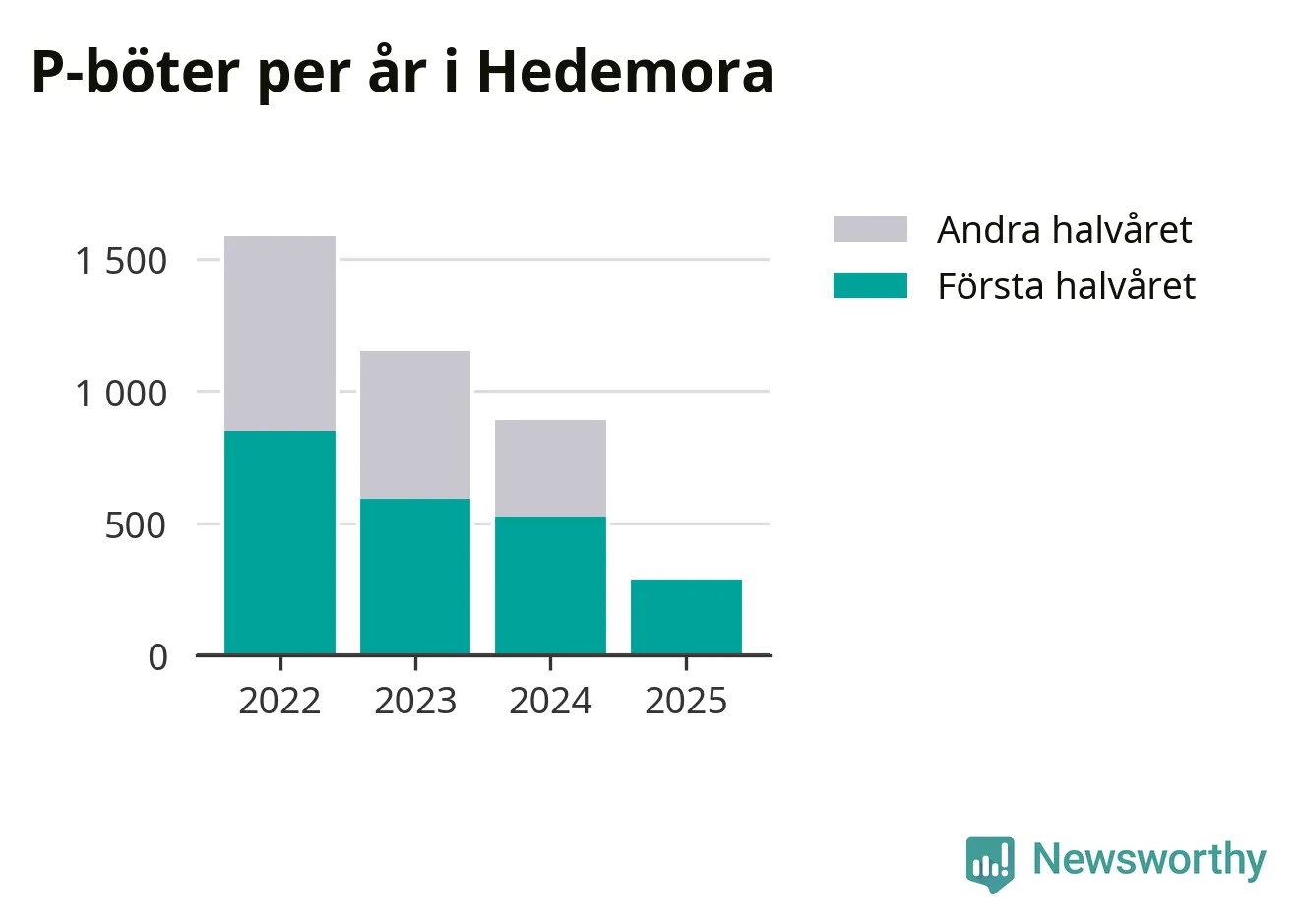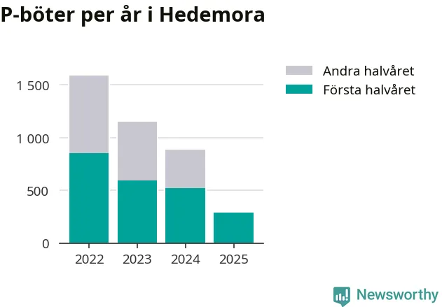 Under första halvåret 2025 har 287 parkeringsanmärkningar, med en total felparkeringsavgift på 93 900 kronor, delats ut på gatumark i Hedemora kommun. Det är 236 färre än under första halvåret 2024.