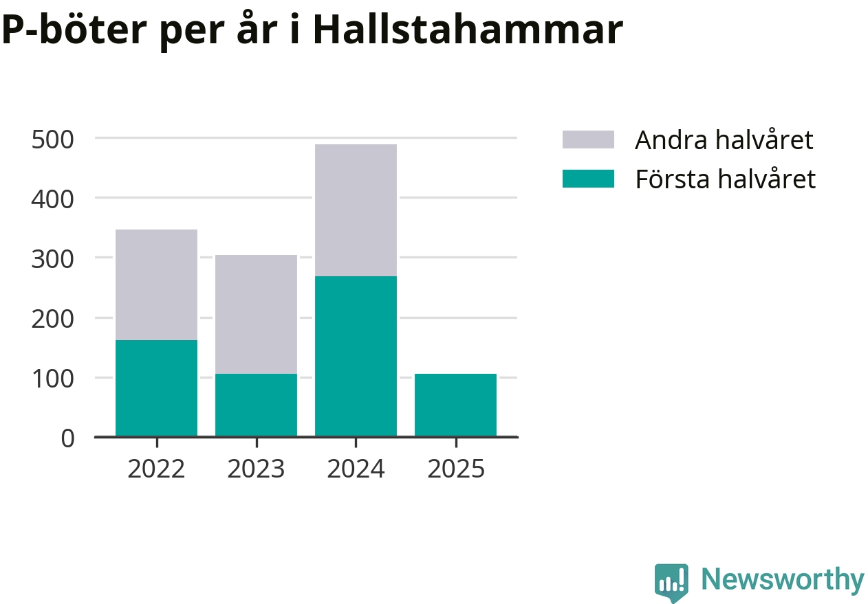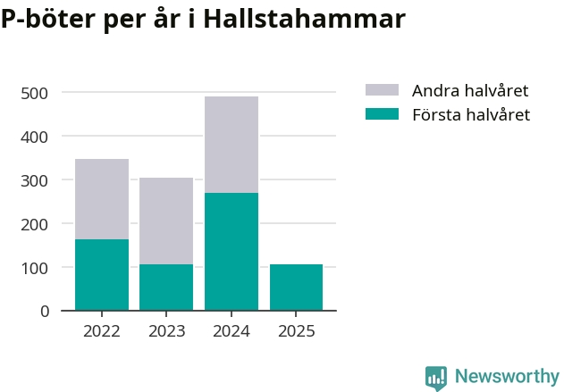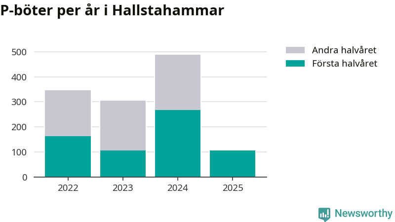 Under första halvåret 2025 har 106 parkeringsanmärkningar, med en total felparkeringsavgift på 57 200 kronor, delats ut på gatumark i Hallstahammars kommun. Det är mindre än hälften så många som under första halvåret i fjol, då 268 böter utfärdades.