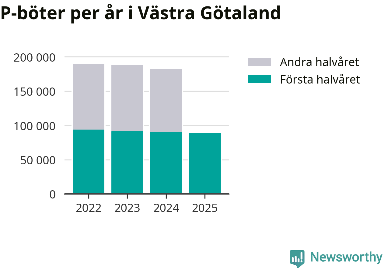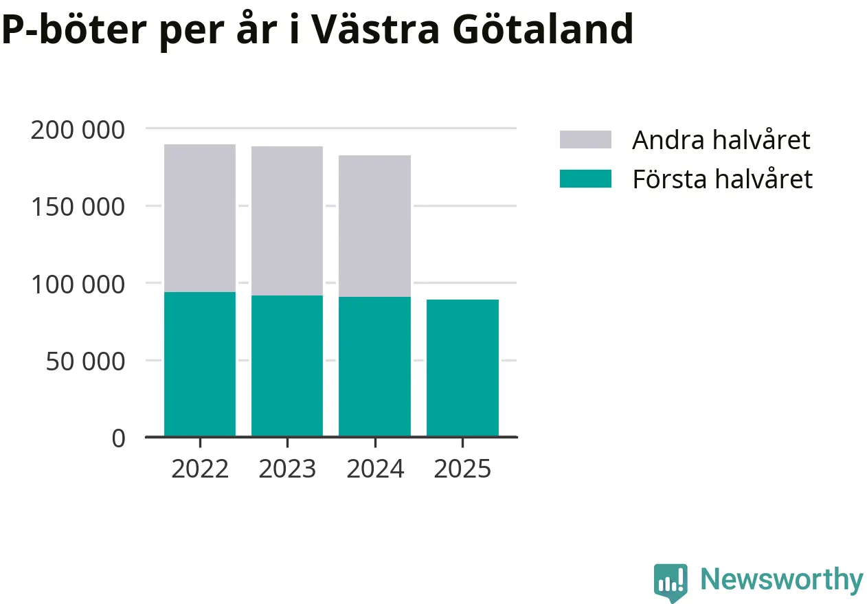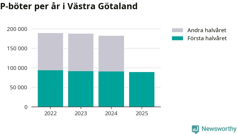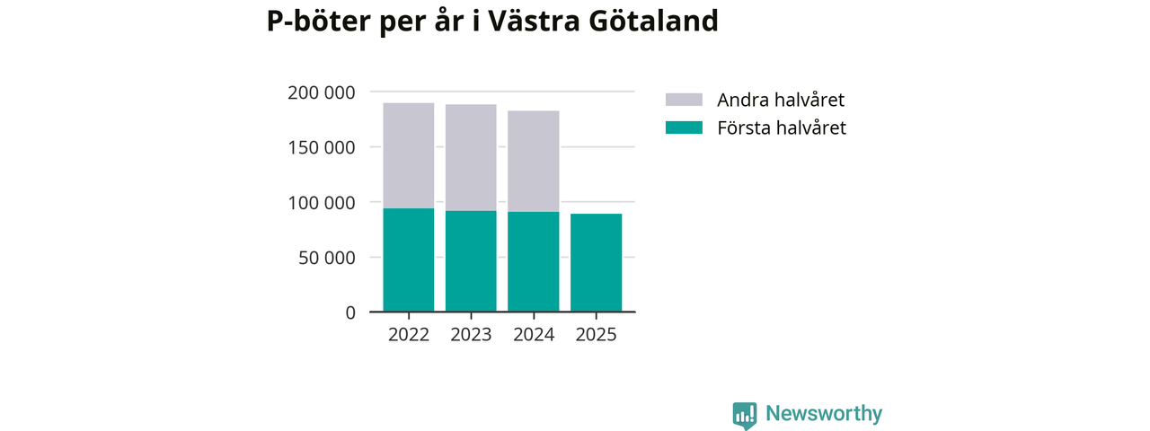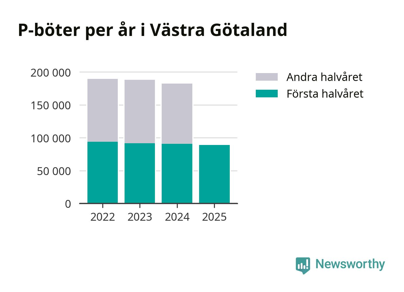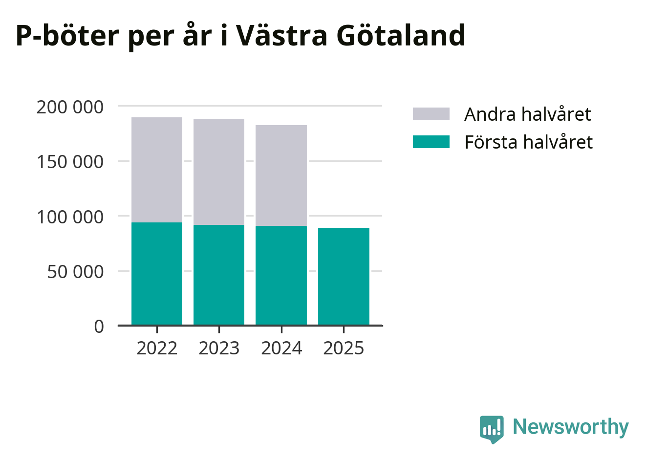 Totalt, från 1 januari 2022 till och med juni 2025, rör det sig om 649 478 parkeringsförsyndelser med ett totalt bötesbelopp på omkring 428,3 miljoner kronor i länet, visar Newsworthys genomgång av kommunernas parkeringsanmärkningar i Transportstyrelsens databas. Flest parkeringsanmärkningar i Västra Götaland har delats ut i Göteborg under de senaste tre och ett halvt åren.