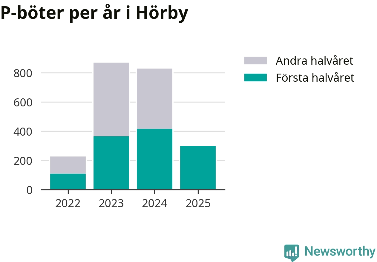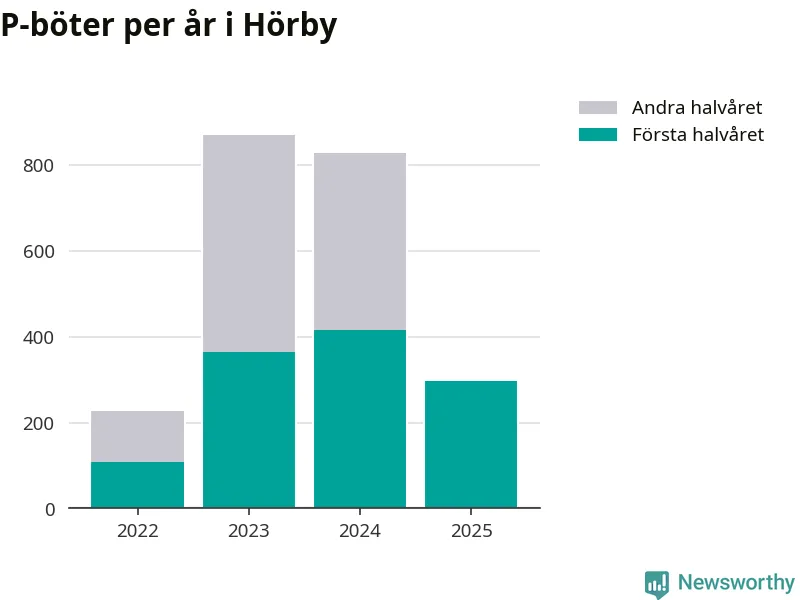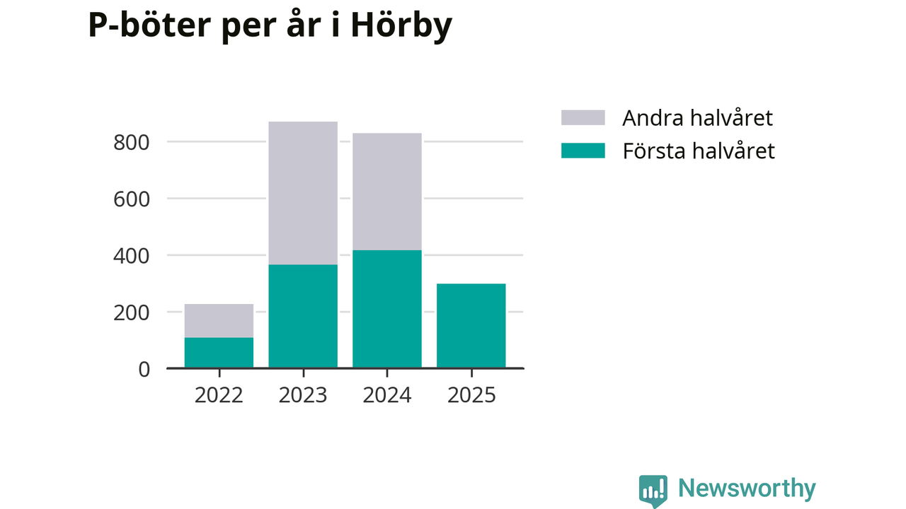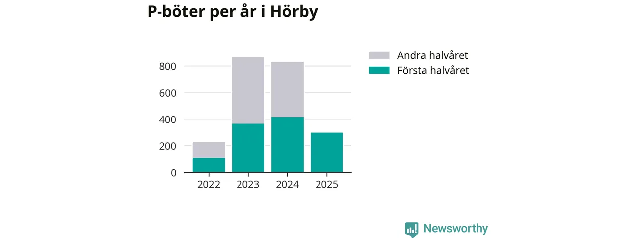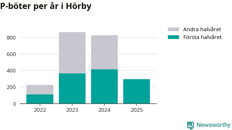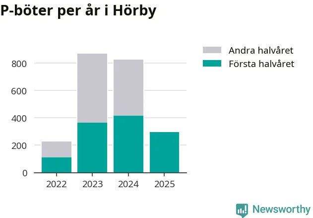 Under första halvåret 2025 har 297 parkeringsanmärkningar, med en total felparkeringsavgift på 171 900 kronor, delats ut på gatumark i Hörby kommun. Det är 118 färre än under första halvåret 2024.