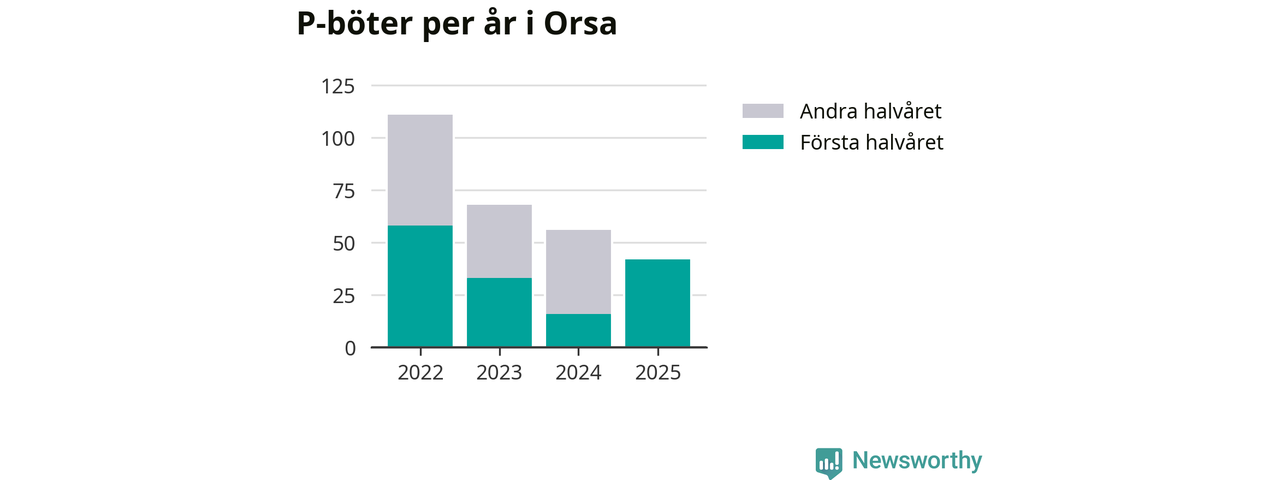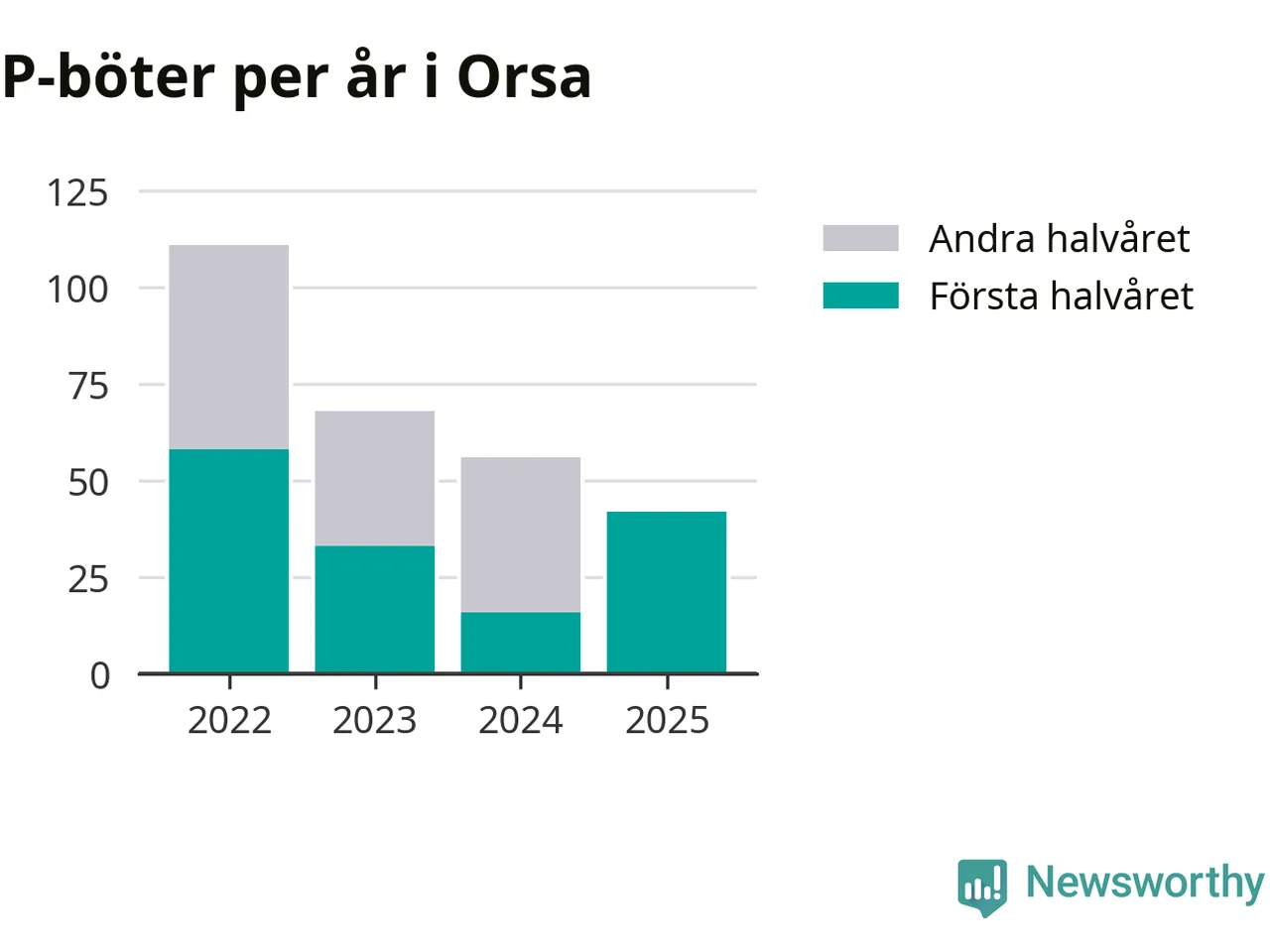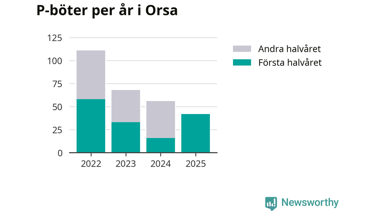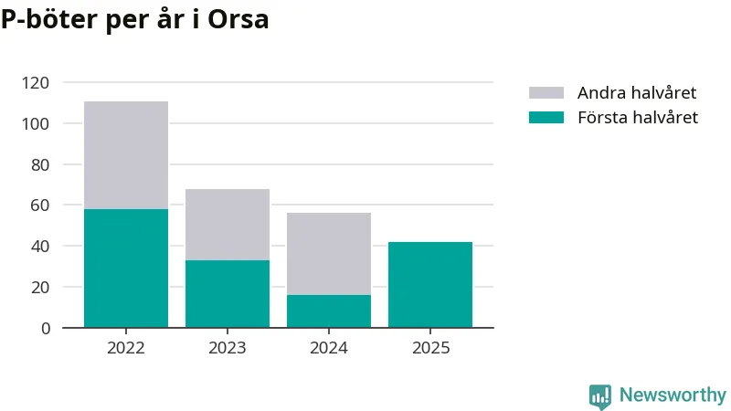 Under första halvåret 2025 har 42 parkeringsanmärkningar, med en total felparkeringsavgift på 18 000 kronor, delats ut på gatumark i Orsa kommun. Det är nästan tre gånger så många som under första halvåret 2024, då 16 böter utfärdades.