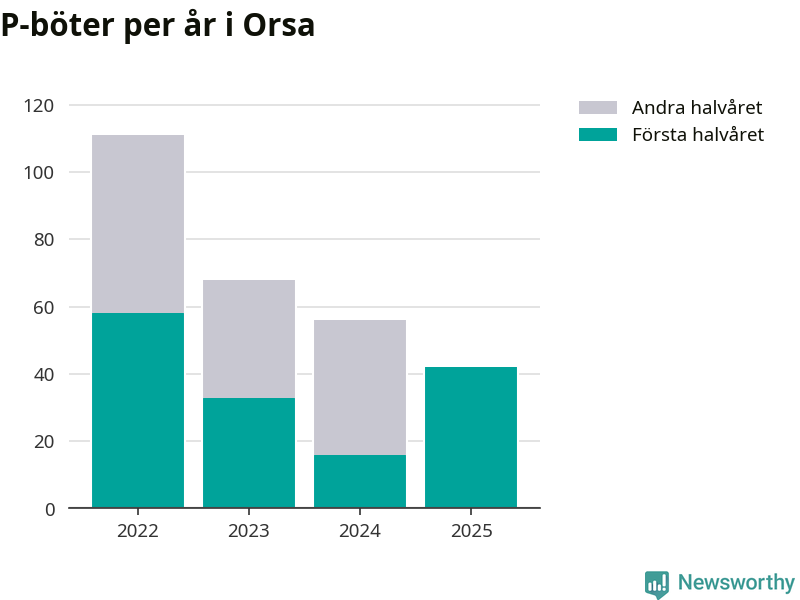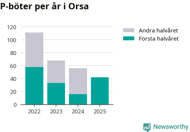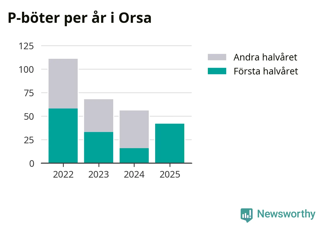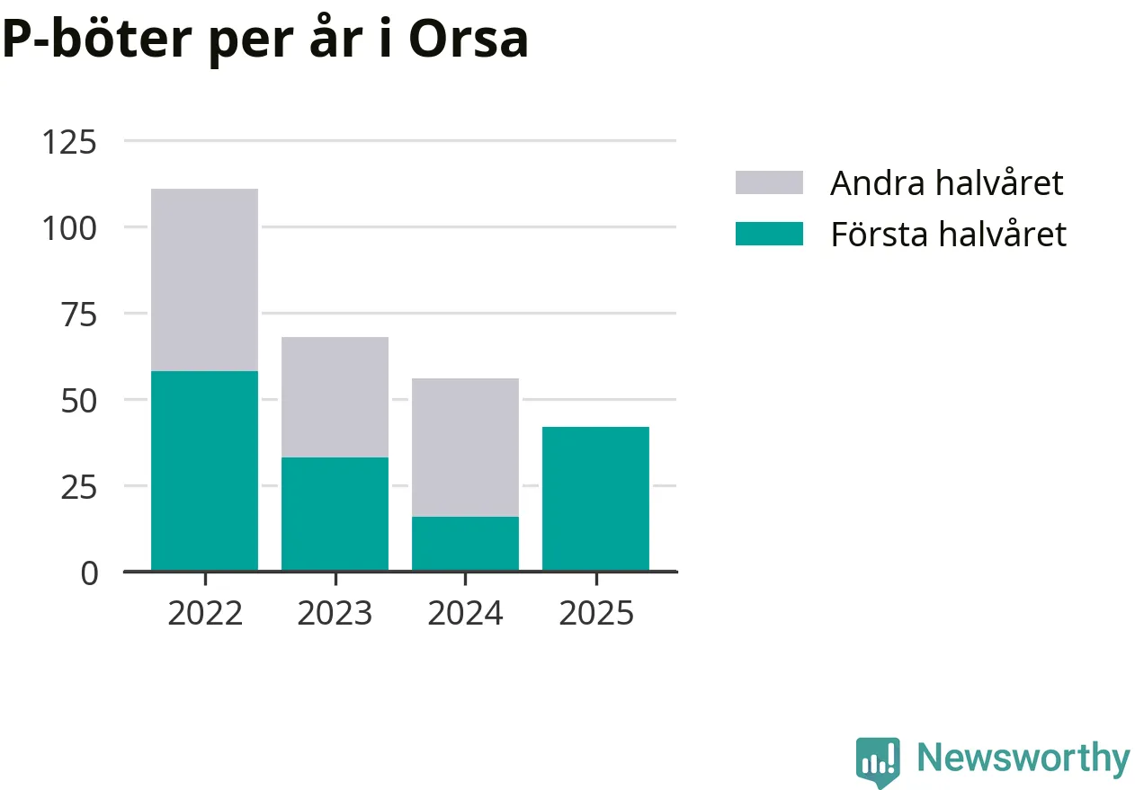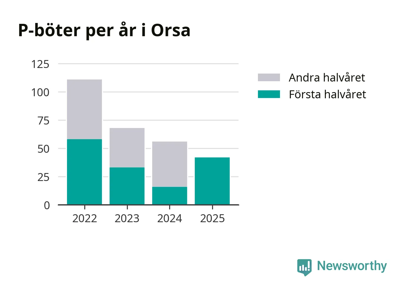 Under första halvåret 2025 har 42 parkeringsanmärkningar, med en total felparkeringsavgift på 18 000 kronor, delats ut på gatumark i Orsa kommun. Det är nästan tre gånger så många som under första halvåret 2024, då 16 böter utfärdades.