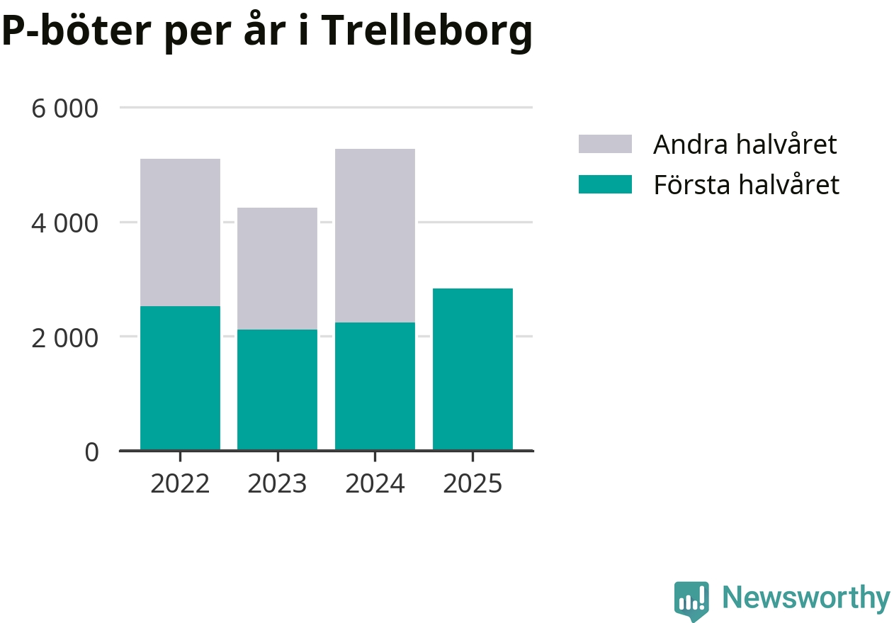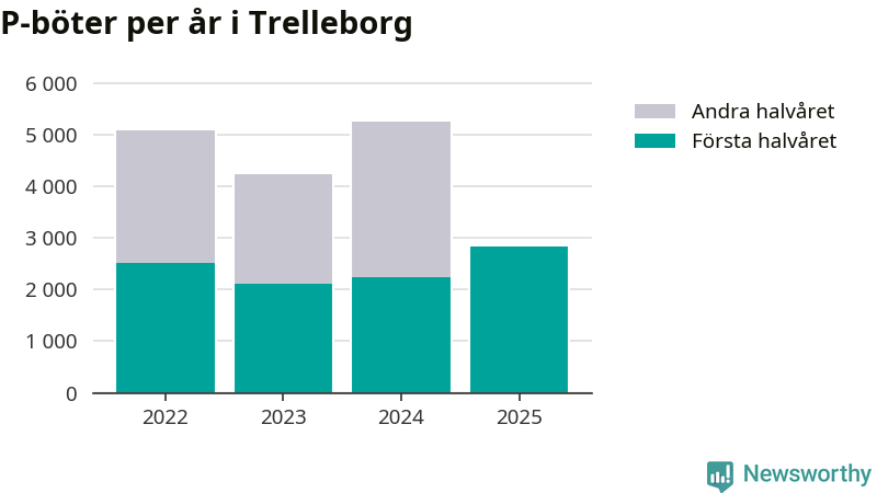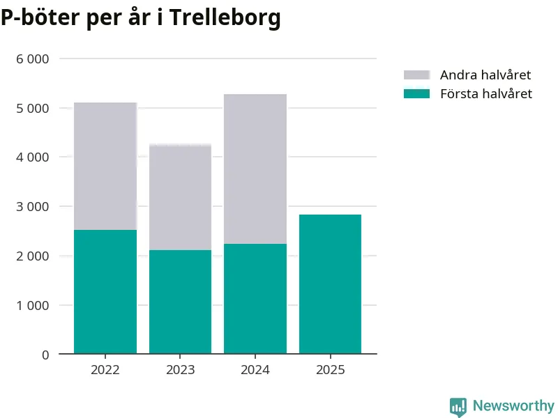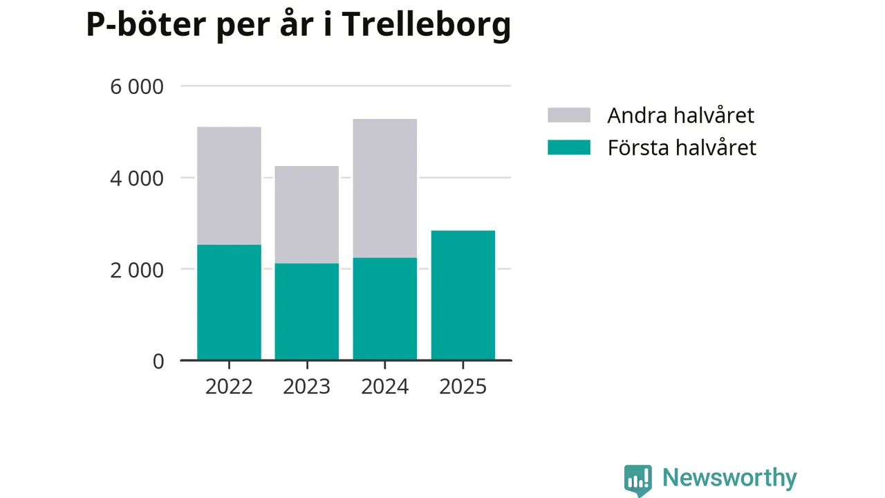 Under första halvåret 2025 har 2 837 parkeringsanmärkningar, med en total felparkeringsavgift på omkring 1,6 miljoner kronor, delats ut på gatumark i Trelleborgs kommun. Det är 594 fler än under första halvåret 2024.