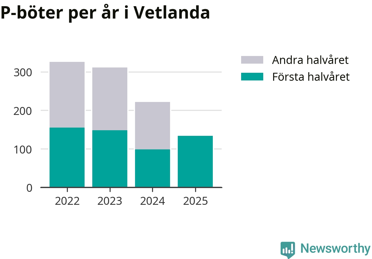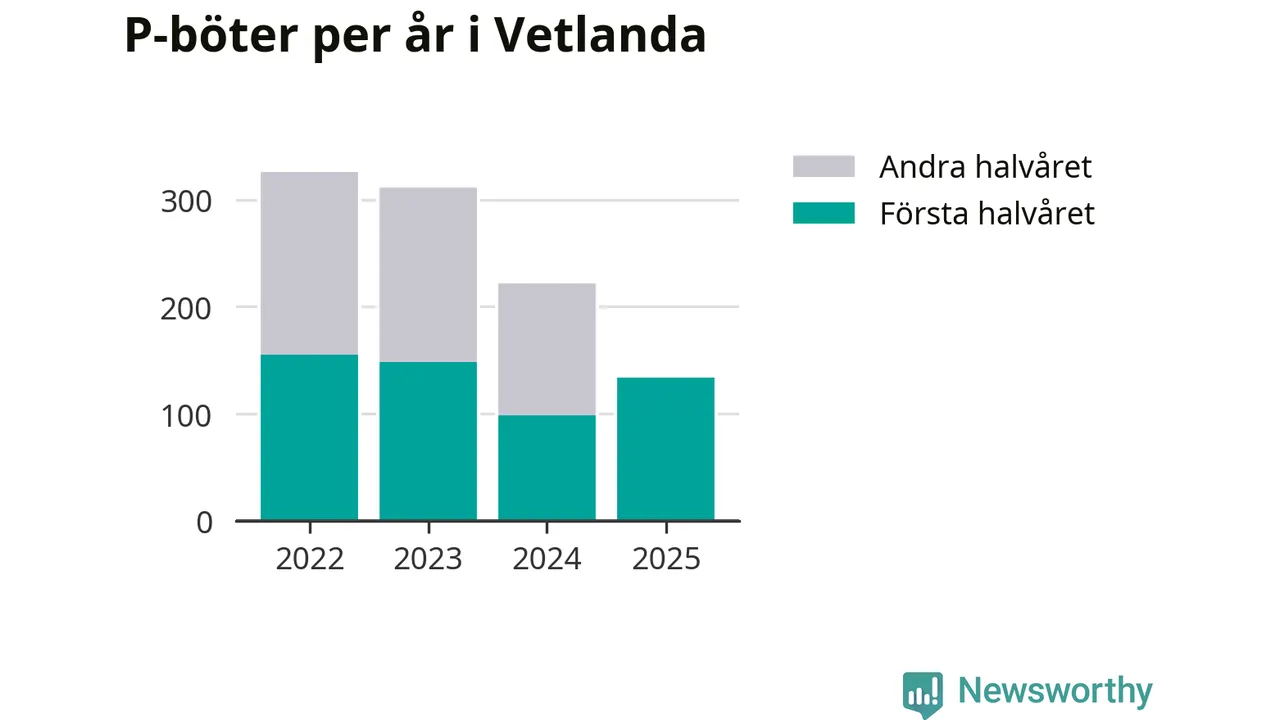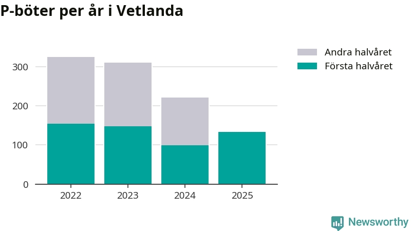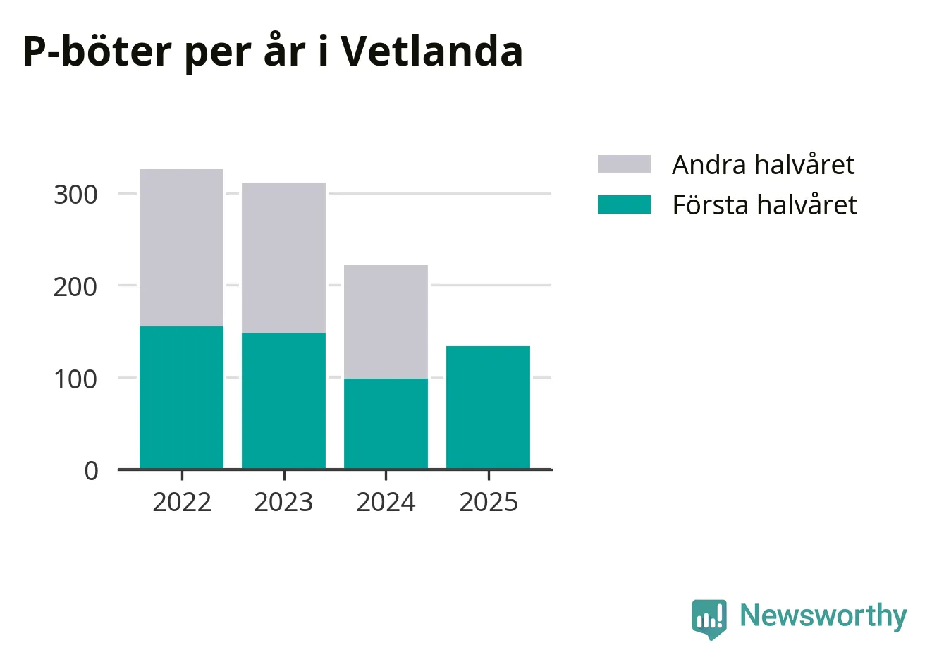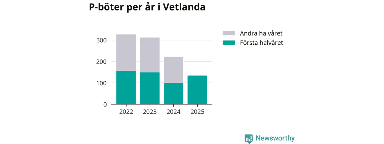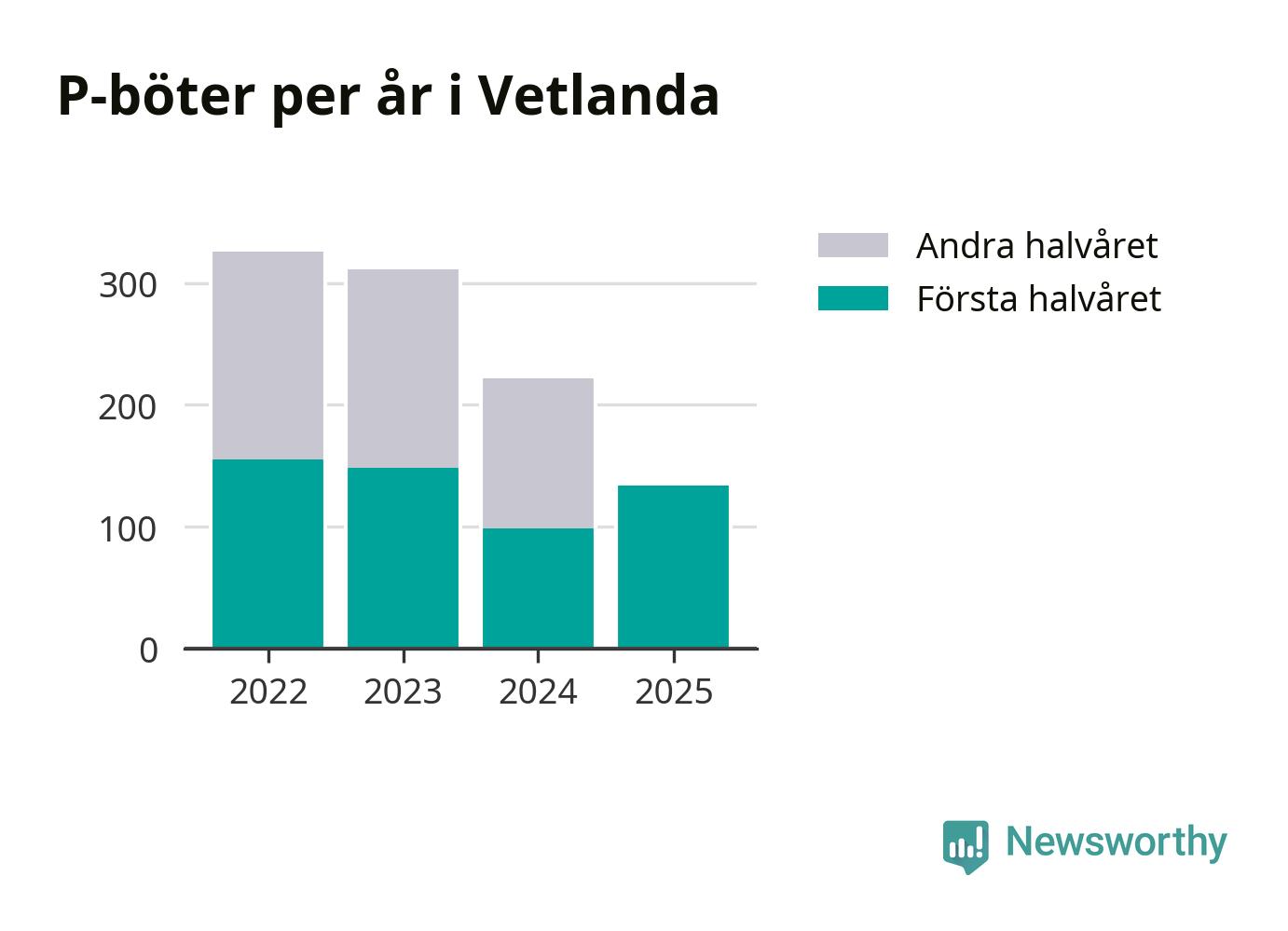 Under första halvåret 2025 har 134 parkeringsanmärkningar, med en total felparkeringsavgift på 58 100 kronor, delats ut på gatumark i Vetlanda kommun. Det är 35 fler än under första halvåret 2024.