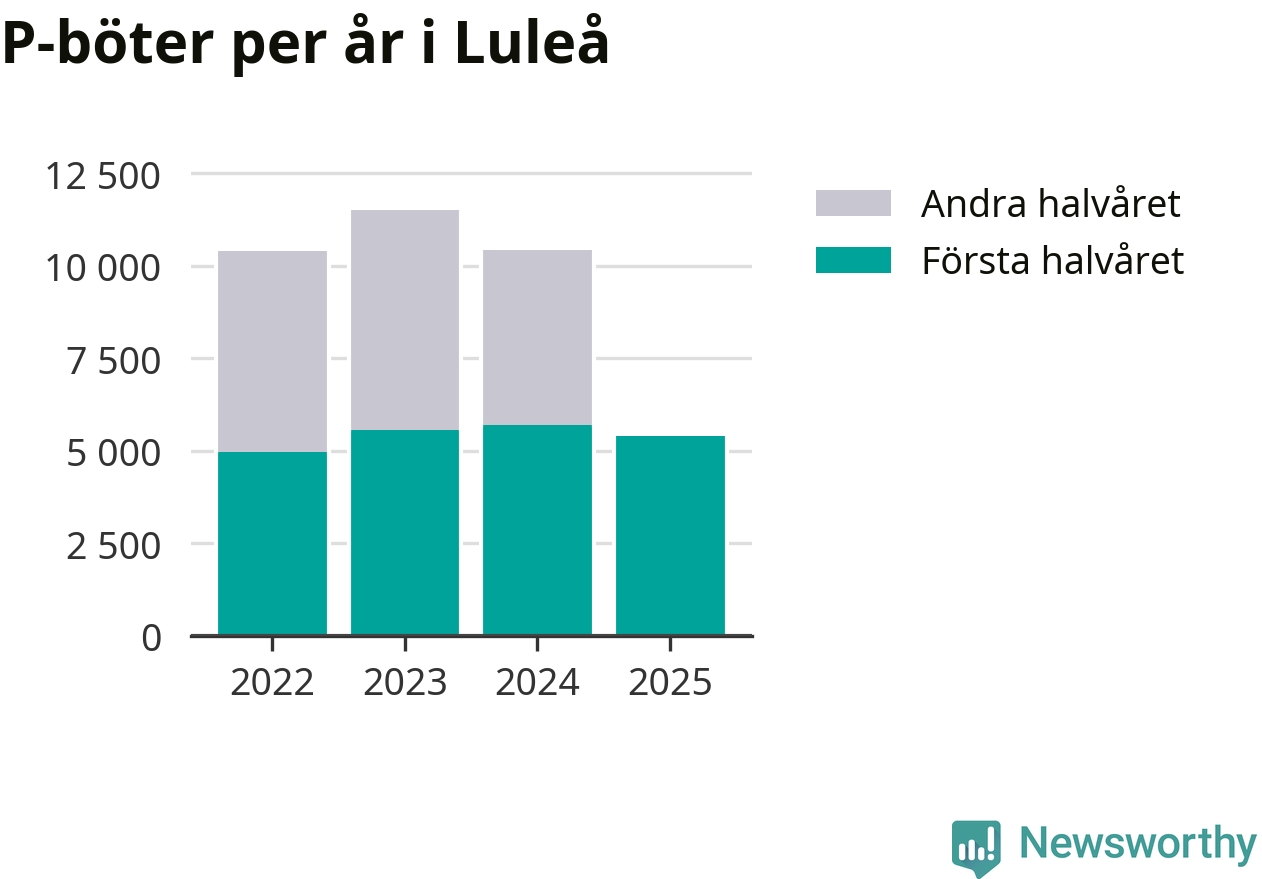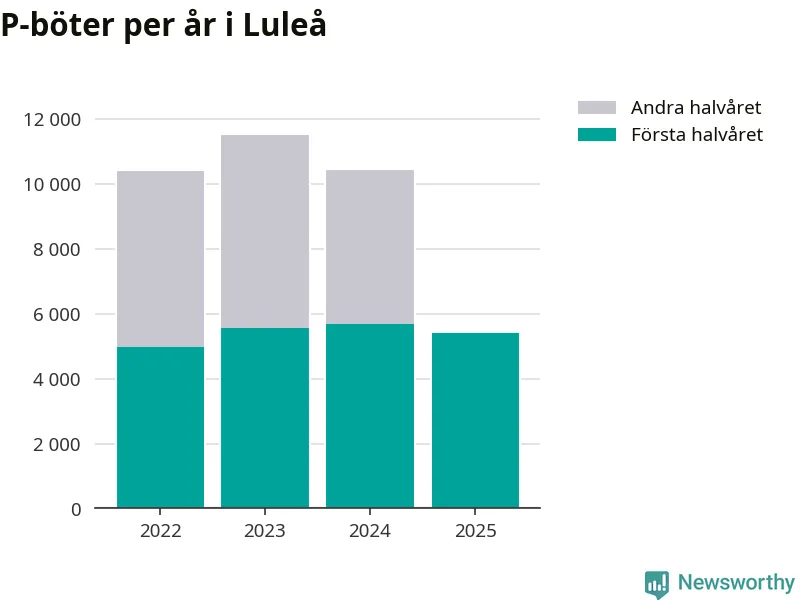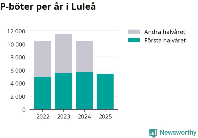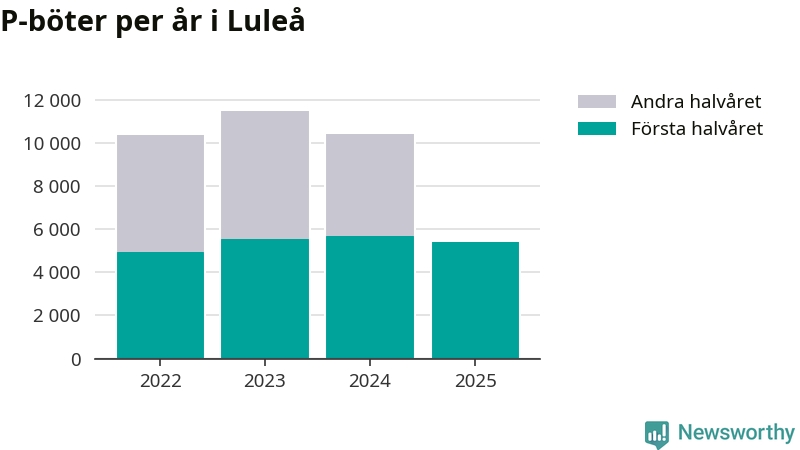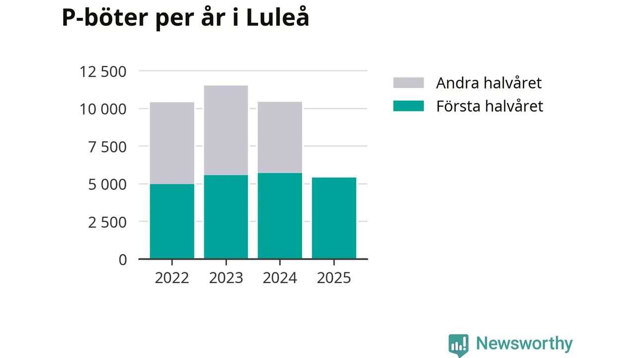 Under första halvåret 2025 har 5 412 parkeringsanmärkningar, med en total felparkeringsavgift på omkring tre miljoner kronor, delats ut på gatumark i Luleå kommun. Det är 279 färre än under första halvåret 2024.