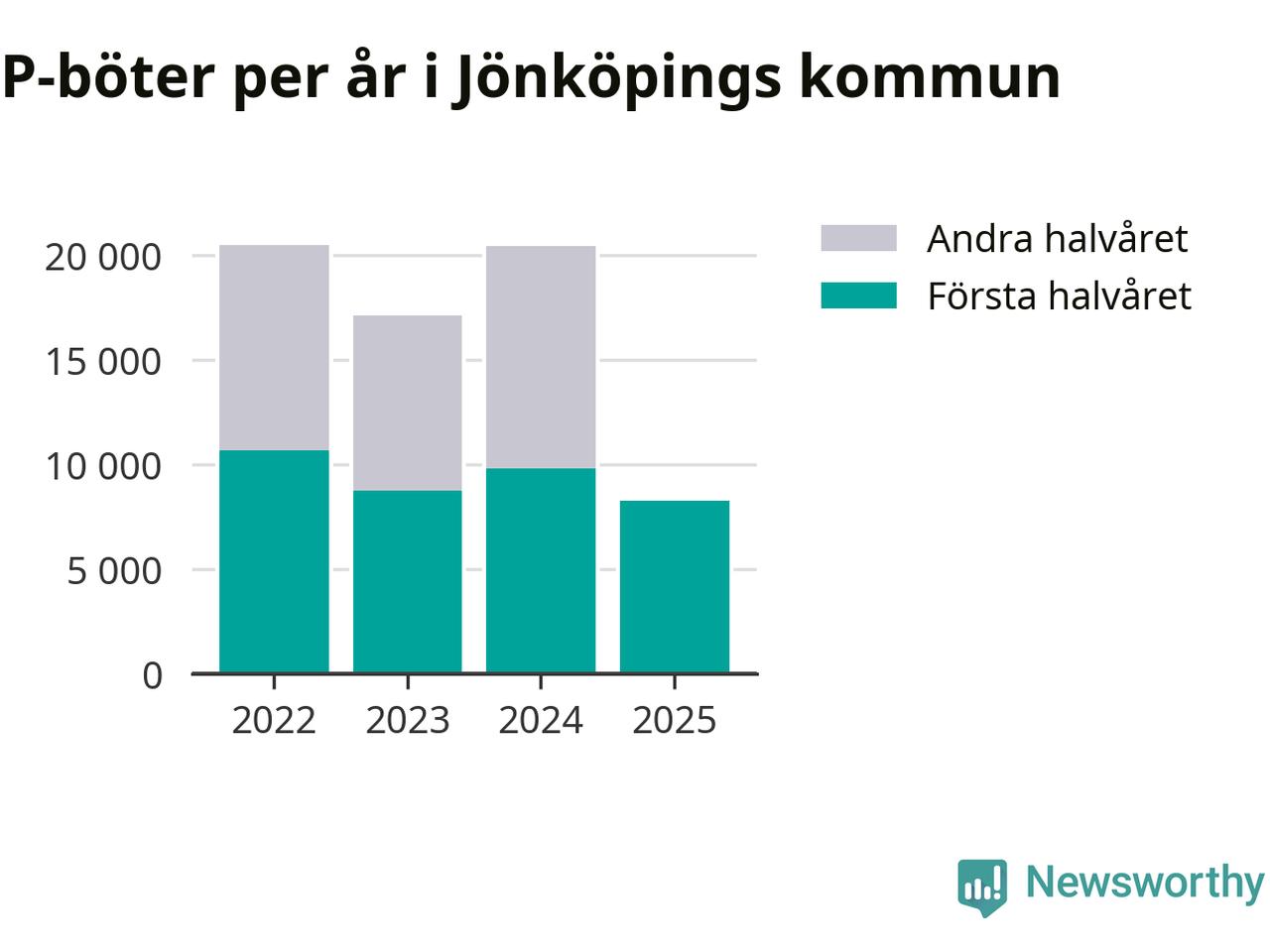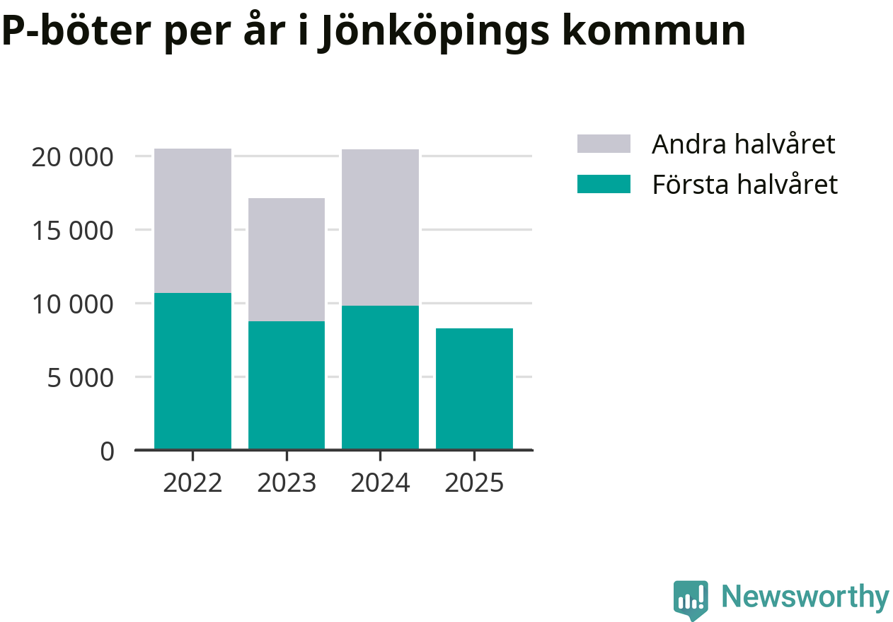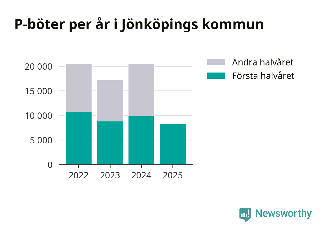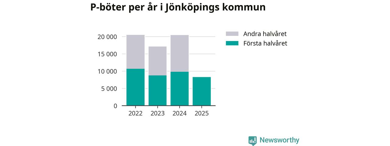 Under första halvåret 2025 har 8 240 parkeringsanmärkningar, med en total felparkeringsavgift på omkring sju miljoner kronor, delats ut på gatumark i Jönköpings kommun. Det är 1 559 färre än under första halvåret 2024.