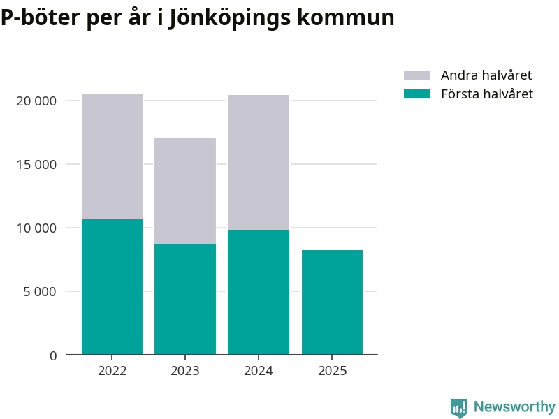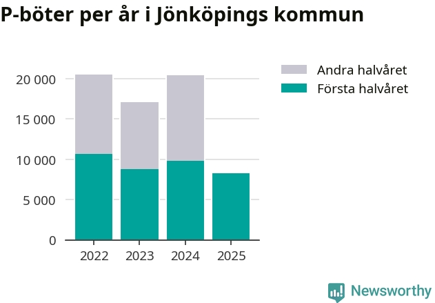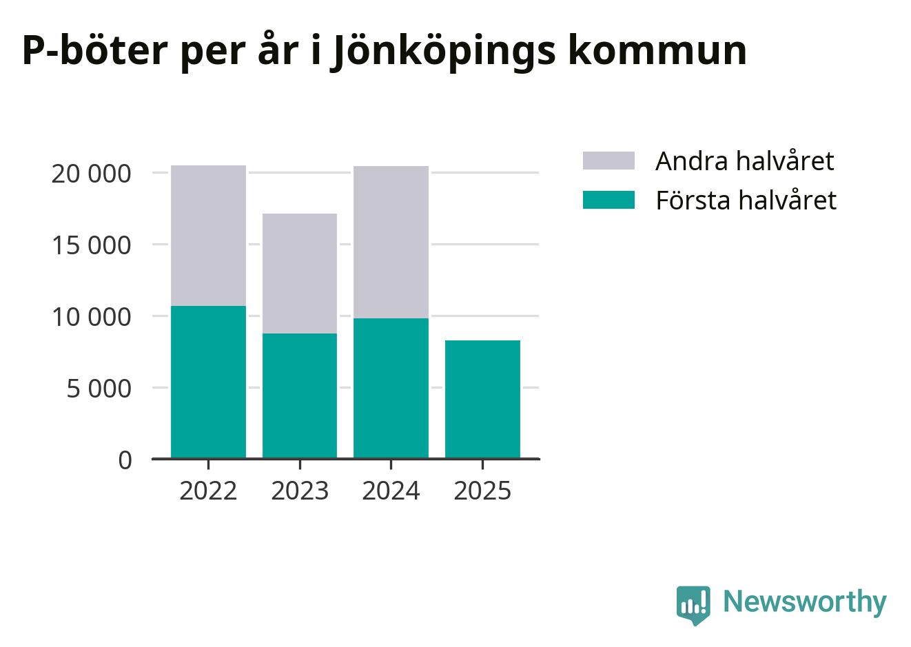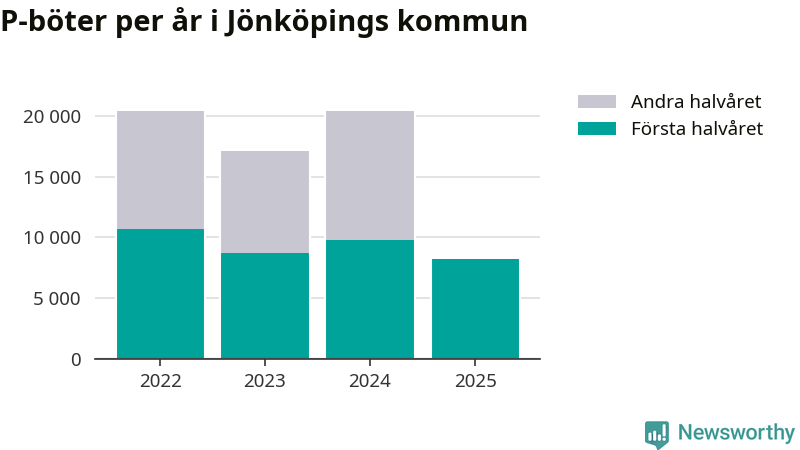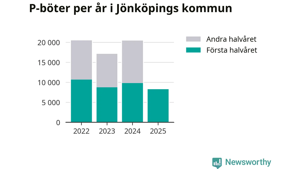 Under första halvåret 2025 har 8 240 parkeringsanmärkningar, med en total felparkeringsavgift på omkring sju miljoner kronor, delats ut på gatumark i Jönköpings kommun. Det är 1 559 färre än under första halvåret 2024.