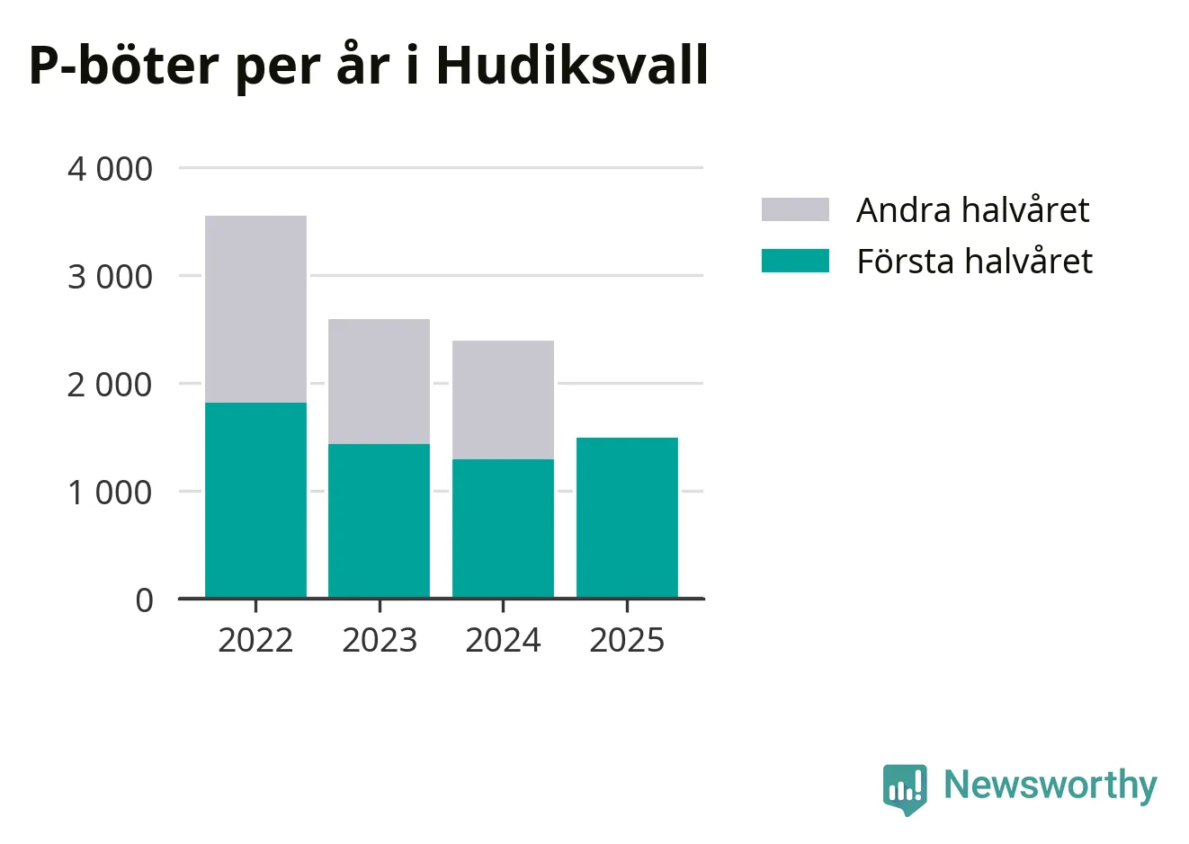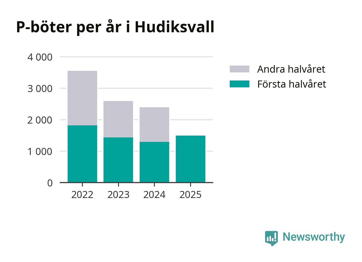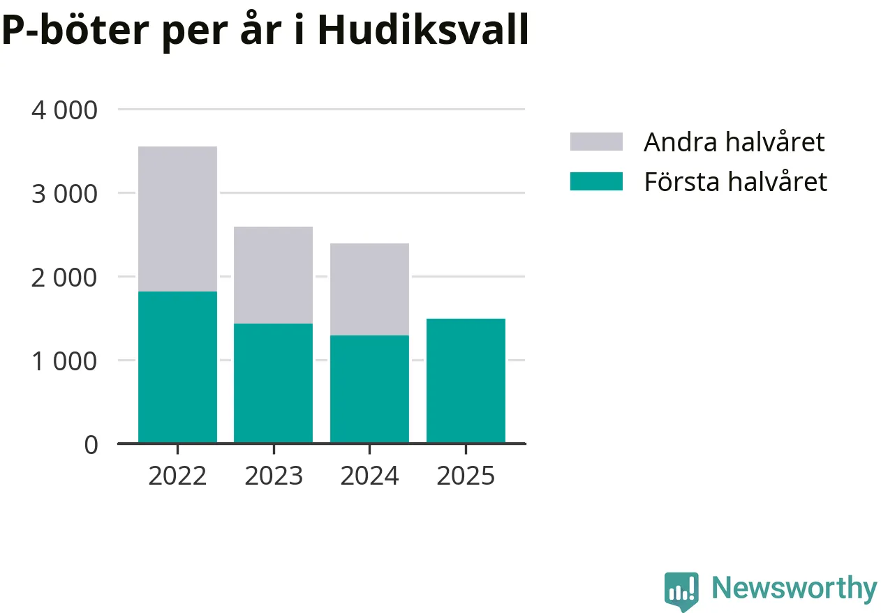 Under första halvåret 2025 har 1 488 parkeringsanmärkningar, med en total felparkeringsavgift på omkring 1,3 miljoner kronor, delats ut på gatumark i Hudiksvalls kommun. Det är 193 fler än under första halvåret 2024.